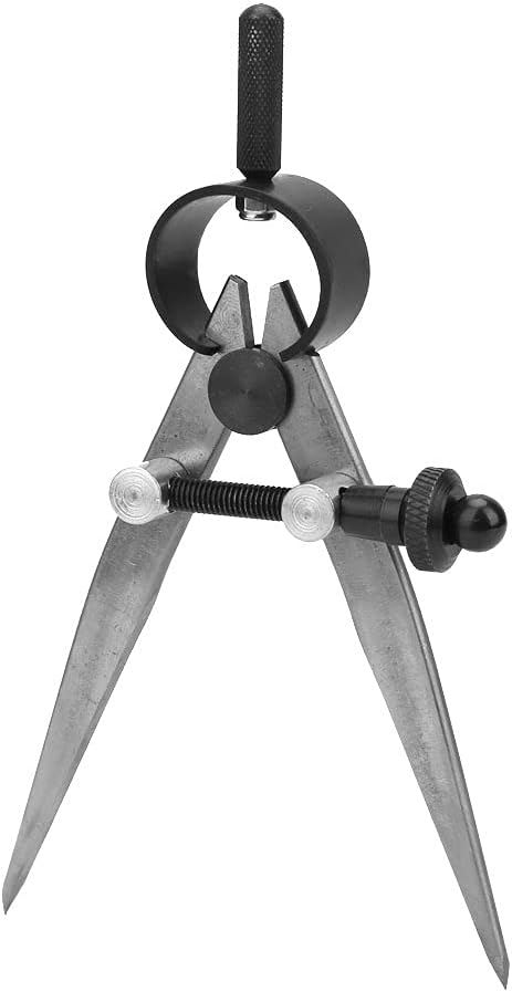 Compasso a regolazione rapida con meccanismo a pulsante e perno di azionamento centrale Gambo in piombo e pattino dell'ago pieghevoli Inserto in piombo intercambiabile Attacco 4 mm Diametro massimo del cerchio 360 mm Custodia con coperchio incernierato