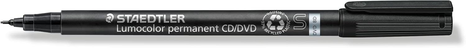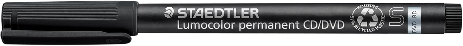 Pennarello indelebile nero a punta fine per cd/dvd Tratto delicato, larghezza s – superfine, circa 0,4 mm Inchiostro permanente che non danneggia i dischi, non penetrando nel supporto dati Si asciuga subito, ideale per utenti mancini; ottima resistenza allo strofinamento e alla luce La penna può rimanere per giorni senza cappuccio e non seccare (test iso 554)