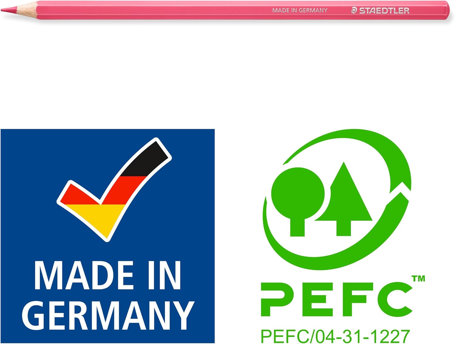 Matita colorata in classico formato esagonale Mina morbida, colori altamente pigmentati Alta qualità, made in Germany Legno proveniente da foreste sostenibili certificate PEFC Contenuto della confezione: astuccio in cartone con 12 colori pastello (bianco, giallo chiaro, pesca, salmone, rosa, carminio chiaro, viola pastello, blu pastello, turchese chiaro, verde pallido, goldocker, grigio freddo)