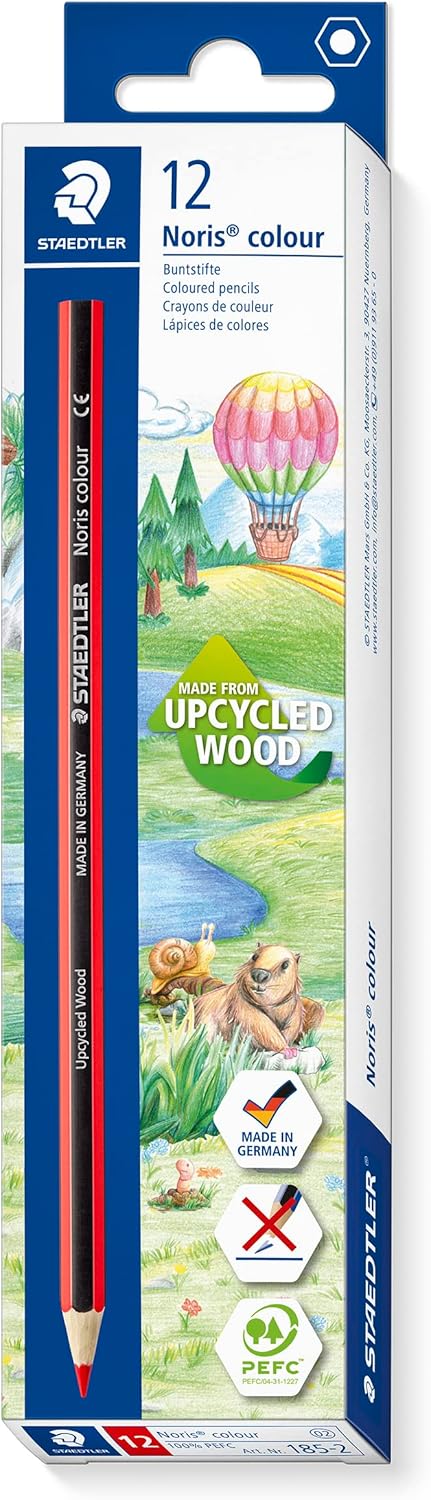 SET DI MATITE COLORATE: Il Set di matite Staedtler 185-2 include 12 matite di colore rosso, perfette per il disegno e i libri da colorare, offrendo una soluzione vibrante e versatile per artisti di tutte le età ALTA RESISTENZA ALLA ROTTURA: Grazie all'incollaggio speciale della mina, queste matite offrono una resistenza eccezionale alla rottura, garantendo un uso duraturo e affidabile anche nelle mani più energiche DESIGN CLASSICO ED ERGONOMICO: Le matite presentano una forma esagonale perfetta e un attraente design a righe nere, che si abbina al colore della mina. La superficie liscia e antiscivolo offre una presa comoda e sicura durante l'uso prolungato INNOVATIVO MATERIALE WOPEX: Queste matite sono realizzate con l'innovativo materiale WOPEX e legno riciclato proveniente da foreste gestite in modo sostenibile, certificate PEFC, garantendo una scelta ecologica SICUREZZA PER I BAMBINI: Conforme alla normativa europea EN 71 per la sicurezza dei giocattoli, queste matite sono adatte anche per i bambini, offrendo un'esperienza di colorazione sicura e divertente