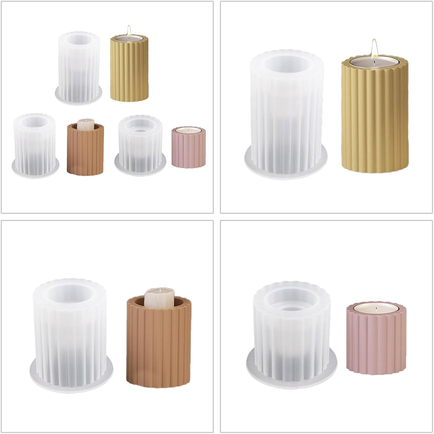 Stampi in resina per portacandele Stampo in silicone per candeliere cilindrico a strisce Stampo per fusione epossidica unico per candeliere