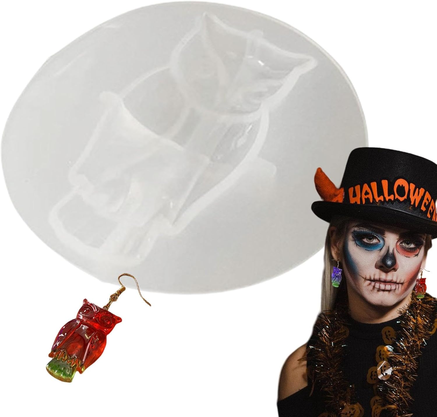 Delizia artigianale: puoi aggiungere vernici in resina, polveri miste, glitter, paillettes o qualsiasi cosa ti piaccia sotto forma di piercing in resina di Halloween per realizzare i tuoi lavori manuali e goderti il divertimento dell'artigianato. Materiale in silicone: lo stampo per piercing in resina di Halloween è realizzato in materiale siliconico, che può essere utilizzato più e più volte, non facile da deformare, resistente allo strappo e può essere utilizzato a lungo. Design di Halloween: realizza i tuoi orecchini con elementi classici come zucche, pipistrelli, fantasmi o gufi dalla nostra collezione di forme di orecchini di Halloween. Crea un look elegante e inquietante che farà risaltare il tuo outfit tra la massa. PULIZIA FACILE: elimina i problemi con il nostro stampo per orecchini in resina di Halloween, con un design antiaderente che fa risparmiare tempo e fatica. Nessuno sforzo richiesto, basta pulire con acqua e sapone. REGALO PERFETTO: lascia che la tua famiglia o i tuoi amici diventino creativi con questi stampi per orecchini in resina per Halloween: un regalo perfetto che lascia correre la tua immaginazione. Un regalo perfetto per chi ama creare e sperimentare.