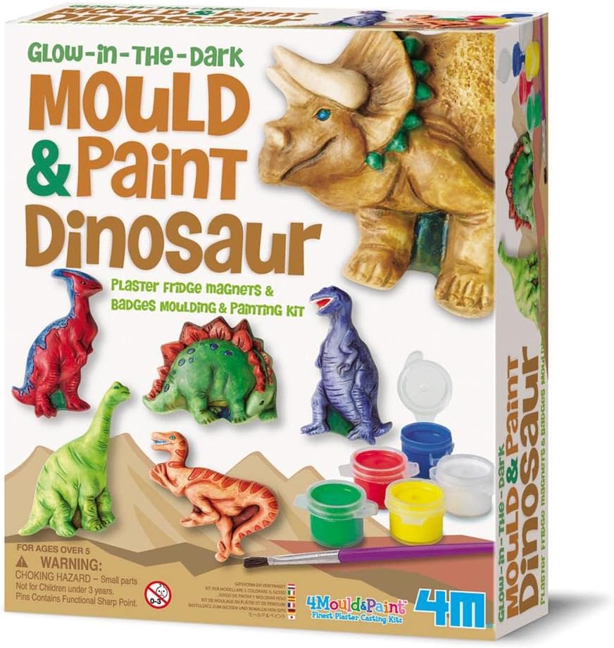 Crea i tuoi magneti o spille a forma di dinosauro utilizzando lo stampo Completa i magneti o le spille utilizzando il gesso, la vernice e il pennello inclusi nel kit Basta mescolare la polvere con acqua e versare nello stampo Il kit contiene tutto il necessario: stampo, polvere di gesso, magneti, spille, vernice, pennello e istruzioni Lo stampo e la vernice forniscono un'introduzione all'elaborazione logica di progetti in più fasi