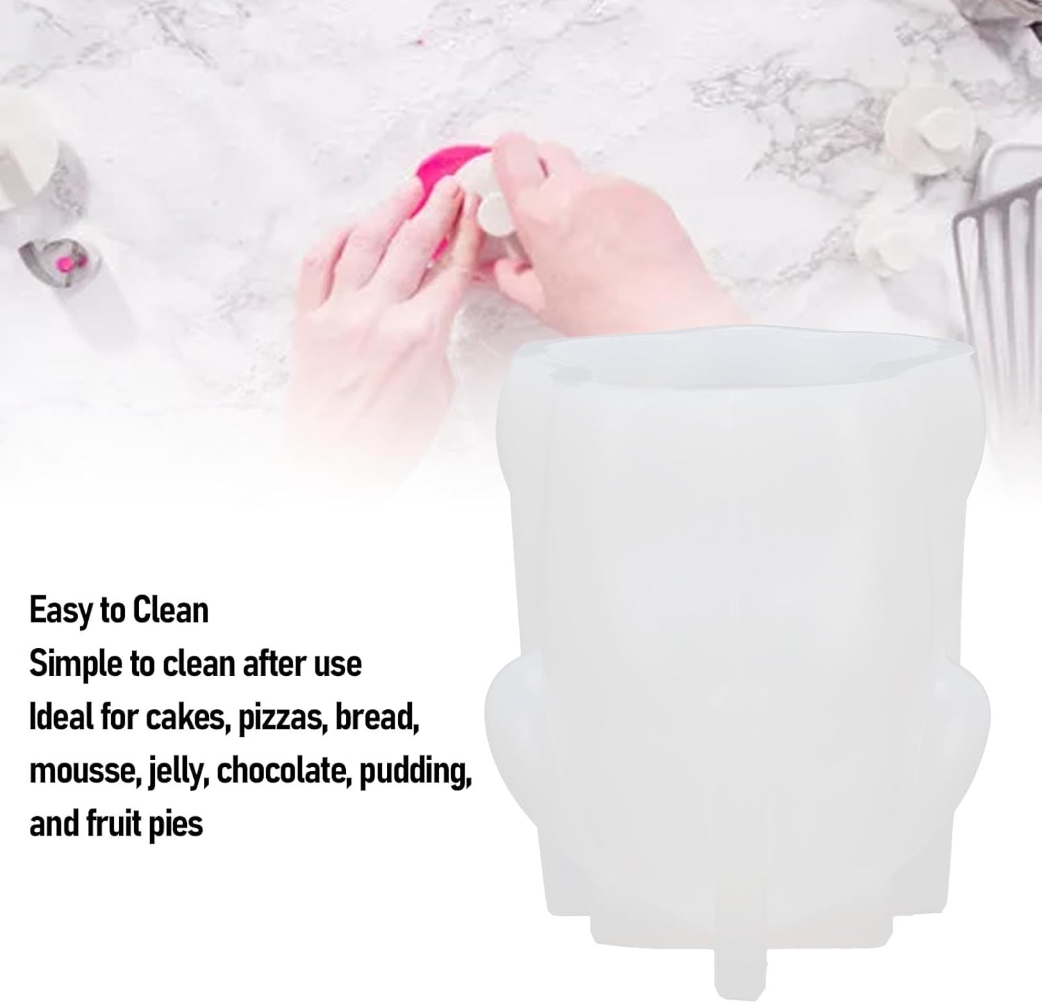 Scopri la versatilità del nostro stampo in silicone a forma di cane che può resistere a temperature da -40°C a +230°C. Che tu stia cuocendo in forno o raffreddando in frigorifero, questo stampo si adatta facilmente, rendendolo un compagno affidabile per tutte le tue avventure culinarie. ️ Aggiungi un tocco di fantasia alla tua cucina con questa forma di cartone animato elegante e carina. Perfetto per preparare deliziosi snack e dessert, si adatta ai gusti unici di tutte le età e trasforma dolcezze ordinarie in creazioni straordinarie. Goditi la preparazione del cibo senza problemi con il nostro stampo facile da usare. Basta ruotare per liberare le tue creazioni, riducendo al minimo il disordine e massimizzando il divertimento. Questo design semplice ti consente di dedicare meno tempo alla pulizia e più tempo a goderti i tuoi deliziosi capolavori. La pulizia è un gioco da ragazzi con il nostro stampo in silicone antiaderente. La funzione di rilascio facile fa sì che i tuoi dolcetti fuoriescano senza sforzo e un rapido risciacquo è tutto ciò che serve per mantenerli incontaminati. Trascorri meno tempo a strofinare e più tempo a dedicarti alle tue creazioni culinarie. Scatena la tua creatività con questo versatile stampo fai-da-te, perfetto per torte, pizza, pane, mousse, gelatina, cioccolato, budino e torte alla frutta. La sua ampia applicazione lo rende ideale per ogni occasione, dalle riunioni di famiglia informali alle celebrazioni festive.