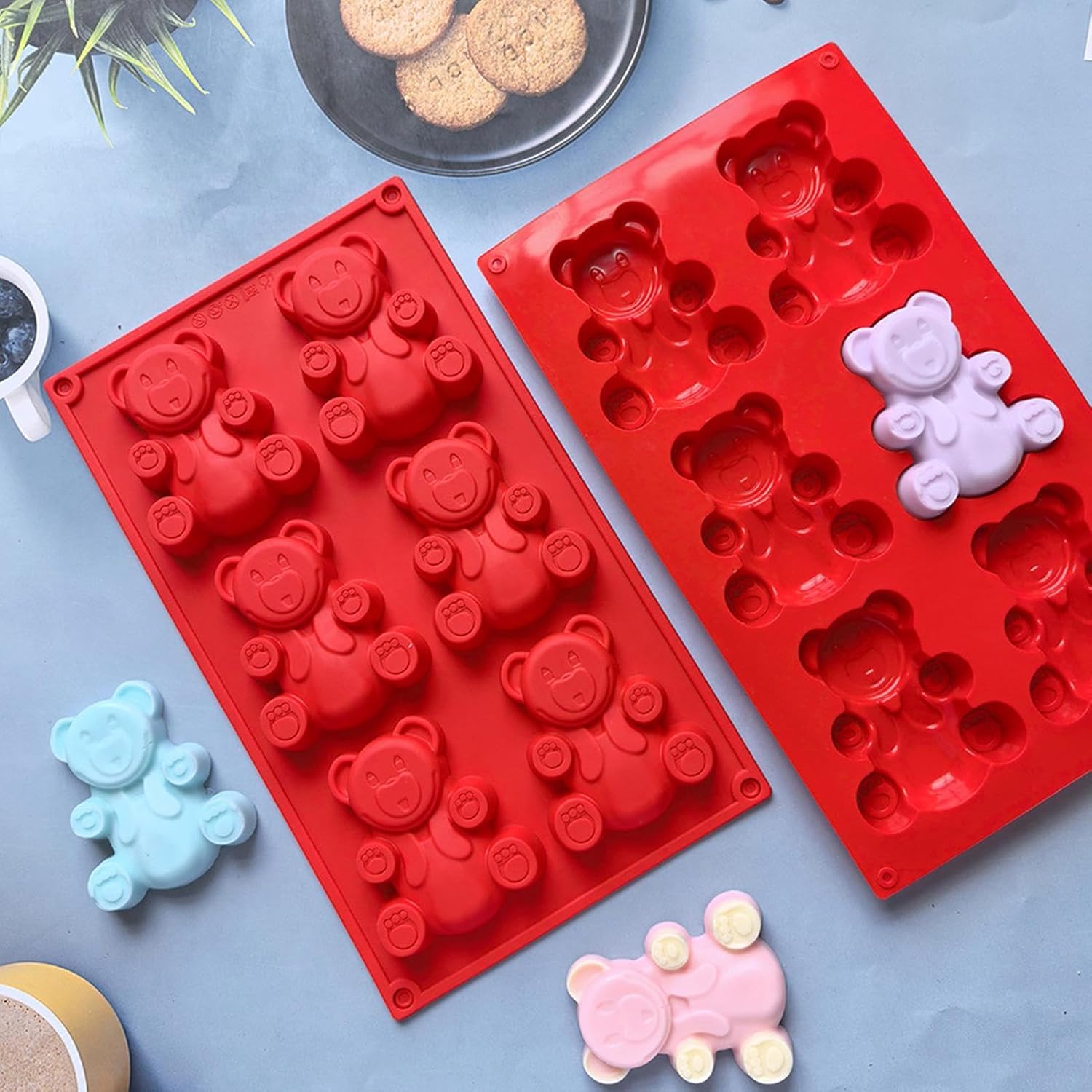 Materiale di alta qualità: Realizzato in silicone eccellente, il nostro stampo per orsetti gommosi è morbido ma robusto, quindi non si rompe facilmente e può resistere a tempi di cottura più lunghi. Sformatura fluida: sperimenta una sformatura facile e fluida dei tuoi orsetti gommosi con il nostro stampo. Premi leggermente sul fondo e la tua torta o il tuo cioccolato cadranno senza problemi. Facile manutenzione: questo stampo in silicone per caramelle e cioccolato presenta un design che rende il lavaggio un gioco da ragazzi. Basta sciacquare con acqua pulita e asciugare oppure lavare a mano o in lavastoviglie. Garantisce facilmente prestazioni pratiche e igieniche: migliora il tuo gioco di pasticceria con il nostro bellissimo stampo per orsetti gommosi. È realizzato in silicone alimentare e presenta una texture chiara e dettagliata con simpatici disegni di orsetti che ti consentono di preparare torte delicate senza sforzo. Compatibilità versatile: trasforma la tua cucina in una fabbrica di caramelle con il nostro stampo per orsetti gommosi. Perfetto per preparare deliziose gelatine, budini e cubetti di ghiaccio, ma perfetto anche per preparare torte, cioccolatini e altro ancora