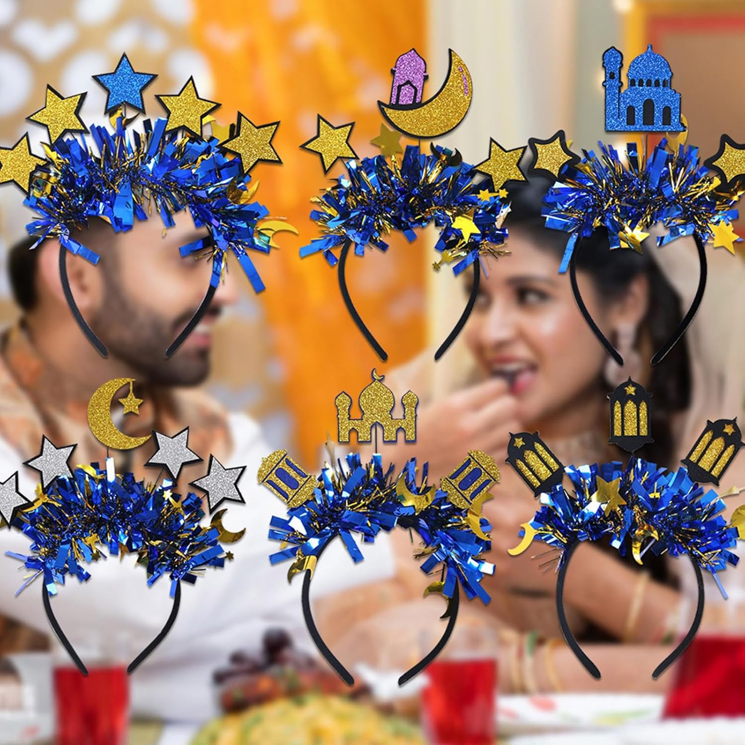 Celebra Eid con i nostri progetti appositamente progetti presenta disegni a stella e che benedizioni per migliorare le atmosfere del festival Rendi tua memoria celebrazione EID con questo accessorio per fascia per chiunque cerchi abbracciare festival Per le riunioni Eid, le riunioni famiglia e le cerimonie religiose, questa fascia eleva tuo look generale con i suoi design unici Craft dal PVC, questa fascia testa offre vestibilità comoda senza pizzicare, garantendo durata elegante attraverso l'artigianato Per le donne qualsiasi età, in particolare quelle che partecipano alla celebrazione Eid, aggiungendo fascino elegante ai loro abiti