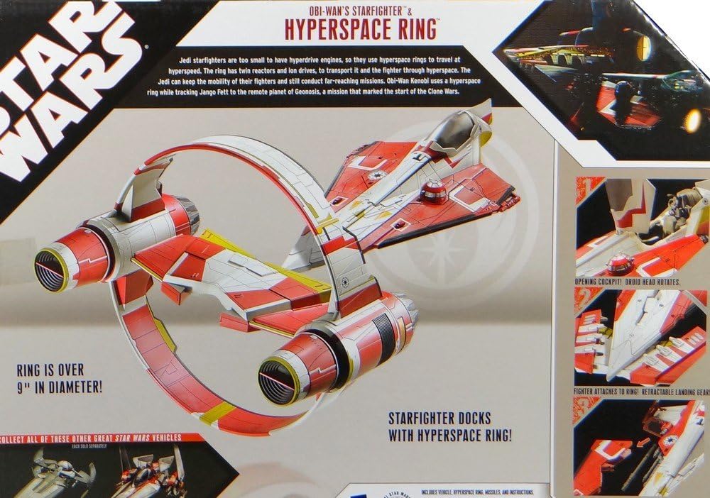 Il veicolo di Obi-Wan visto nel film di Star Wars Episodio II: Attack of the Clones, si attacca al Il veicolo viene fornito con anello iperspaziale non assemblato, missili, etichette, espositore e istruzioni. È necessario un montaggio Apertura Cockpit Testa droide Astromech rotante