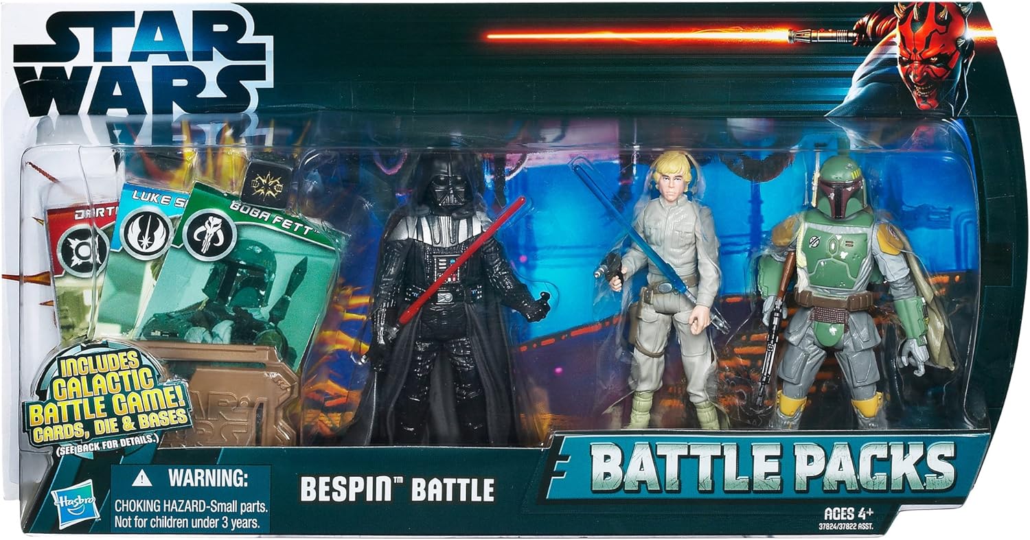 Questa confezione da 3 figure Star Wars intense include figure LUKE SKYWALKER, BOBA FETT e DARTH VADER e dolci accessori da battaglia! Il pacchetto battaglia REBEL HEROES ha tutto il necessario per avere tutti i tipi di avventura "interplanetaria"! Ottieni tutte le figure e gli accessori di cui hai bisogno per rivivere fantastiche avventure Star Wars con questo fantastico pacchetto di 3 figure e accessori! Metti le figure sulle loro basi nella tua collezione. La confezione include 3 figure, 3 basi di battaglia, 3 carte Galactic Battle Game, die e accessori.