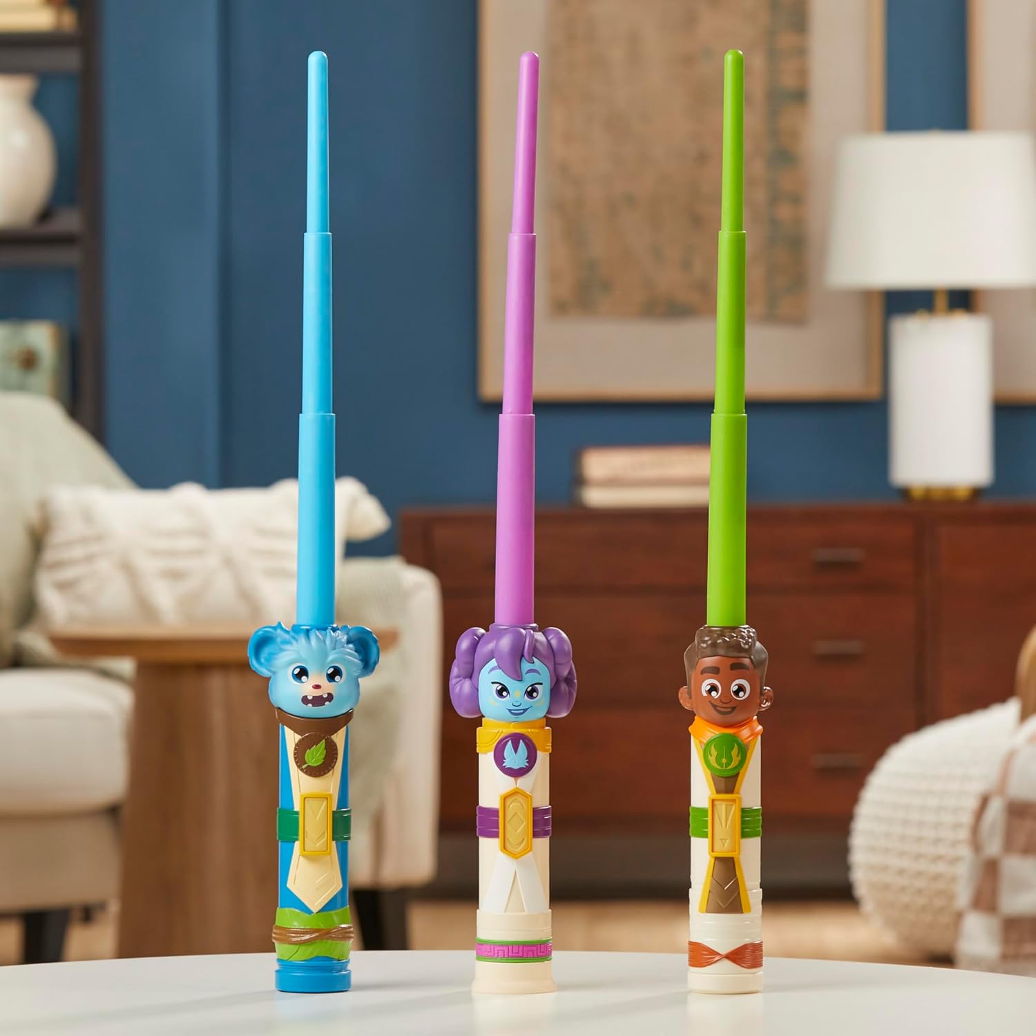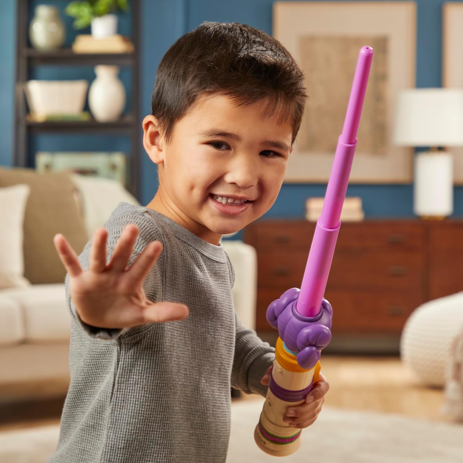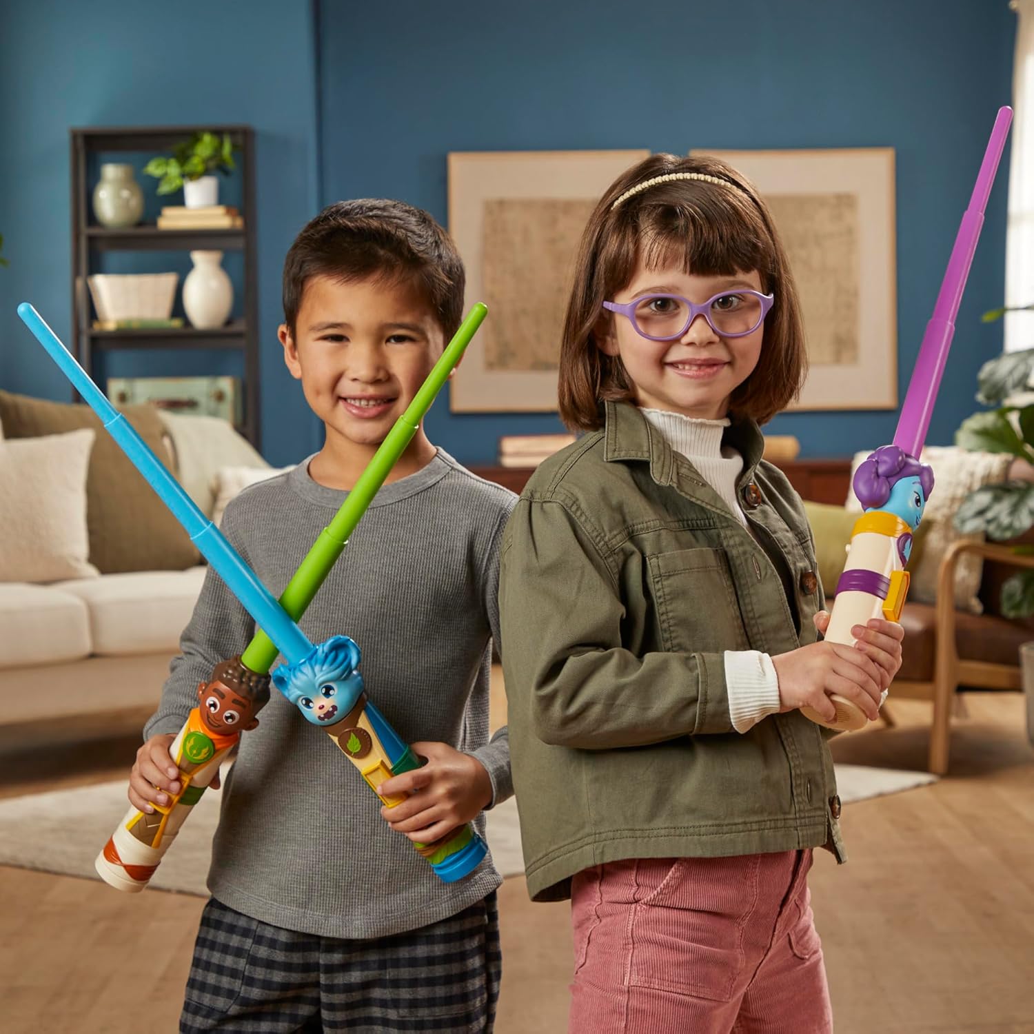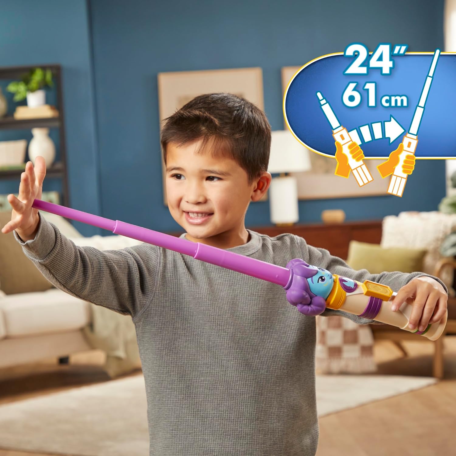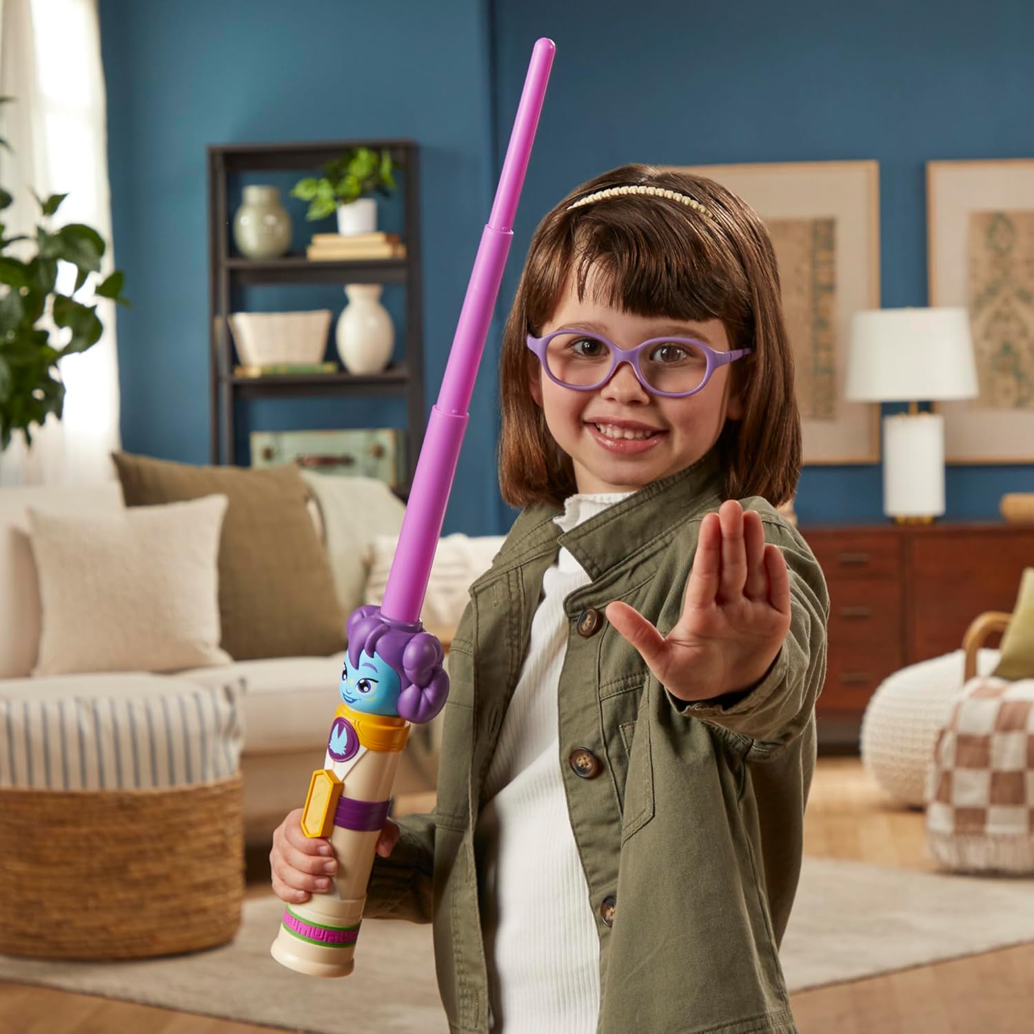 COLLINA ISPIRATA AL PERSONAGGIO: i bambini dai 3 anni in su possono giocare duelli immaginari con questo giocattolo Star Wars con una presa divertente ispirato al personaggio di Lys Solay di Disney+, serie animata Young Jedi Adventures DIVERTENTI EFFETTI SUONI Premere il pulsante sul manico di questa spada laser elettronica per attivare vari effetti sonori della serie Estensibile e portatile: questa spada laser estensibile per bambini presenta una lama viola a 3 segmenti che si apre con un movimento del polso e si piega per un gioco facile e portatile Giocattolo leggero in età prescolare: questo giocattolo prescolare Star Wars per ragazzi e ragazze ha le dimensioni dei Jedi più giovani della galassia, 62 cm completamente esteso e 29 cm piegato Star Wars REGALI PER BAMBINI Cerca altri giocattoli Young Jedi Adventures, come Star Wars e Star Wars action figure, da raccogliere o regalare a ragazzi e ragazze dai 3 anni in su (ciascuno venduto separatamente. Soggetto a disponibilità