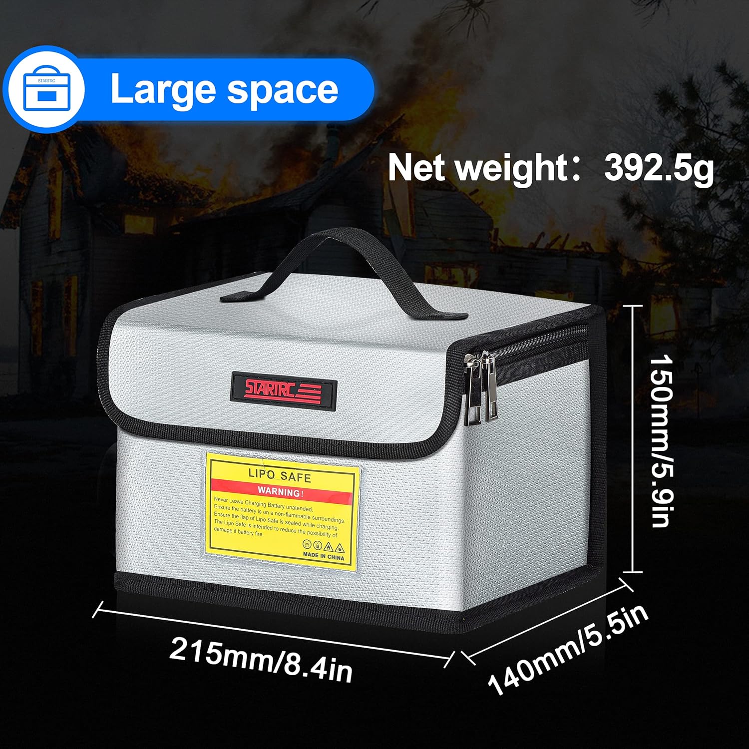 【Protezione LiPo】: la custodia per batterie LiPo ignifuga STARTRC è un modo conveniente per proteggere le batterie Lipo durante la ricarica, il trasporto e lo stoccaggio. Lascia andare i tuoi pensieri quando la lipo si sta caricando mentre devi andare via per un po' chiudendo la lipo nella chiusura sicura della borsa,Facile da trasportare: borsa ignifuga STARTRC per trasportare, conservare e caricare in sicurezza le batterie lipo. È possibile regolare liberamente la struttura dello spazio interno della borsa per batterie a prova di esplosione per evitare che le batterie si sfreghino l'una contro l'altra durante il trasporto e causino danni. Ampio spazio: la dimensione della borsa a prova di lipo antideflagrante STARTRC è 21,5*15*14 cm, che può contenere circa 25 pezzi 3 celle 2200mAh lipo 2 Neo/Avata 2/Mini 4K/Mini 4 Pro/Mini 3/Air 3/Mavic 3/Mavic air 2/Mavic Air 2S/FPV drone e così via. 【Ignifugo e resistente all'umidità】 - Panno ignifugo a doppio strato realizzato in silicone liquido al 100% e la superficie è rivestita con un foglio di alluminio. 【Cosa ottieni】 - 1x borsa sicura LiPo (21,5 * 15 * 14 cm)