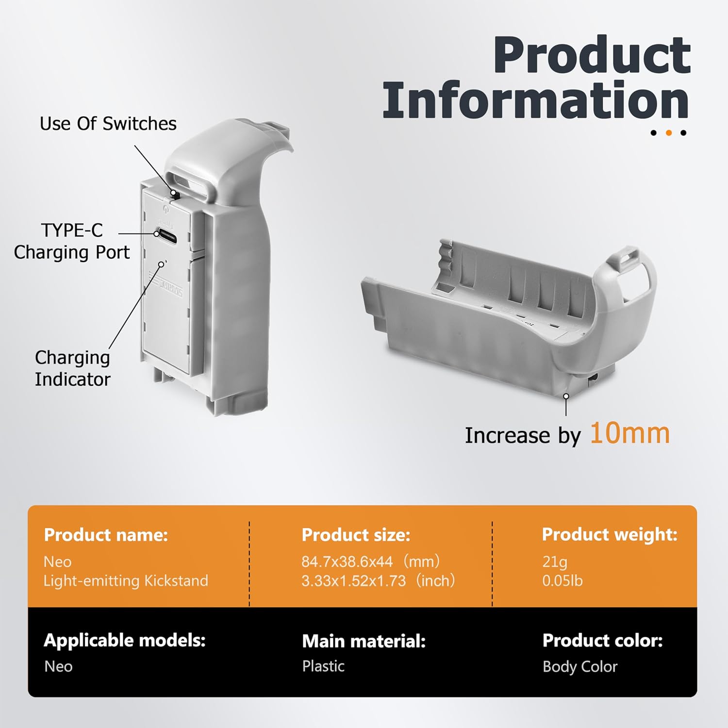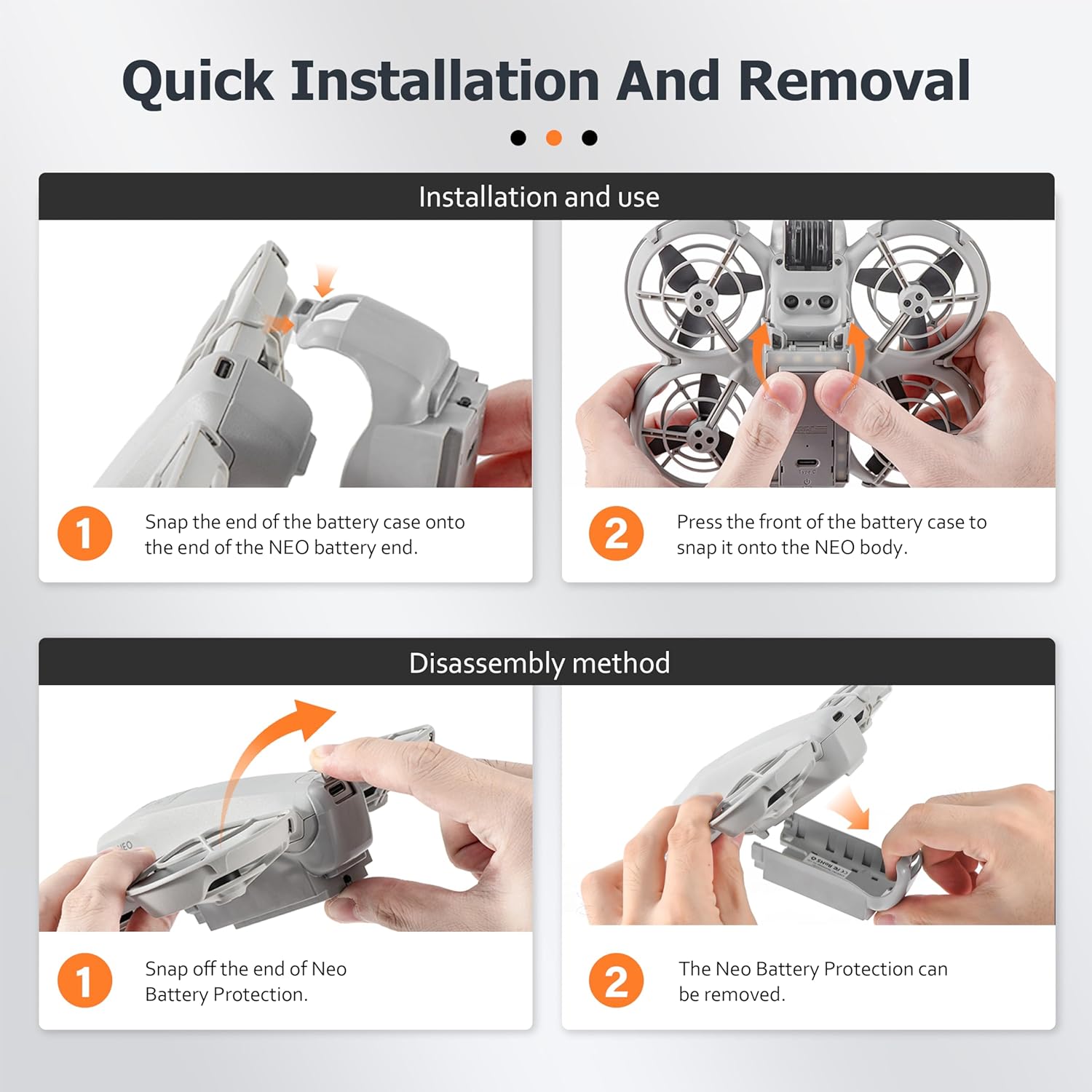 Compatibile: il telaio è stato sviluppato appositamente per DJI Neo, che è perfetto per l'uso. Mentre la batteria è protetta, può essere utilizzata anche come telaio, aumentando efficacemente l'altezza di 5 mm. Integrato e versatile, protezione perfetta Questo telaio per dji neo può aumentare efficacemente la distanza tra il drone e il suolo. Proteggi il tuo drone dai graffi della batteria durante l'atterraggio. Quando il Neo si solleva o atterra su terreni irregolari, può ridurre l'impatto, far atterrare il drone senza intoppi e proteggere il corpo dji Neo e la fotocamera cardanica per evitare danni. Facile installazione e smontaggio senza attrezzi di installazione. Facile da trasportare e comodo da usare. Aggiornamento alla funzione di protezione originale per supportare il volo notturno Fornire protezione della batteria durante il volo e aumentare il buffering durante l'atterraggio per evitare danni causati dall'atterraggio ad alta velocità Basta allineare con il fondo e la parte posteriore dell'aereo, premere la fibbia per completare il montaggio e premere delicatamente per completare lo smontaggio