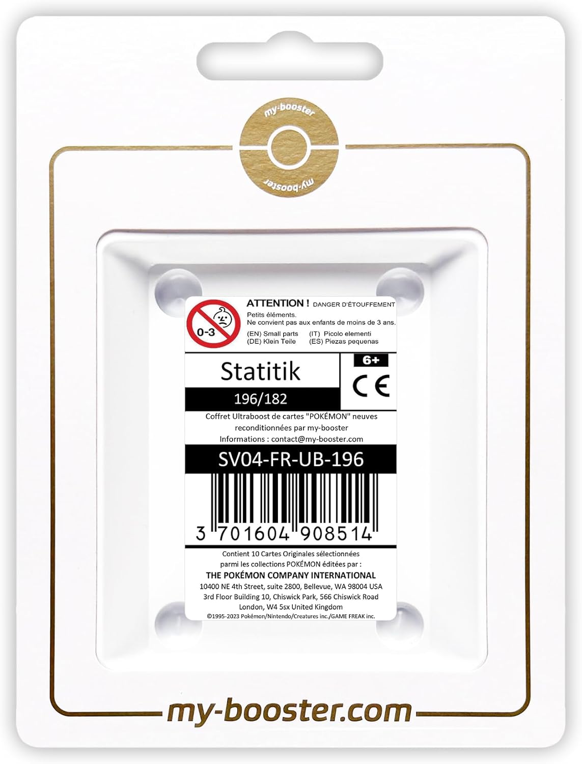 Le scatole Ultraboost e Myboost contengono 10 carte Pokémon nuove e originali Gli impegni my-booster: Nuove carte originali certificate "The Pokemon Company" Nessuna carta allenatore/energia - Nessuna carta duplicata