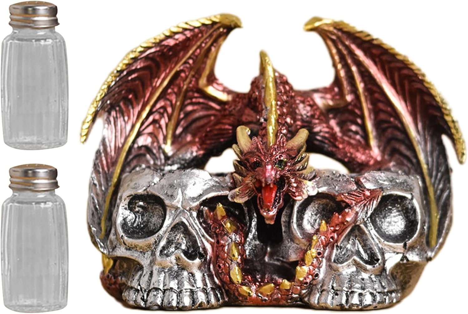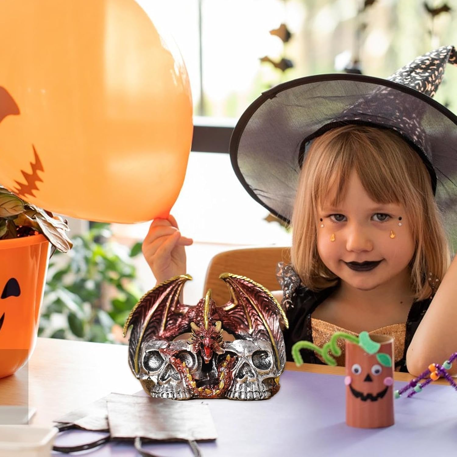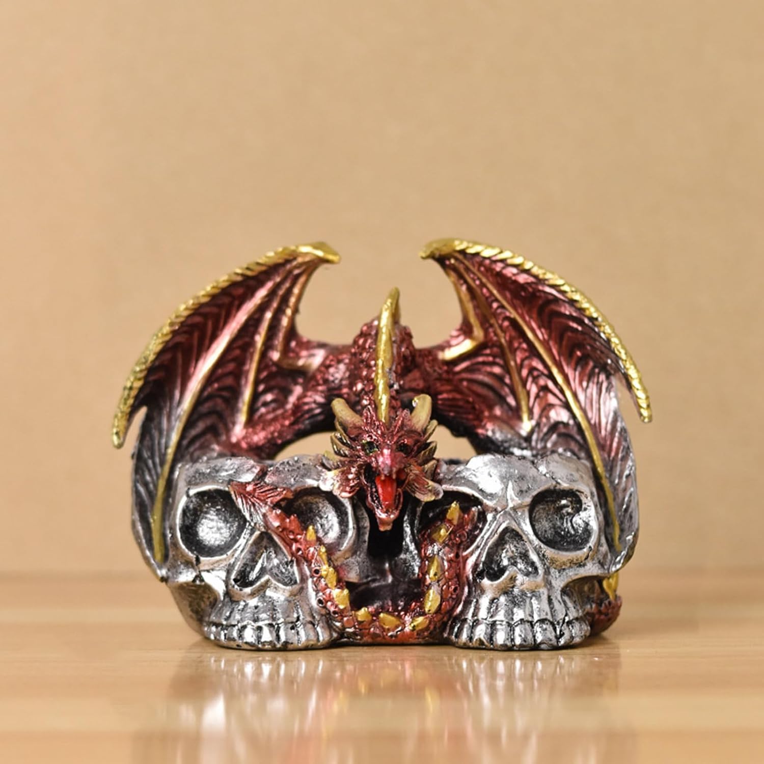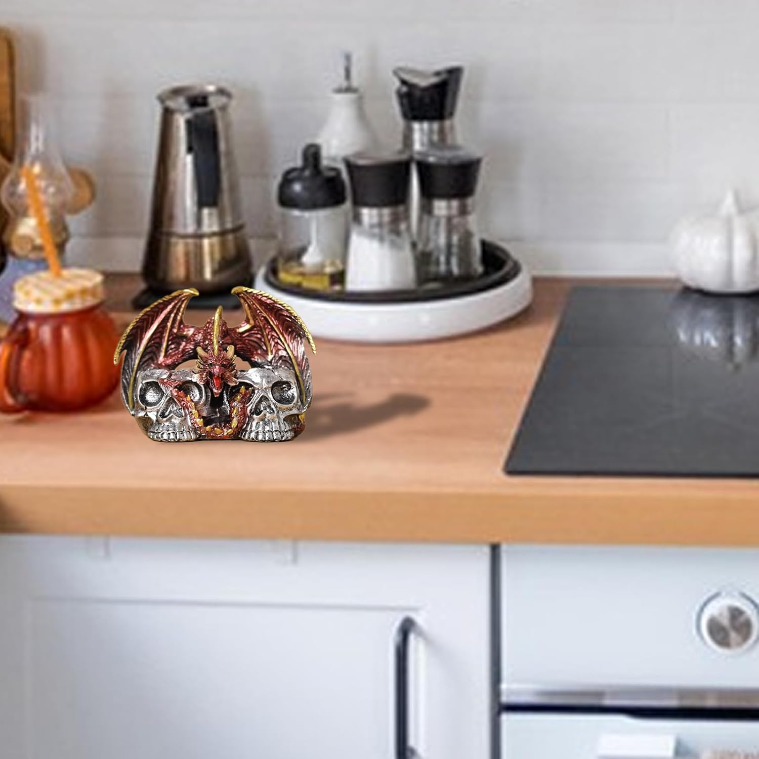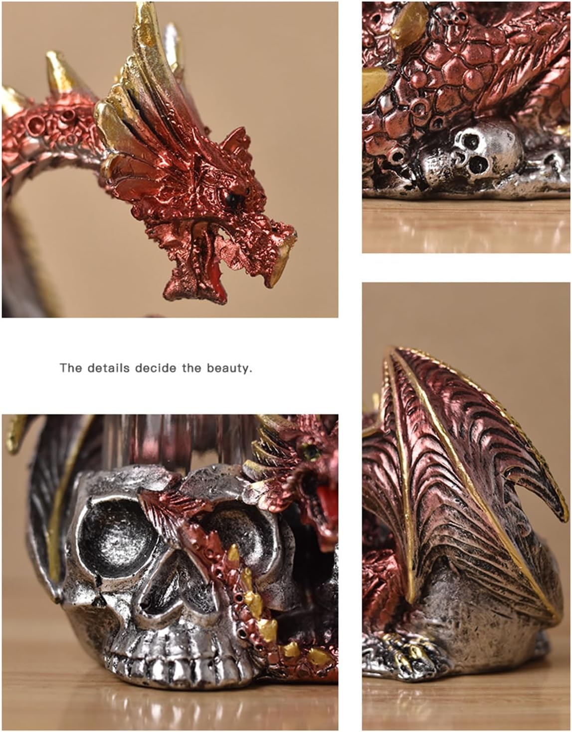 Regalo meraviglioso: sorprendi la tua famiglia e i tuoi amici con i nostri teschi di Halloween, adatti agli amici che amano le opere d'arte uniche. Aggiungi un tocco di moda alla decorazione della tua casa. MULTIUSO - Ideale per la decorazione stagionale e per tutto l'anno, il design versatile è perfetto per ogni stanza. Ideale per case e bar, nonché per le vacanze o l'uso quotidiano. Decorazione: l'artigianato del teschio di Halloween ha un design distintivo e creativo che combina elementi del teschio con la forma del drago per creare un'atmosfera irresistibile e seducente. Perfetto per accattivanti decorazioni a tema. Funzione di produzione: questo teschio di Halloween presenta disegni meravigliosamente complessi ottenuti attraverso una lavorazione precisa con dettagli attentamente progettati in ogni stanza, evidenziando il tuo arredamento. Ottimo materiale: scolpito con la resina più pregiata, questo teschio di Halloween è l'aggiunta ideale per aumentare la tua decorazione spettrale. È progettato per resistere allo sbiadimento, all'usura.