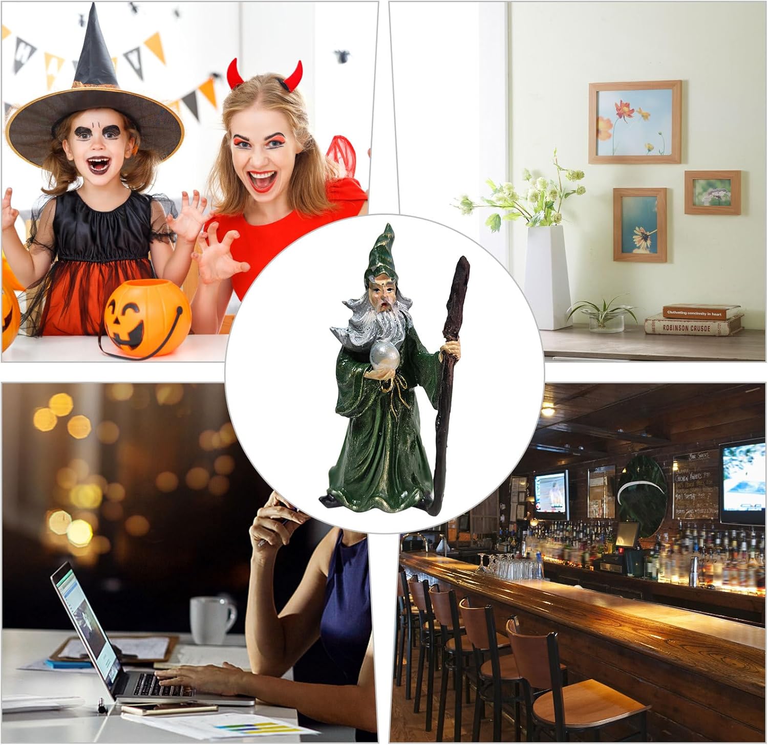 Sicuro e durevole: gli ornamenti del mago e della strega sono realizzati in resina di alta qualità, dipinti a mano, sicuri e durevoli e non sbiadiscono facilmente con un contorno liscio e chiaro. Decorazione per tavolo di sabbia: oltre alla decorazione di Halloween, queste figure di maghi e streghe possono essere utilizzate anche come decorazioni psicologiche per tavoli di sabbia. Occasioni adatte: i nostri oggetti di scena per i personaggi di Halloween sono un must per le vacanze di Halloween, adatti a temi horror, cosplay di Halloween, decorazioni per la casa, bar e altro ancora. Classic Witch &: Witch Statue Ornament è il regalo di Halloween perfetto per i tuoi amici, familiari e bambini. Rimarrai piacevolmente sorpreso nel ricevere un regalo. Decorazione spettrale: puoi utilizzare figure di maghi e streghe per aggiungere un tocco spettrale e magico alla tua camera da letto, cucina o altra stanza della tua casa.