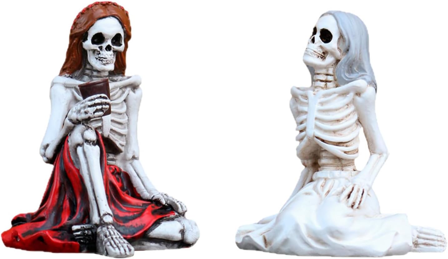 Perfetto per gli appassionati di horror e le celebrazioni di Halloween per famiglie, in particolare le famiglie con bambini o animali domestici che cercano un accento horror indistruttibile. Migliora le tue decorazioni di Halloween con questa figura di Skeleton Girl intricata e dettagliata. Presenta dettagli ossei realistici e tratti del viso dipinti a mano per un'autenticità agghiacciante. Questi versatili ornamenti di Halloween in resina fungono anche da oggetti da collezione, combinando il fascino spettrale con anni di potenziale espositivo per interni horror. Può essere utilizzato come inquietante centrotavola su console da ingresso, librerie o tavoli da festa per trasformare istantaneamente salotti, uffici o ambientazioni di Halloween all'aperto. Questa decorazione leggera ma robusta è realizzata in resina e presenta trame e disegni realistici, fornendo una manipolazione sicura come fragili ornamenti in ceramica.