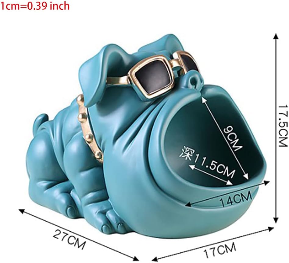 Questo prodotto può essere utilizzato solo per riporre chiavi, telefoni, penne, gioielli. È anche un fantastico ornamento interessante e innovativo per la pancia in casa. Adatto per Ricezione A casa culo come regalo quotidiano. Realizzata in resina ecologica, oggi una delle forme più apprezzate per l'artigianato. Forma semplice e unica, colori brillanti e vivaci, texture squisita, delicata arte artigianale. Bulldog koole con statua per occhiali, una bella figura, può morire su un tavolo o una mensola del camino.