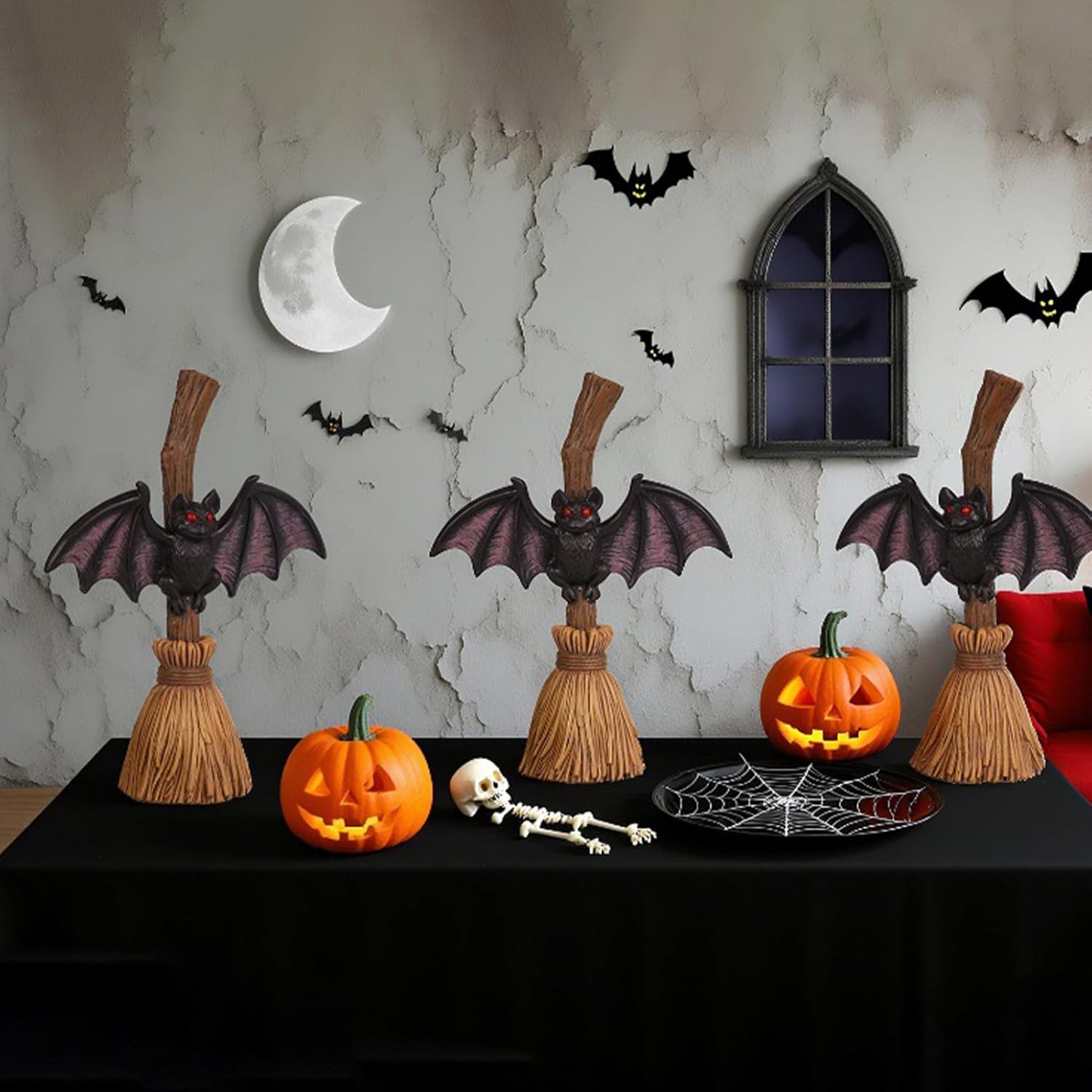 Simboli festivi: con un design di Halloween, mescola scope e motivi a pipistrello per creare un pezzo decorativo ideale che cattura lo spirito giocoso ma inquietante della stagione per le tue celebrazioni Struttura: questo Halloween contiene una costruzione di lunga durata e resiste all'usura e indossa il suo aspetto vivace e la sua forma per diverse celebrazioni senza compromettere i valori ambientali Ampia applicazione: porta fascino in ogni angolo, lavora magnificamente a casa o in giardino, progettato per creare una configurazione accattivante di Halloween per finestre, cappotti e scaffali Dettagli accattivanti di Halloween: i pipistrelli con ali pronte al volo e occhi vivaci e luminosi danno vita al movimento, mentre la scopa in stile retrò introduce le dimensioni e risaltano la tua tavola in ogni riunione di Halloween Porta un'atmosfera festosa: crea scene di vacanza indimenticabili migliorando l'atmosfera festiva ideale, un must per gli amanti di Halloween per aumentare istantaneamente l'atmosfera spaventosa con decorazioni da tavolo accuratamente progettate per le celebrazioni