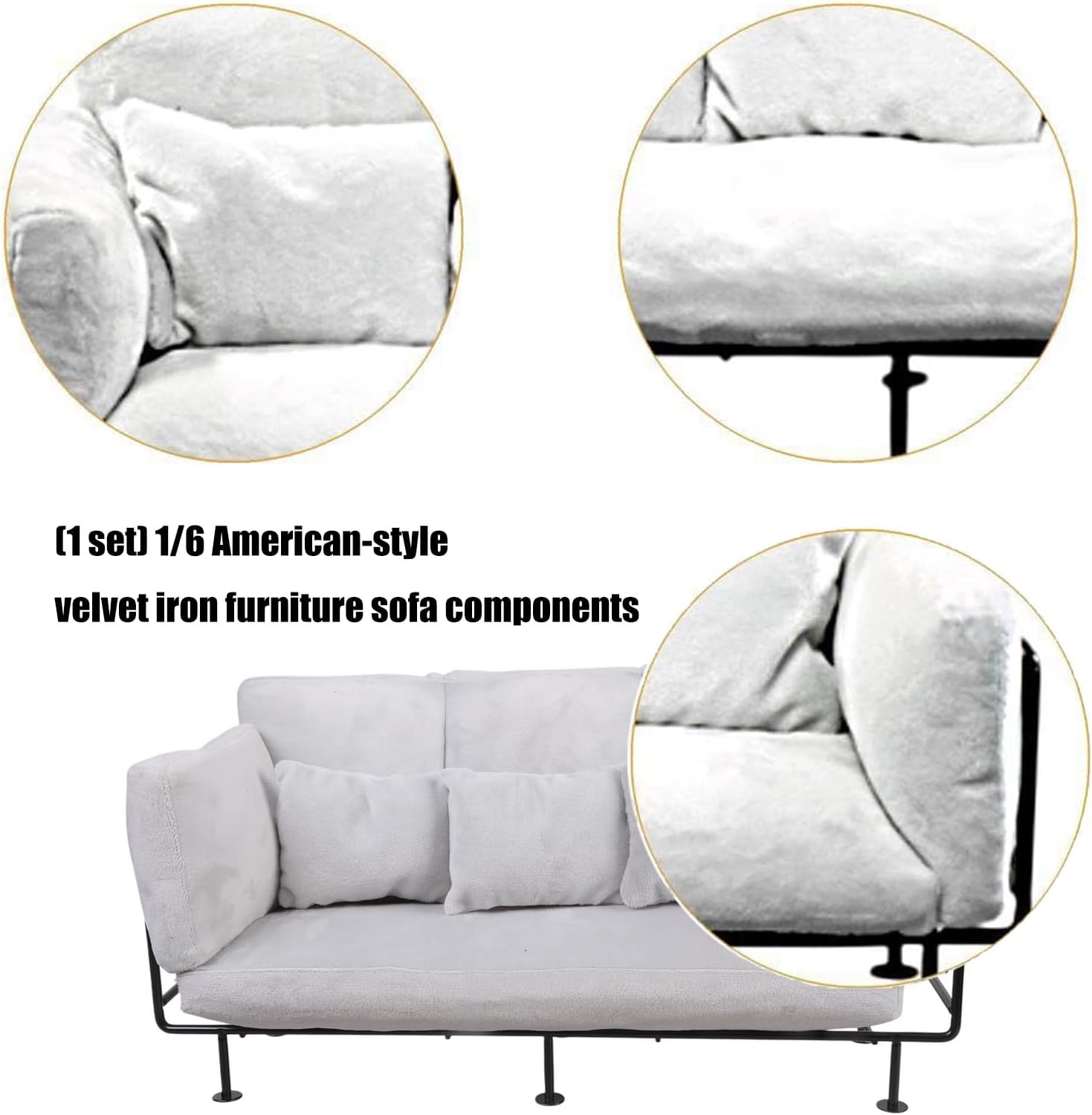 La tappezzeria vellutata di alta qualità incontra la struttura in ferro battuto in questo set di divani in stile europeo, con struttura in ferro per un uso duraturo Le superfici in tessuto antimacchia semplificano la manutenzione per frequenti cambi di layout, preservando condizioni incontaminate su display da collezione dinamici e fotografie Scala perfettamente per configurazioni di scena, scene di action figure o come elegante centrotavola in miniatura in decorazioni paesaggistiche in appartamento studio Ideale per collezionisti e hobbisti che cercano mobili di alta qualità per figurine anime o modelli di robot in un ambiente curato I componenti modulari consentono una facile personalizzazione, adattandosi ai vincoli di spazio mantenendo una sofisticata estetica del design europeo