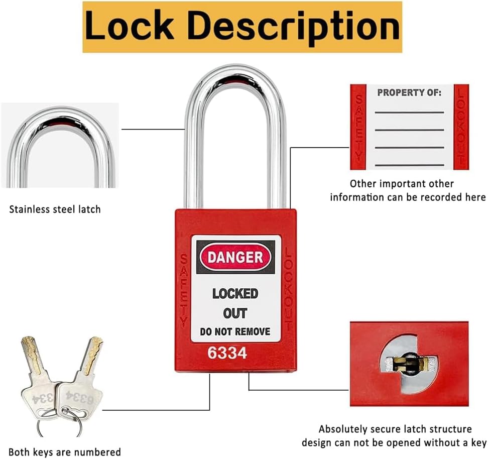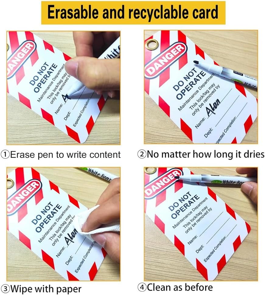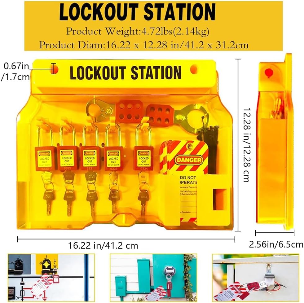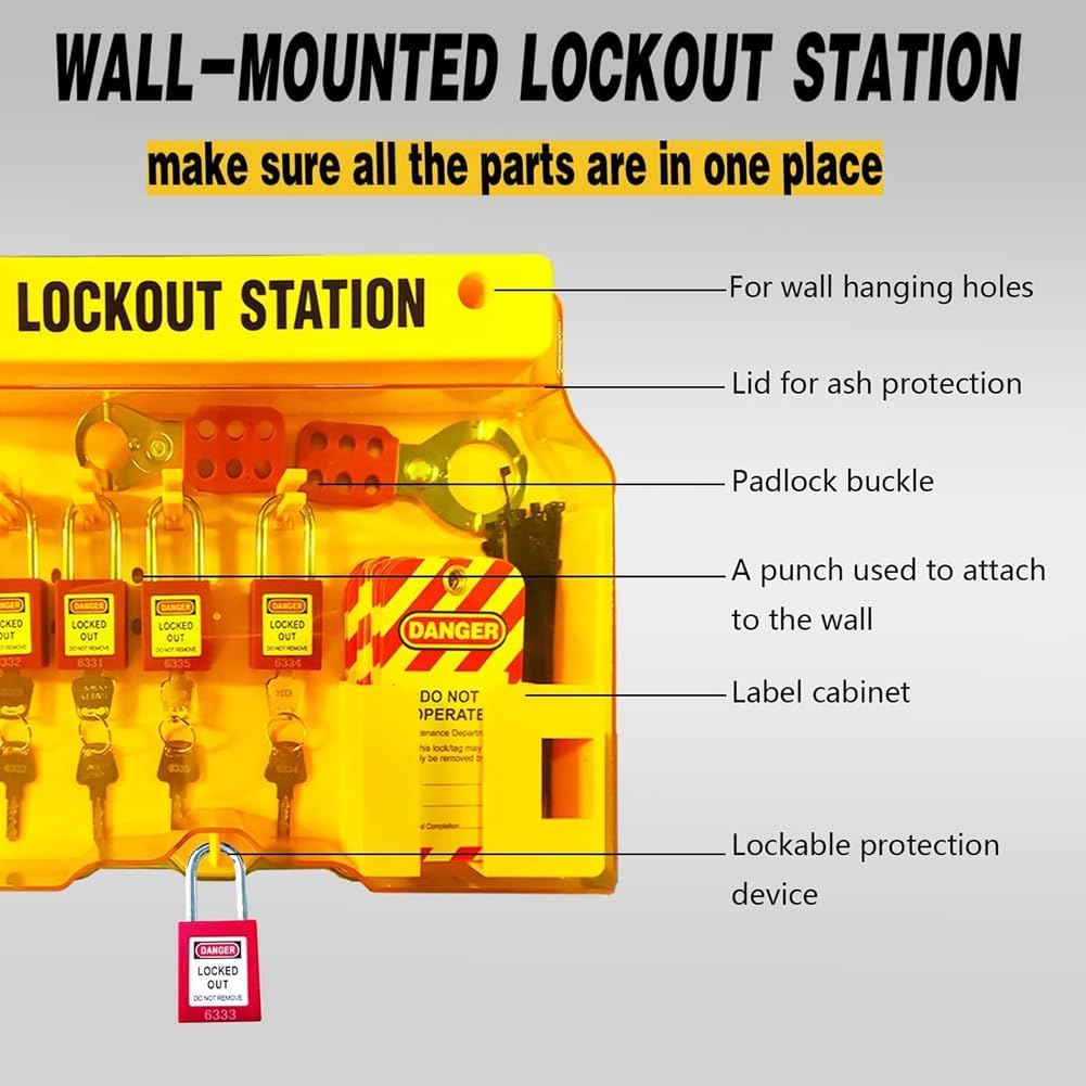 La stazione di montaggio a parete giallo brillante con etichetta di bloccaggio e fori di montaggio preforati può essere montata in modo sicuro nella zona centrale per un facile utilizzo. Tutte le apparecchiature per etichette di chiusura sono alloggiate nella stazione di gestione, il che facilita notevolmente la gestione e l'uso da parte del personale e aumenta l'uso elettrico. La nostra stazione di bloccaggio è dotata di una copertura trasparente e bloccabile che protegge lo strumento e previene l'uso non autorizzato, oltre a un foro di bloccaggio nella parte inferiore che si blocca per evitare l'uso non autorizzato. 2 diversi tipi di serrature di sicurezza rosse, modanatura in termoplastica non conduttiva, chiusura in in acciaio resistente alla corrosione, cilindro chiave con nucleo in , 2 chiavi per serratura. Resistono a difficili condizioni industriali, soddisfano una varietà di requisiti di blocco dei dispositivi e gestione della sicurezza e sono progettati per soddisfare i rischi e le segnalazioni di sicurezza di ciascuna . 33 dispositivi multifunzione di marcatura di bloccaggio, alloggiati in una robusta stazione di in policarbonato tecnico, in di resistere alle difficili condizioni industriali. I nostri pennarelli cancellabili aggiuntivi migliorano il riutilizzo dei tag. La stazione di gestione dei pennarelli da 12,24 x 15,98 x 1,73 cm contiene 5 di sicurezza, 2 aspere, 25 tag di blocco e 1 pennarello. Questa stazione di gestione della sicurezza elettrica è strumento indispensabile per macchinari, apparecchiature elettriche, lavori industriali e altro ancora. Protegge i lavoratori, impedisce incidenti elettrici.