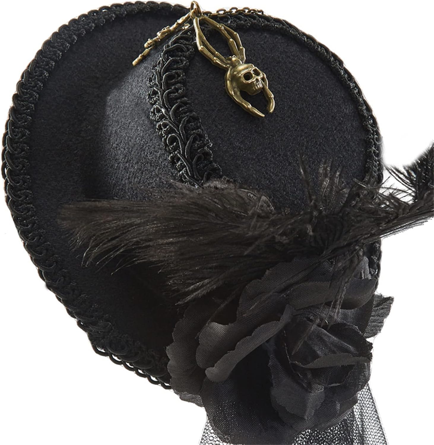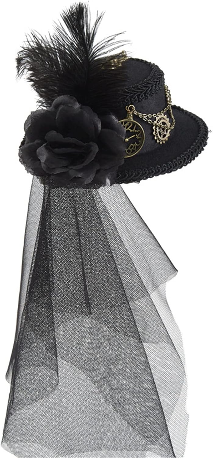 cappelli steampunk da donna con velo, cappello a cilindro steampunk, cappello steampunk, cappello da viaggio nel tempo steampunk, cappello a bombetta steampunk, cappello da festa gay, cappello per feste di Halloween, accessori steampunk, cappello a cilindro gay adatto per Halloween, feste gay, oggetti di scena di danza, caratteristiche steampunk come teschio in metallo, fiore gotico, nappa velo, piume Cappello a tesa larga per completare tutte le forme del viso. Fotogenica eccezionale, buon effetto di ripresa. Adatto per capelli lunghi o corti, appare carnagione chiara, il viso appare piccolo e delicato. Il fondo del cappello ha 2 clip a becco d'anatra per tenere il cappello sui capelli, elastico, adatto a tutte le dimensioni di circonferenza della testa. Funzione decorativa: feste steampunk, feste in maschera, feste gay, carnevale, discoteca, Halloween e feste di Natale, feste di compleanno, feste cosplay, intrattenimento, cerimonia, narrazione, danza, talking show, erba Martedì, ballo di fine anno, regalo di Natale/compleanno, accessori sexy ecc.