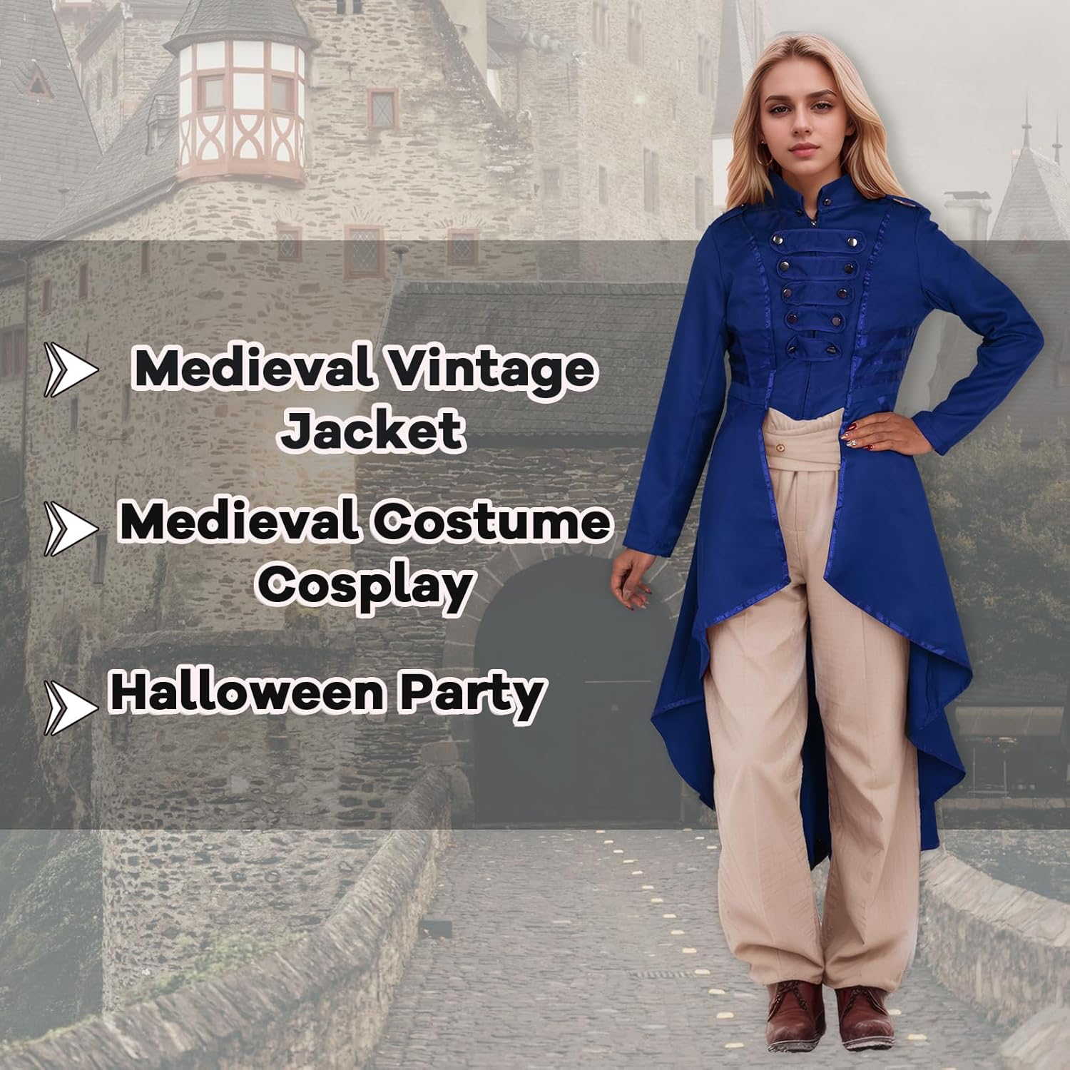 Look vintage stile medievale retrò + steampunk, il cappotto da donna si abbina perfettamente a pantaloni, stivali o scarpe per completare il look vintage.