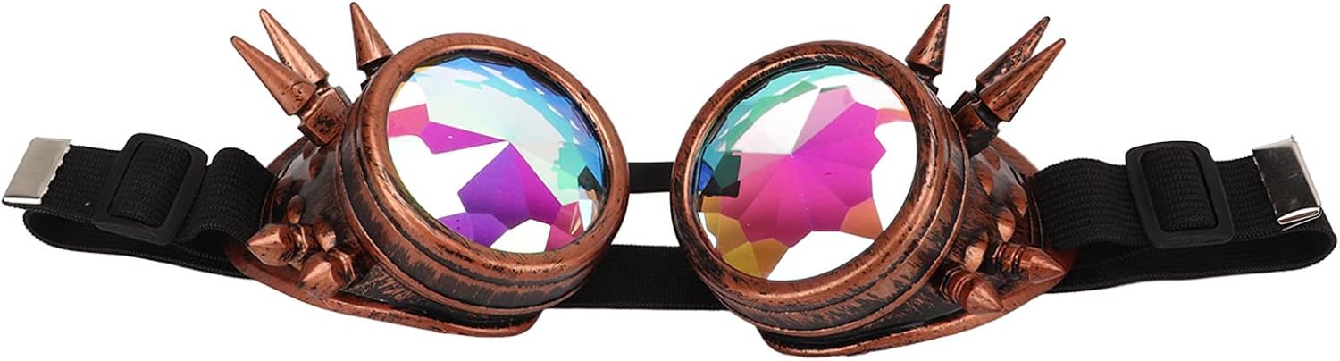 1. Lenti di caleidoscopio: Halween Kaleidoscopio Goggles presentano lenti per caleidoscopio con squisito artigianato e design retrò. 2. Stile Steampunk: gli occhiali di Halloween Kaleidoscopio sono dotati di stile Steampunk, design delle lenti in cristallo arcobaleno, cool e bello e pieno di personalità. 3. Regolabile: gli occhiali a vapore psichedelici trippy hanno nosepiece regolabili, design a dimensioni libere, adatti sia a facce grandi che piccole. 3 5. Luoghi applicabili: gli occhiali di caleidoscopio sono adatti vasta gamma di luoghi, adatti per vintage, decorazione, festa, ., Perfetti per Halloween. Specifiche tecniche: Tipo di articolo: occhiali caleidoscopi Materiale: PC, ABS Lista Imballaggio: 1 x Goggles caleidoscopio