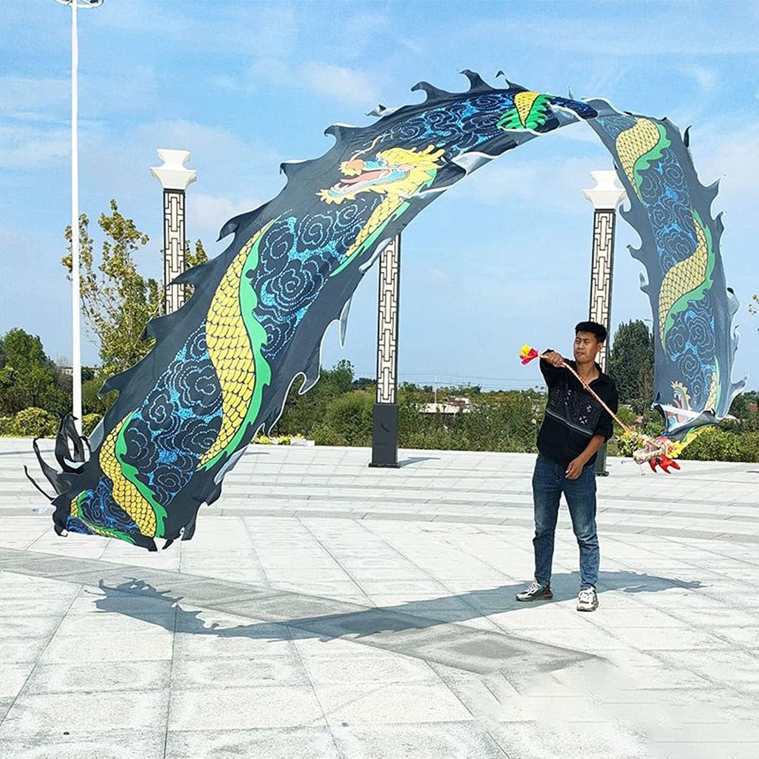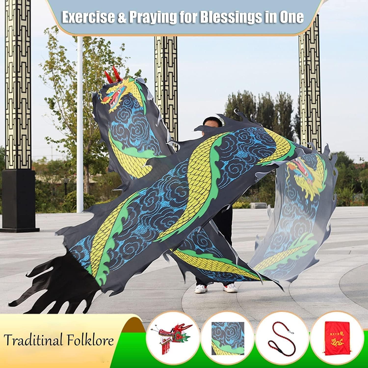 Dragon Fitness Streamer: è un'attrezzatura tradizionale per sport/fitness/esercizi popolari che può essere utilizzata per ballare, allenarsi in forma fisica/ginnastica, allenarsi in abilità circensi, lanciare bastoncini, ecc. È anche un giocattolo. Può portare un divertimento senza fine a te, ai tuoi genitori o ai tuoi figli. Gioco fantasioso: straordinario effetto tornado quando lo fai girare sopra di te; Godetevi l'acqua che scorre mentre voi o i vostri bambini simulate le montagne russe accanto a voi. (Consigliato per giocare in uno spazio aperto, adatto a bambini e adulti di età superiore ai 12 anni. Materiale: tessuto. Il colore del tessuto è particolarmente bello. La cintura svolazzante viene fornita con una lunga corda per eseguire movimenti diversi quando si balla e si gioca, più forti, più strutturati, più realistici e belli. FACILE DA INSTALLARE: La fibbia in metallo è facile da attaccare all'aquilone. Lunghezza del nastro opzionale: circa 6 metri, 8 metri, 10 metri. Larghezza totale del corpo: 75 cm. Bella combinazione di colori, attraente per i bambini.