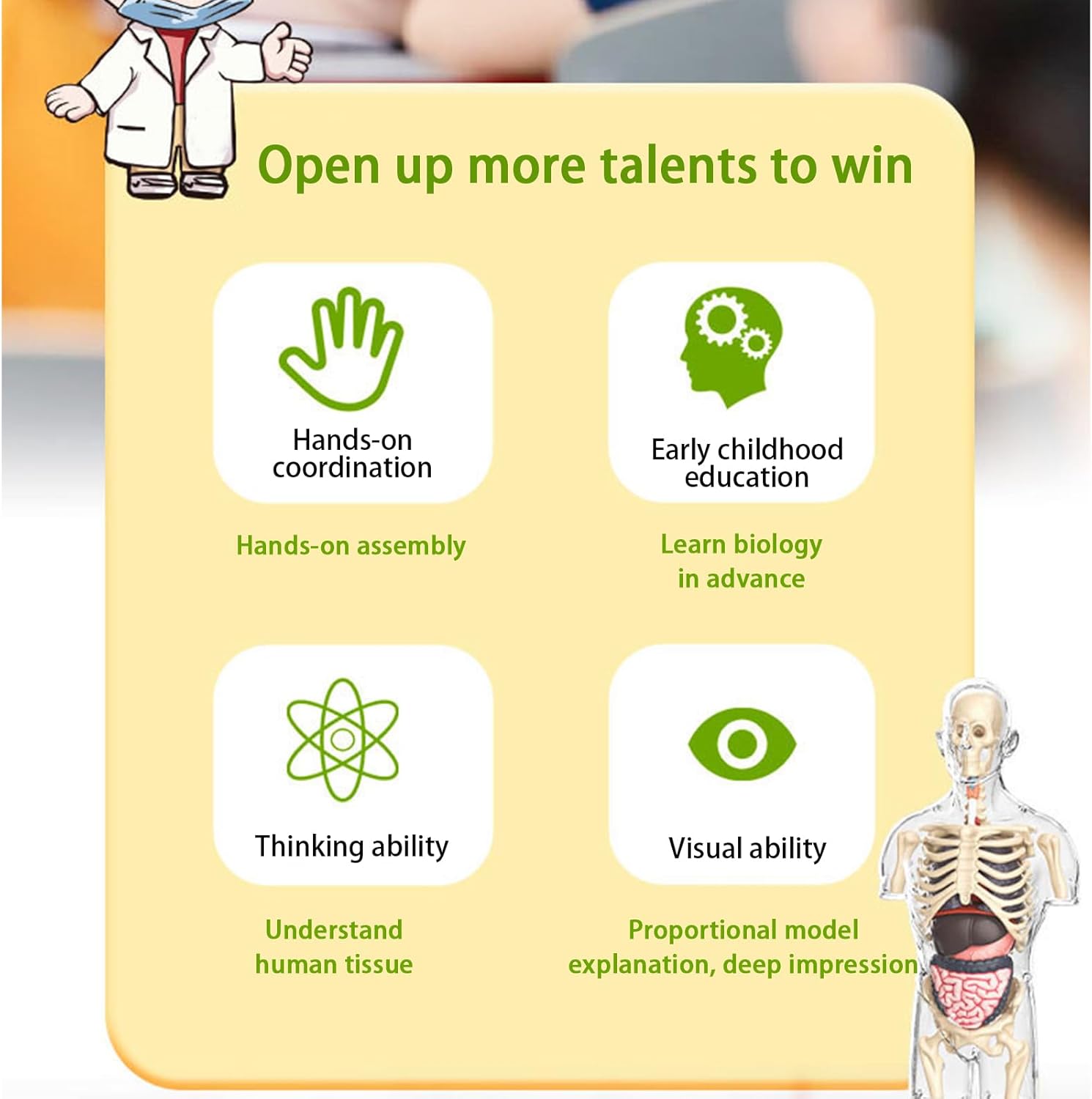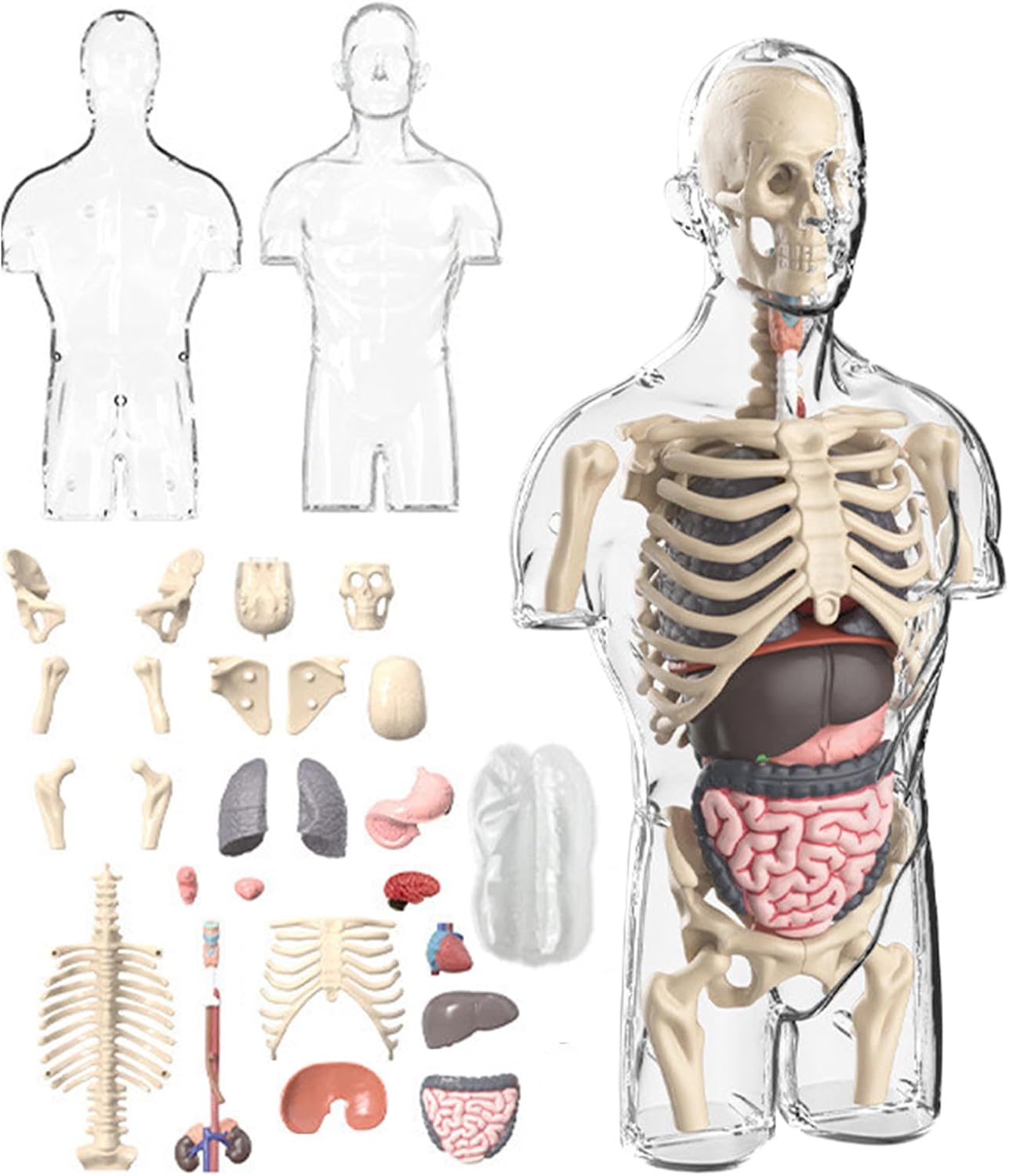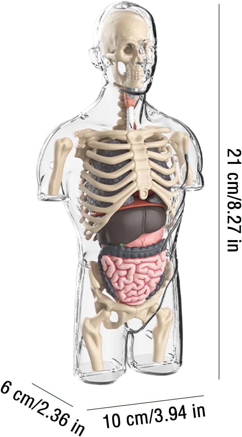 Distinguibile: il nostro modello torso mezzo corpo con un design trasparente è uno strumento unico per approfondire la tua conoscenza del corpo umano. Guarda la struttura interna e comprendi i tuoi segreti come mai prima d"ora. Stimola la comprensione e scopri le meraviglie dell'anatomia. Sviluppa mentale: un'eccellente attività pratica dell'assemblea, che aiuta i bambini a migliorare le loro capacità di costruzione. Assemblando ogni parte del modello per combinare l'intero bagno superiore del corpo, i bambini possono esercitare la loro creatività e godersi un divertente giocattolo educativo che migliora l'apprendimento e lo sviluppo. Migliorare il pensiero del cervello: ti consente di approfondire la complessità del cervello in modo da poter sviluppare le tue capacità di pensiero e fare rapidi progressi nei tuoi studi. Con una comprensione integrale dell'anatomia umana, l'apprendimento diventa un'esperienza trasformativa. Qualità sicura: il modello del corpo umano è costruito con eccellente materiale in PVC e garantisce un apprendimento sicuro per un lungo periodo di tempo. La sua struttura robusta e l'aspetto delicato li rendono resistenti a deformazioni o danni, una risorsa educativa ideale per anni. Ottima opzione da regalare: il regalo perfetto per i bambini in ogni occasione. Con dettagli vividi progettati per attirare facilmente l'attenzione dei bambini, rende l'apprendimento dell'anatomia divertente e dinamico. Un'opzione sufficiente per compleanni, vacanze o sorprese quotidiane.