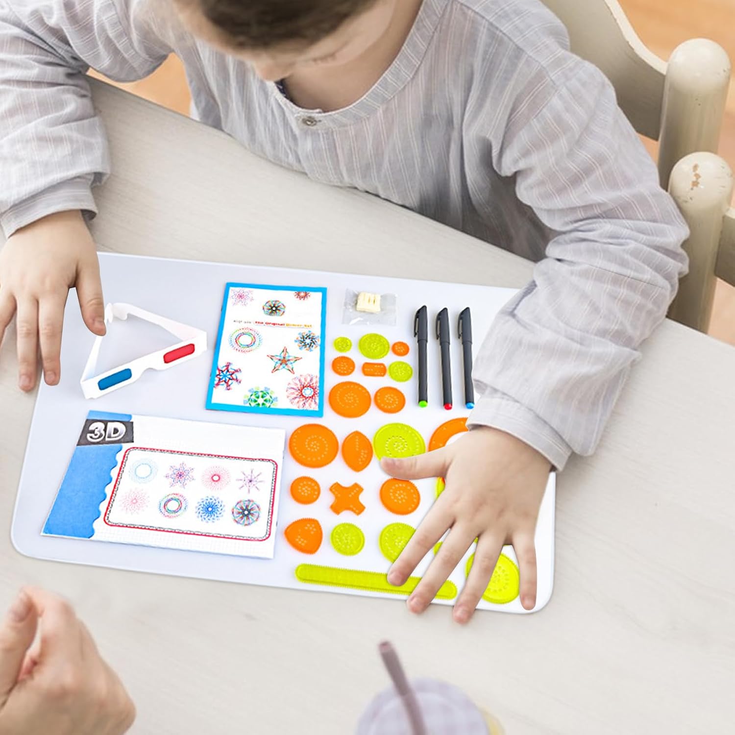 Divertimento didattico trasversale: la gestione intuitiva con elementi di valore didattico combina l'espressione artistica con i principi geometrici di base per le attività familiari e l'uso educativo. Sviluppo interattivo della creatività: promuove in modo giocoso il riconoscimento dei modelli geometrici e le capacità motorie artistiche - combina il divertimento della progettazione con esercizi di concentrazione e sensibilità estetica per l'educazione precoce olistica nell'arte e nella matematica. Promozione della creatività: motiva lo sviluppo illimitato di modelli attraverso stencil adatti all'età: il processo di progettazione intuitivo supporta lo sviluppo artistico naturale nel gioco dei bambini. Capacità di risoluzione dei problemi Promuovere: sviluppa l'immaginazione spaziale attraverso giocosi esperimenti di simmetria e studi angolari, stimola il pensiero logico e soluzioni creative in un ambiente di apprendimento a misura di bambino con un effetto di apprendimento duraturo. Idea regalo premurosa: set creativo che può essere utilizzato più volte e ha un carattere educativo. La presentazione attraente lo rende il souvenir perfetto per compleanni di bambini, madrine o come pacchetto sorpresa con utilizzo a lungo termine