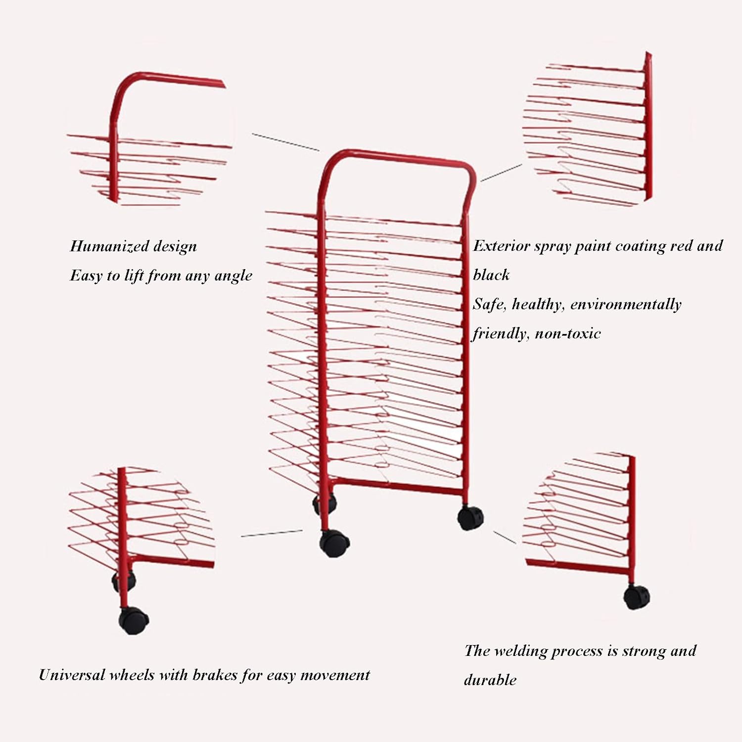 Costruzione robusta: ----- Questo stendino for quadri in classe presenta una robusta struttura in metallo saldato for una maggiore durata, con una distanza di 5 cm tra i rack for garantire che i quadri rimangano puliti. SCELTA IDEALE: ------ Che tu sia un artista professionista o uno studente, questo stendino artistico fornisce una soluzione efficiente e organizzata for asciugare i tuoi dipinti, garantendo un flusso d'aria adeguato e tempi di asciugatura rapidi. Facile da spostare: ---- Questo stendino artistico è dotato di 3 rotelle girevoli, di cui 2 ruote bloccabili, che lo rendono facile da spostare e stabile, consentendoti di posizionarlo ovunque sia necessario for risultati di asciugatura o visualizzazione ottimali. Facile da montare: ----- Lo stendibiancheria artistico for l'aula è facile da montare, bastano pochi minuti for l'installazione, non sono necessari strumenti aggiuntivi, basta collegare insieme i telai superiore e inferiore, fissare le rotelle, installare slot sul rack, sei pronto for iniziare qualsiasi avventura artistica! Ampia applicazione: -------- Lo stendino for aule d'arte è adatto for carta, cartone, plastica e aiuta ad asciugare e conservare dipinti ad olio, acquerelli, poster e altri fogli piatti. Adatto a studi, scuole, famiglie, asili nido, centri educativi for la prima infanzia, studi creativi e altre occasioni in cui è richiesta la pittura a olio.