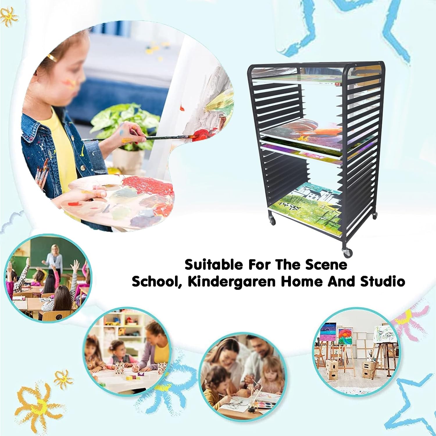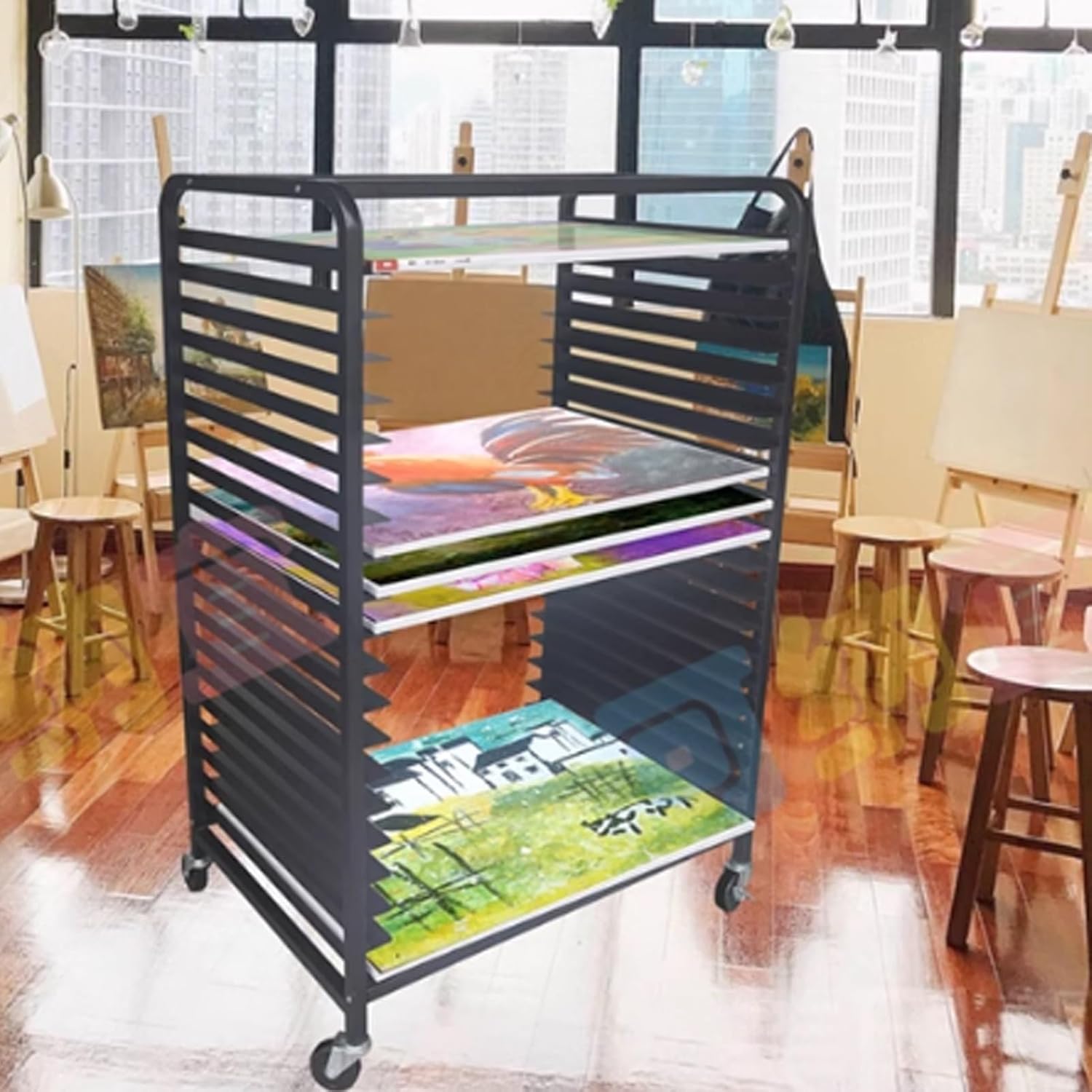 RUOTE MOBILI ----- Ci sono 4 ruote piroettanti sul rack artistico for l'aula, che può essere facilmente spostato su qualsiasi superficie liscia e piana, nel frattempo, è dotato di freni for mantenerlo fermo, che sarà stabile for sostenere i tuoi lavori artistici COSTRUZIONE ROBUSTA ----- Lo stendibiancheria è realizzato in metallo, resistente e di lunga durata RACCOGLITORI for L'ASCIUGATURA ARTISTICA ----- L'asciugatura non è mai stata così semplice, gli stendibiancheria offrono molto spazio for posizionare in modo semplice e sicuro nuove creazioni di artisti, come stampe a getto d'inchiostro, tele, acquerelli o dipinti acrilici, poster e altre opere d'arte, for tenerli lontani essere macchiato o spiegazzato POSTI APPLICABILI ----- Molto adatto for asili nido, aule scolastiche, centri di prima educazione, case o studi e altri luoghi in cui è necessaria la pittura a olio secca FACILE DA ASSEMBLARE ----- Non sono necessari strumenti aggiuntivi for assemblare il supporto artistico, basta collegare insieme i telai superiore e inferiore, installare le rotelle, una persona può assemblare facilmente