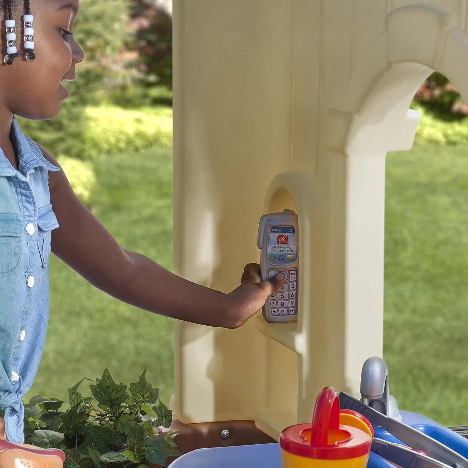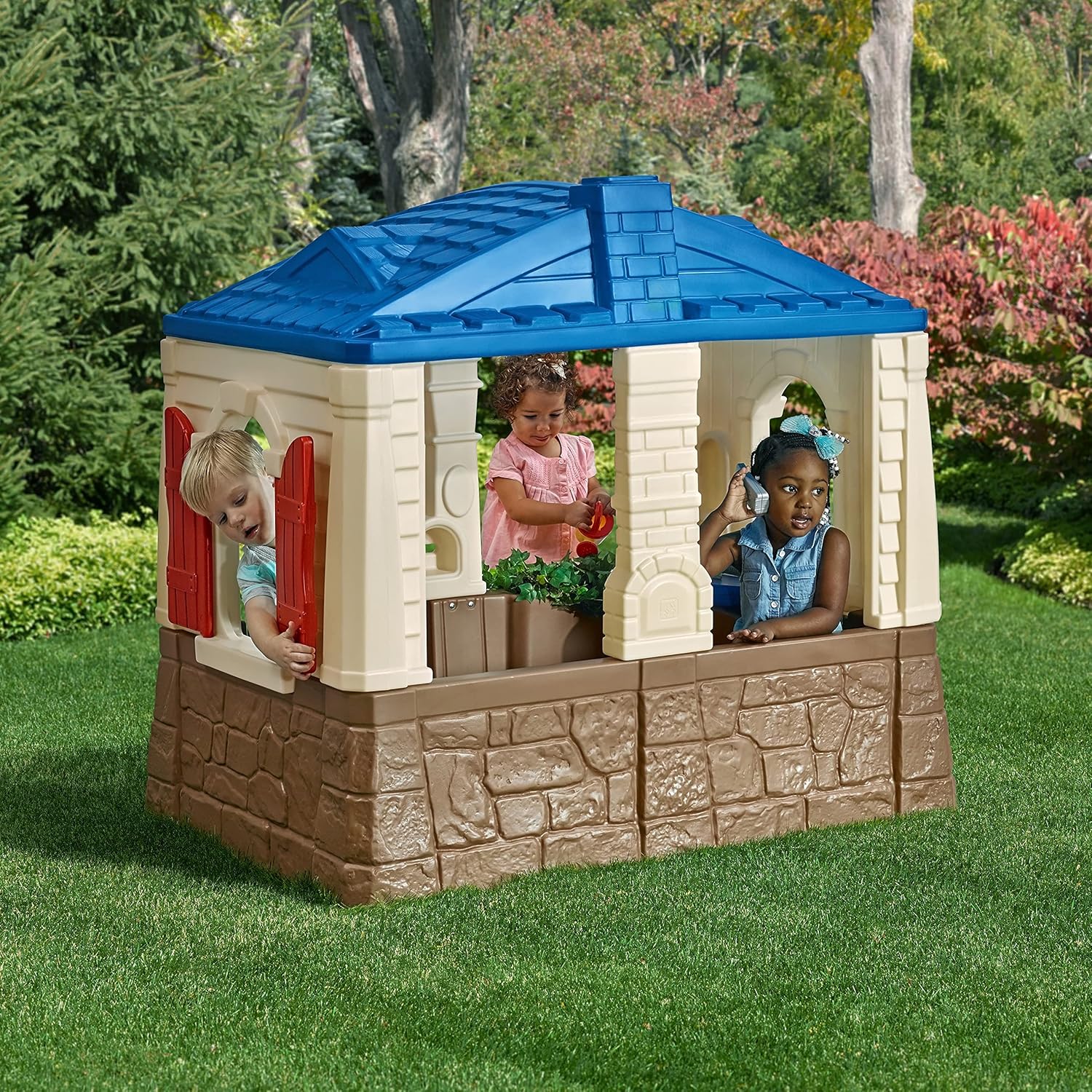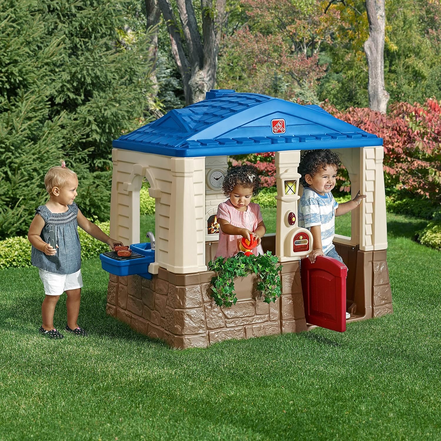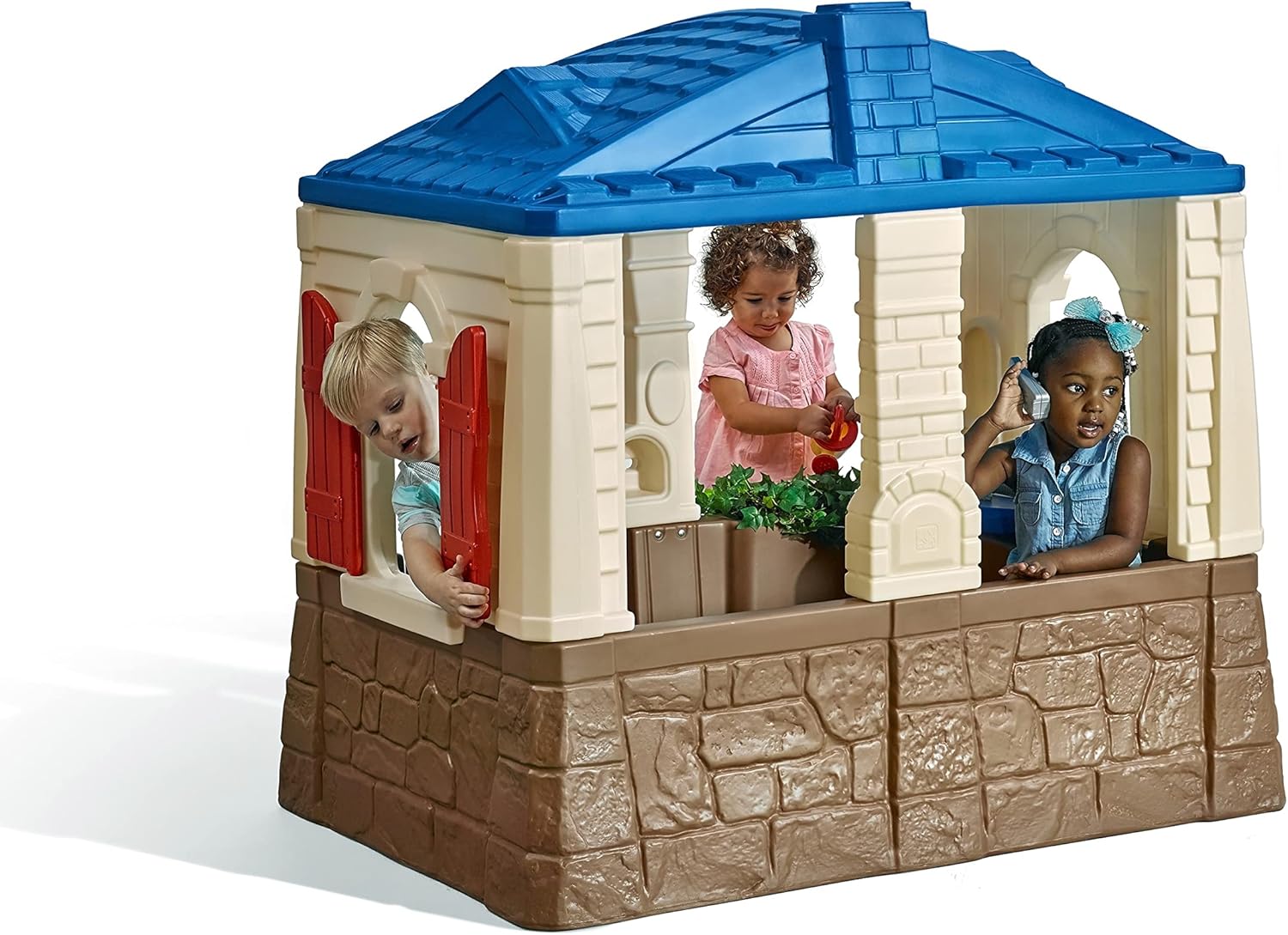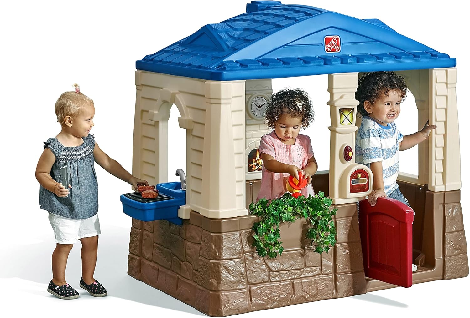 Caratteristiche del prodotto una parola molded-in che è una mamma preferiti Design aperto offre un facile View of children at play Telefono interattivo, campanello di lavoro e pass-through Mailbox Tavolo da cucina, toccare, bruciatore molded-in e due sedili Lavoro Porta olandese e persiane. Playhouse interno 1.14 m di altezza