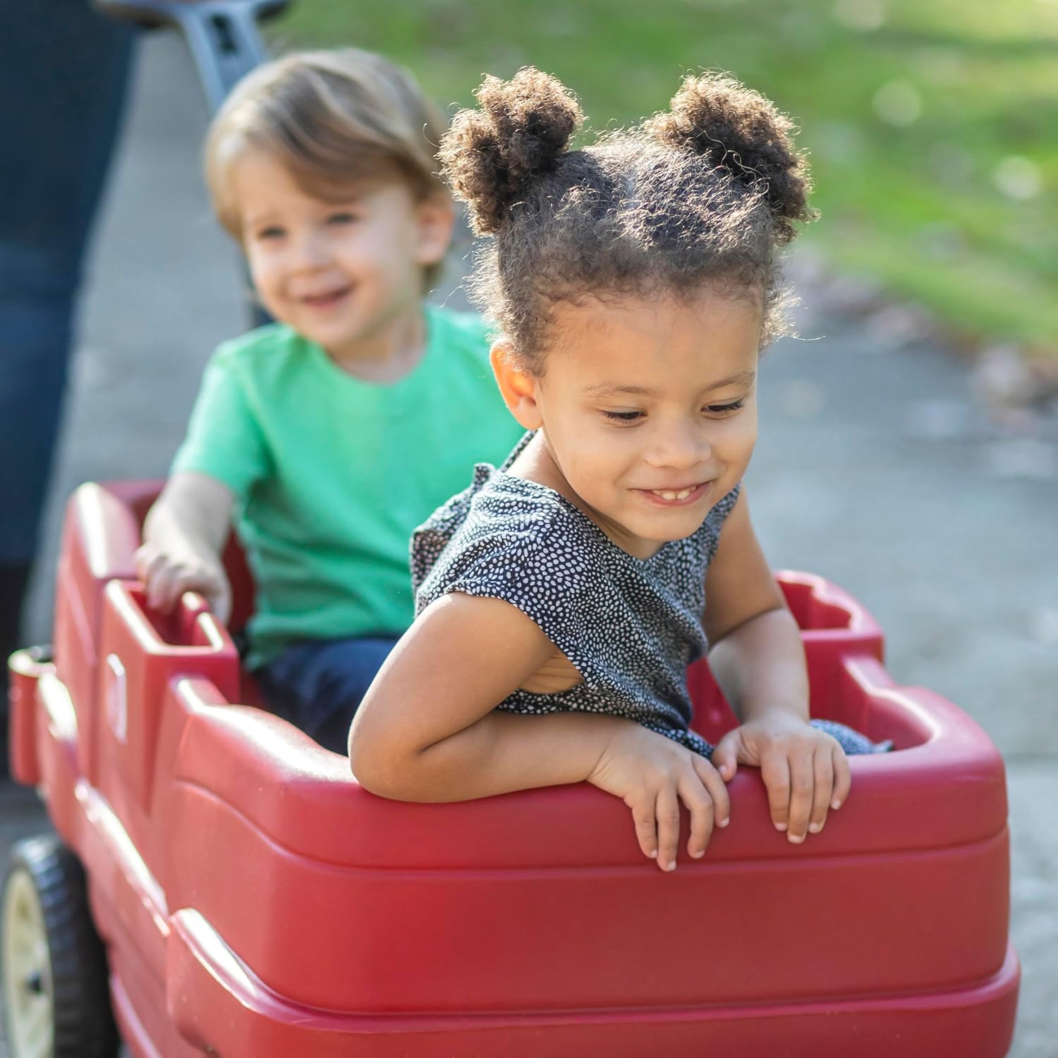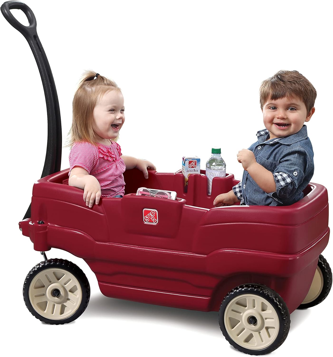 COMFORT: questo carretto per bambini offre spazio confortevole per due bambini piccoli. Questo passeggino è ideale per le passeggiate nel quartiere o per andare dai nonni. There is even room for drinks and snacks. SICUREZZA: il carro del vicinato Step 2 è dotato di cinture di sicurezza per una maggiore sicurezza. DUREVOLE: questo carrello offre resilienza e durata senza precedenti grazie alla plastica EverTough. PULIZIA: La plastica è facile da pulire con detergenti domestici o salviette disinfettanti. PRATICO: Il manubrio si ripiega facilmente sotto il carrello, risultando così meno ingombrante e facile da trasportare.