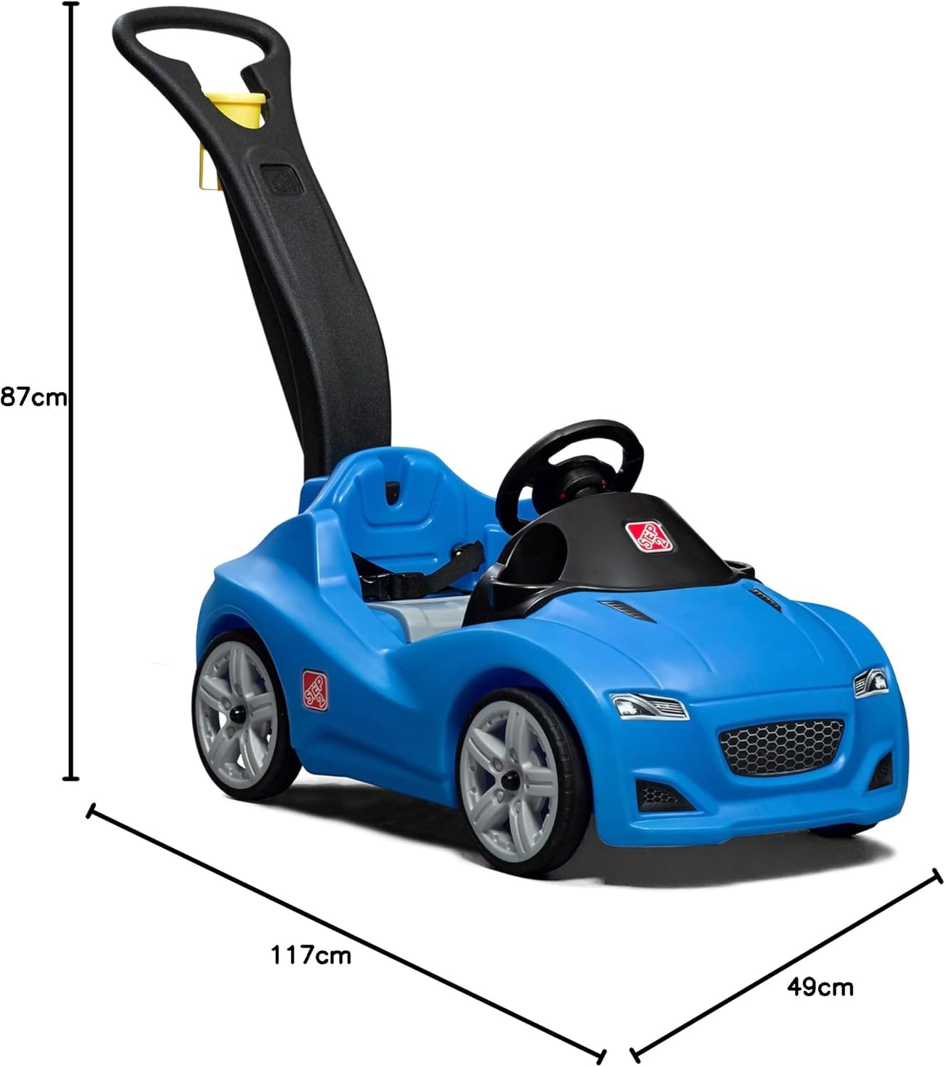 AUTO PER BAMBINI PER PICCOLI CORRENTI: con l'auto per bambini Whipser Ride di Step2, i sogni dei bambini diventano realtà! Con il volante e il clacson i bambini possono fingere di guidare l'auto da soli. Gli adulti possono spingersi comodamente grazie alla maniglia pieghevole. Ideale per lunghe passeggiate! Sei pronto per il viaggio? GUIDA SICURA: la nostra auto per bambini in robusta plastica è dotata di una cintura di sicurezza che mantiene il piccolo conducente al sicuro al suo posto durante la guida. Grazie alle Whisper Wheels è garantita anche una guida silenziosa con poco rumore della strada. Così potrete godervi entrambi un viaggio sicuro e piacevole! CARICO MASSIMO: 22,7 kg. CONTENUTO DELLA CONSEGNA: L'auto per bambini con volante e clacson è dotata di una maniglia facile da riporre e di una cintura di sicurezza. C'è spazio per riporre gli oggetti sotto il sedile. Puoi anche portare facilmente con te le tue bevande preferite grazie al portabicchieri. ALTA QUALITÀ: la nostra auto per bambini è realizzata in plastica stampata in rotazionale EverTough e presenta una resistenza e una durata senza pari. Ideale per giocare senza preoccupazioni con una manutenzione minima! Il cavalcabile è facile e veloce da pulire. Basta usare salviette disinfettanti o un normale detergente domestico. STEP2: Step2 progetta e produce prodotti sorprendenti ed educativi per bambini dai 9 mesi ai 10 anni. Per interni ed esterni, per giocare e imparare. L'assortimento comprende, tra le altre cose, tavoli da gioco acquatici, cucine da gioco e attrezzature da gioco. I prodotti Step2 sono innovativi e offrono anni di divertimento!