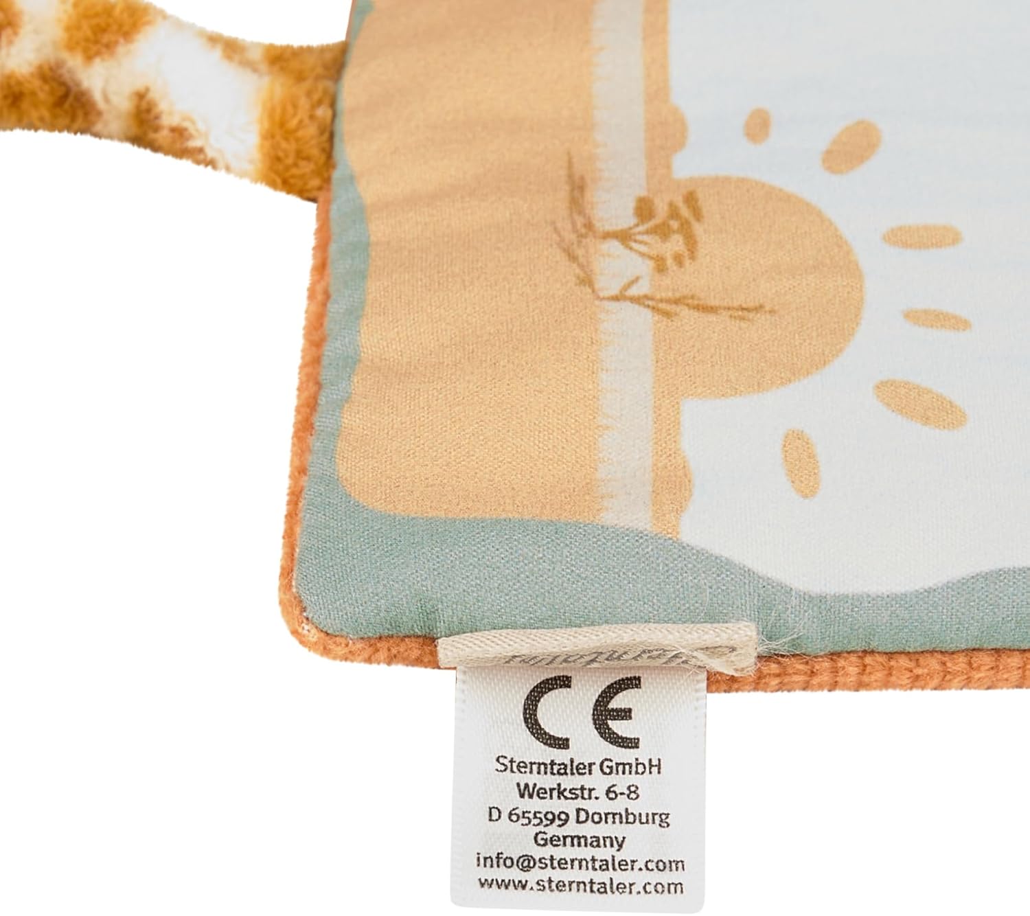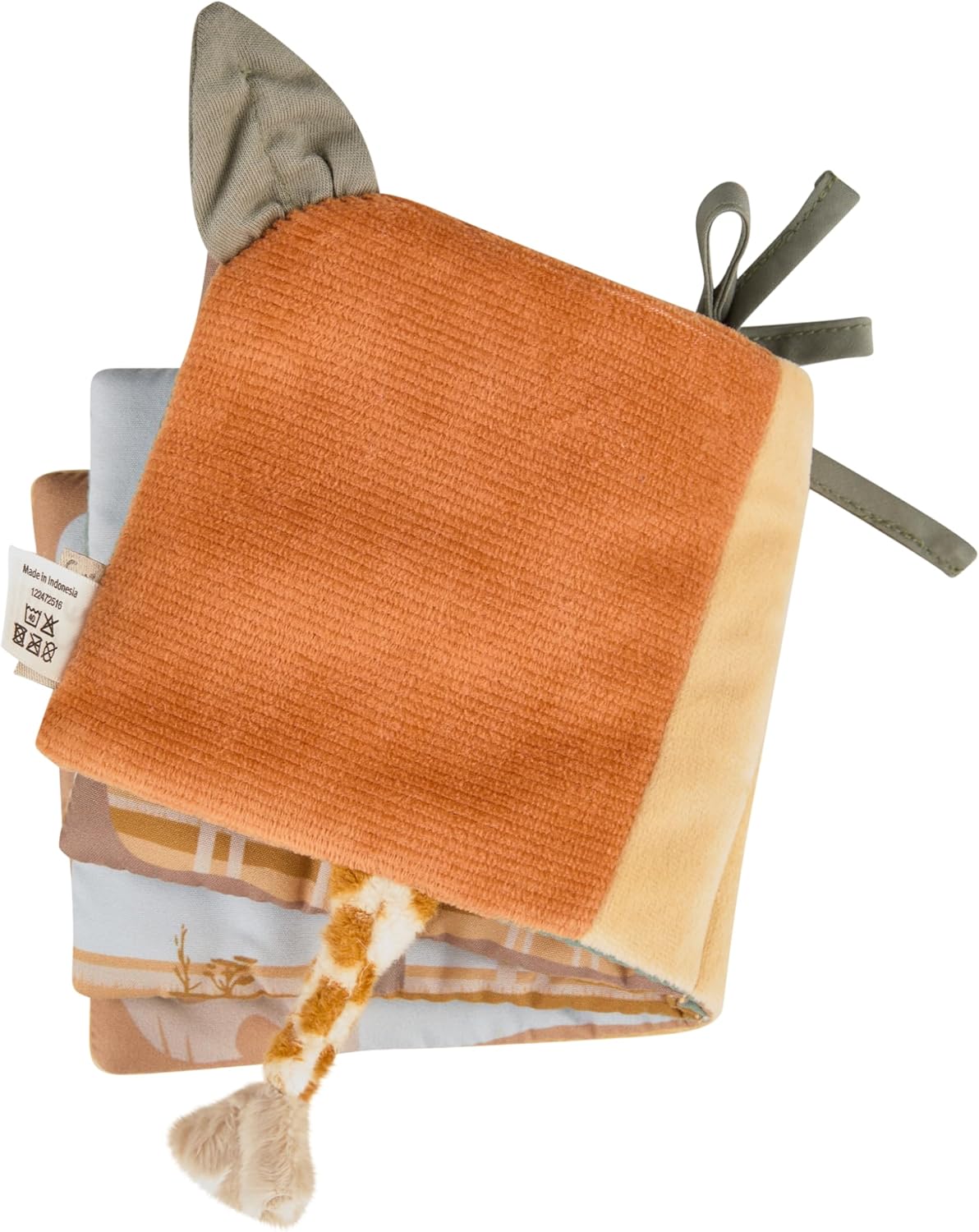 Libro da gioco per bambini, motivo: giraffe e leone, con morbida giraffa, imbottita, con nastro per legare comodamente al passeggino o simili, carta scoppiettante e cigolii da scoprire