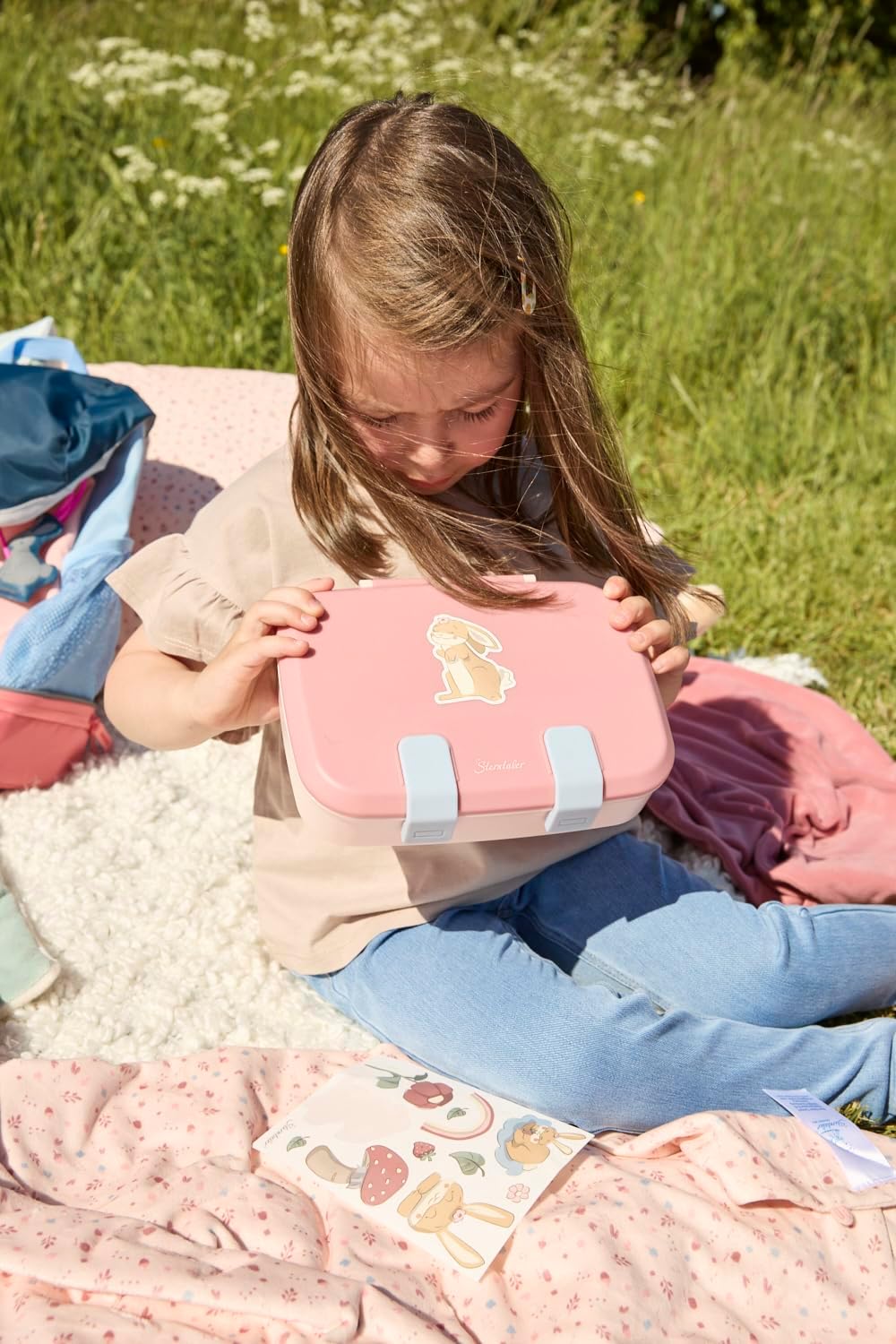 Contenitore per il pane per bambini in polipropilene, perfetto per l'asilo, la scuola e il tempo libero. Inserto rimovibile con 3 scomparti. La chiusura in silicone a misura di bambino è facile da aprire e chiudere. Può essere lavata in lavastoviglie. Adesivo lavabile in lavastoviglie per personalizzarlo. 1 foglio con motivi / // 1 foglio con alfabeto
