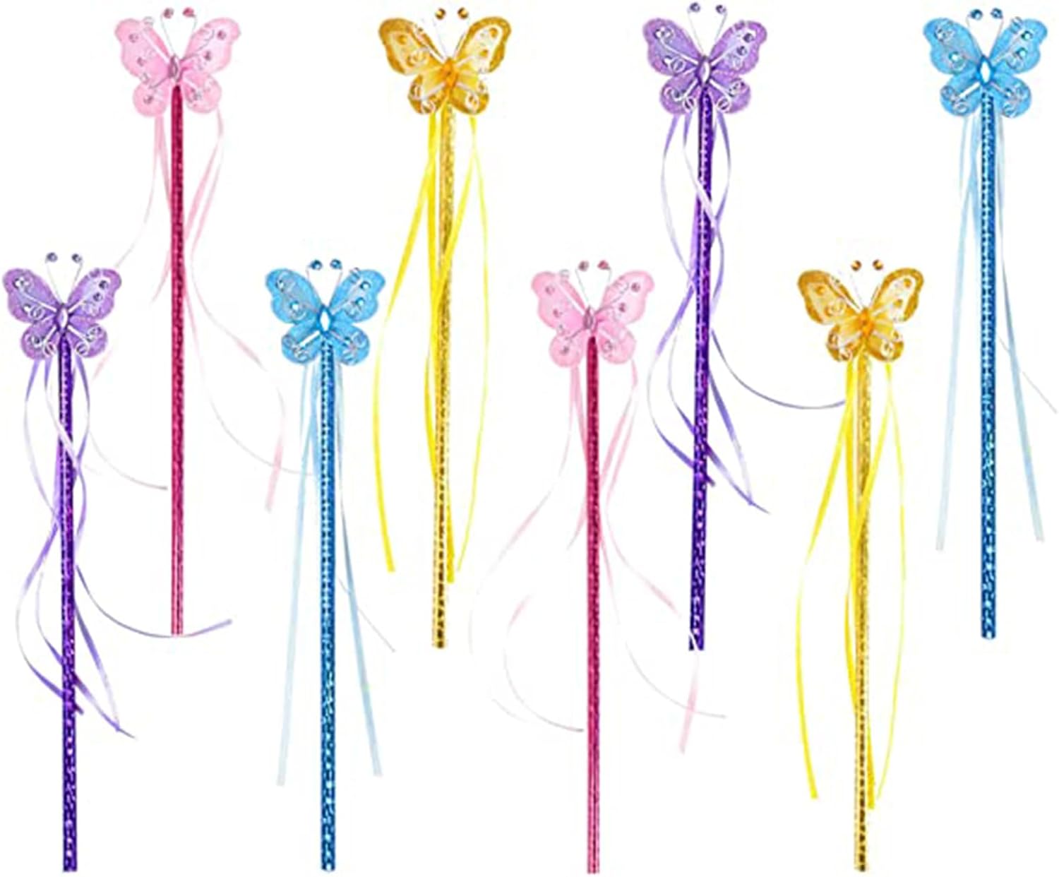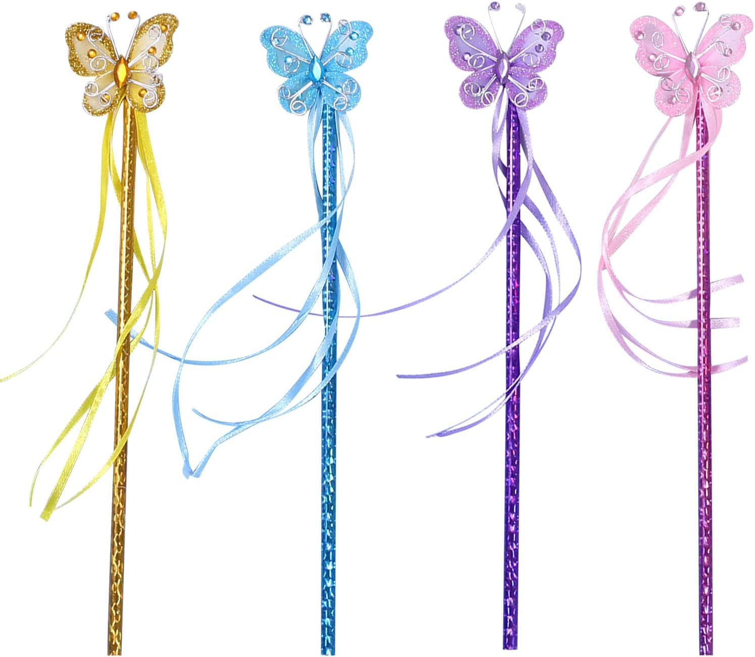 Carino: dolce e affascinante, piacerà molto ai bambini. 【Soft Touch】 Mano comoda, consistenza fine, non farà male e non graffierà la pelle del bambino, scene sicure e adatte: per vestire la tua ragazza per feste di compleanno, spettacoli teatrali e altre occasioni. Ottima anche per i bambini che vogliono fare cosplay di fate alle feste o ad altri festival Farfalla sulla parte superiore, nastro avvolto attorno alla bacchetta, bella ed elegante, alla tua bambina piacerà questa bacchetta carina. Ottimo regalo: questa bacchetta magica a tema farfalla è adatta ai bambini ed è il miglior regalo per i bambini