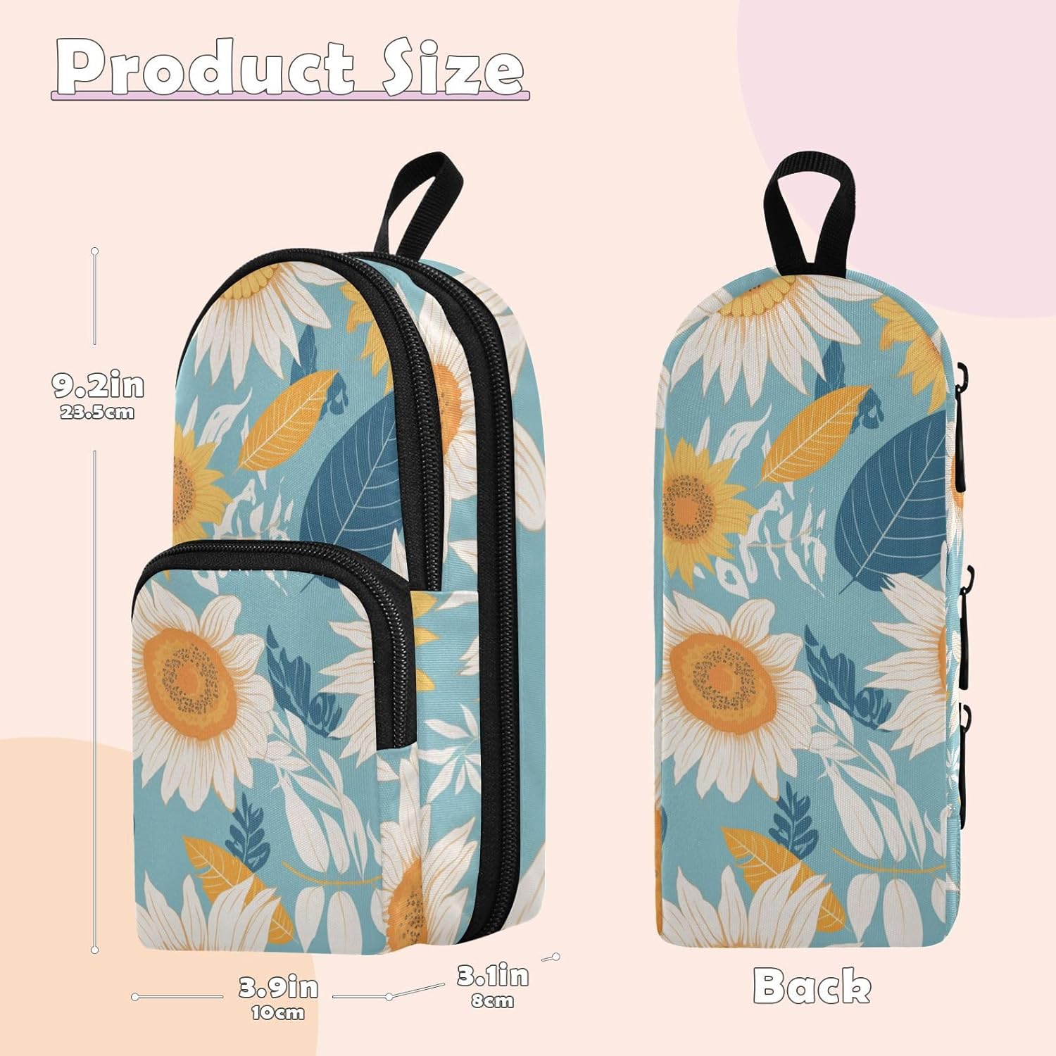 Capacità: con le dimensioni ragionevoli di 23,4 x 9,9 x 7,9 cm e una capacità di 1600 ml, sia collocato in uno zaino da scuola o su una scrivania, il grande astuccio con cerniera non occupa troppo spazio. Nel frattempo, può contenere ordinatamente un gran numero di matite sottili, mantenendo la cancelleria in buon ordine. Multiuso: il design a tre strati senza cuciture non offre spazio sufficiente per matite sottili, ma può anche riporre comodamente vari accessori di cancelleria come graffette e graffette, soddisfacendo le tue esigenze di archiviazione diversificate e dimostrando pienamente i suoi vantaggi multifunzionali. Materiale: il nylon accuratamente combinato con squisita fattura, rende i punti dell'astuccio saldi e la cerniera robusta, portandoti un'esperienza di utilizzo gioiosa e bella. Design: il design unico con stampa senza cuciture ha motivi squisiti e colori vivaci e duraturi, rendendo il tuo astuccio distinguersi tra molti articoli di cancelleria e evidenziando la tua personalità e il tuo gusto. Età consigliata: dai 3 anni in su. Non adatto ai bambini di età inferiore ai 3 anni. Se avete qualche problema con questo astuccio estetico, vi preghiamo di contattarci via e-mail.