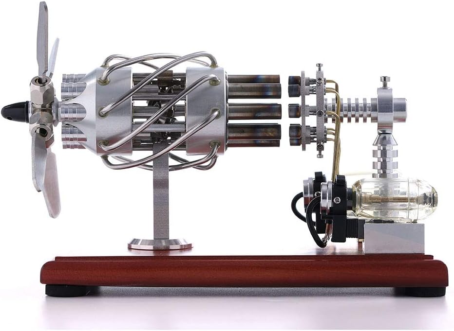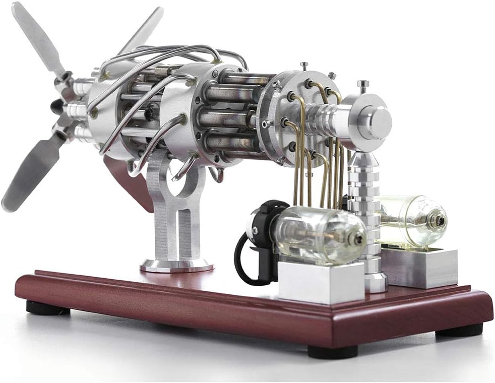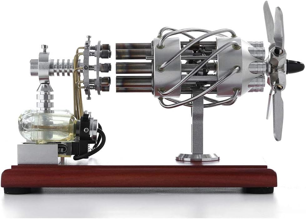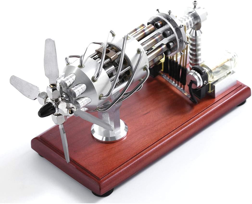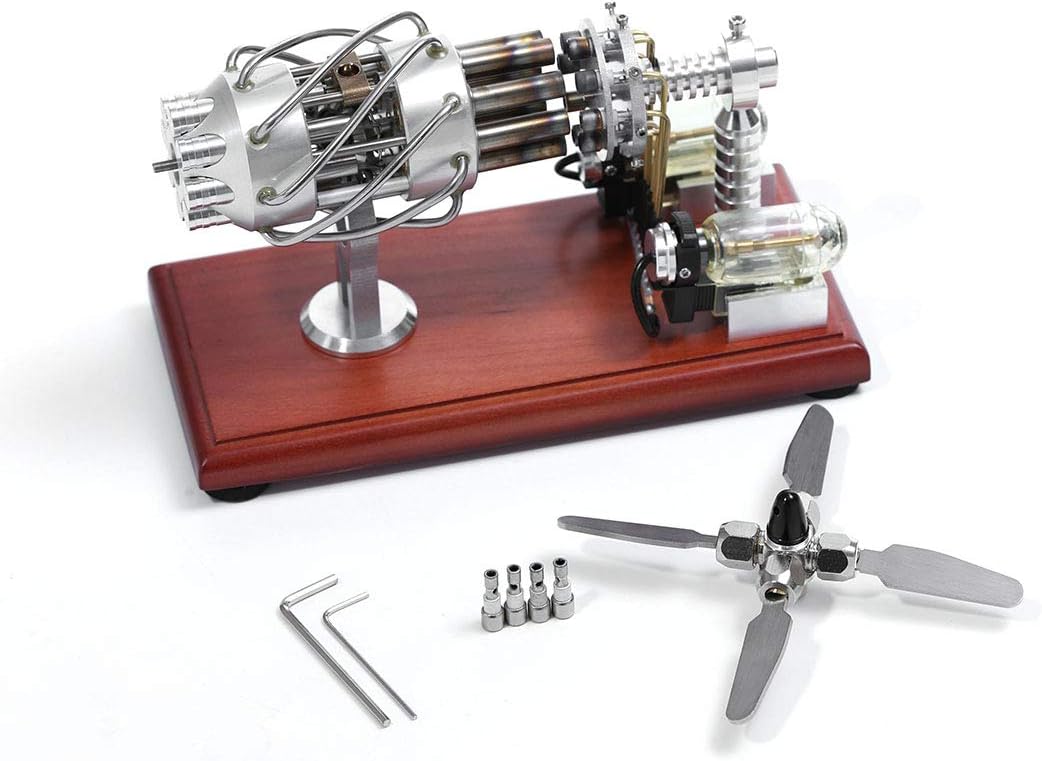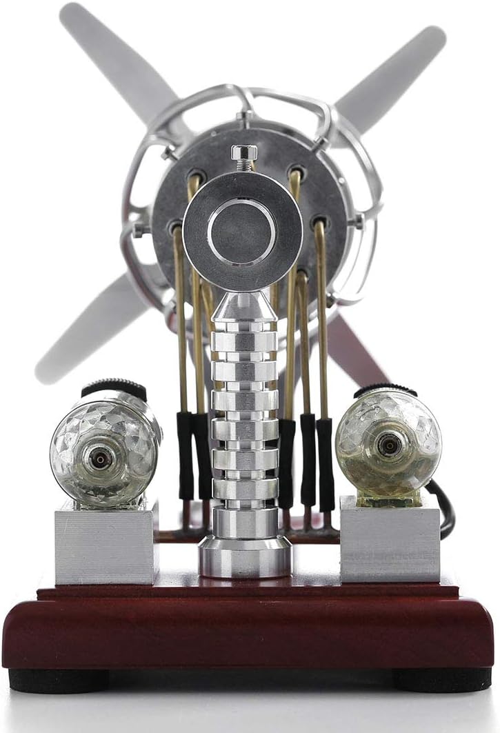 Questo motore è un motore termico nel motore Stirling. Processo di ciclismo: 1. isotermico endotermico; 2. riscaldamento isotermico da fonte di calore esterna; 3. calore, calore; 4. isotermico isotermico refrigerante e completare un ciclo. Materiale: Acciaio inossidabile + Legno Soild/Dimensioni del prodotto: 21,5 x 10 x 16,5 cm Modello: 16 cilindri (8 tubi di riscaldamento + 8 tubi di raffreddamento) Suggerimenti: Assicurati di attendere fino a quando il raffreddamento naturale per toccare il cilindro di riscaldamento per evitare ustioni