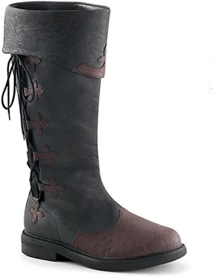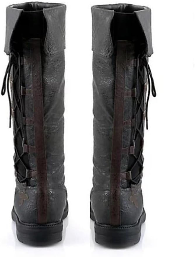 1, Parametri: Taglia: 35 - 48 Colore: nero Stile: gambale lungo Materiale: pelle artificiale Genere applicabile: unisex Peso: circa 600 - 700 g/paio Adatto per: teatro, palcoscenico, feste, Halloween, carnevale, oggetti di scena per film, rievocazioni storiche, collezionismo, attività varie, ecc 2, La confezione include: Scarpe medievali x 1 paio