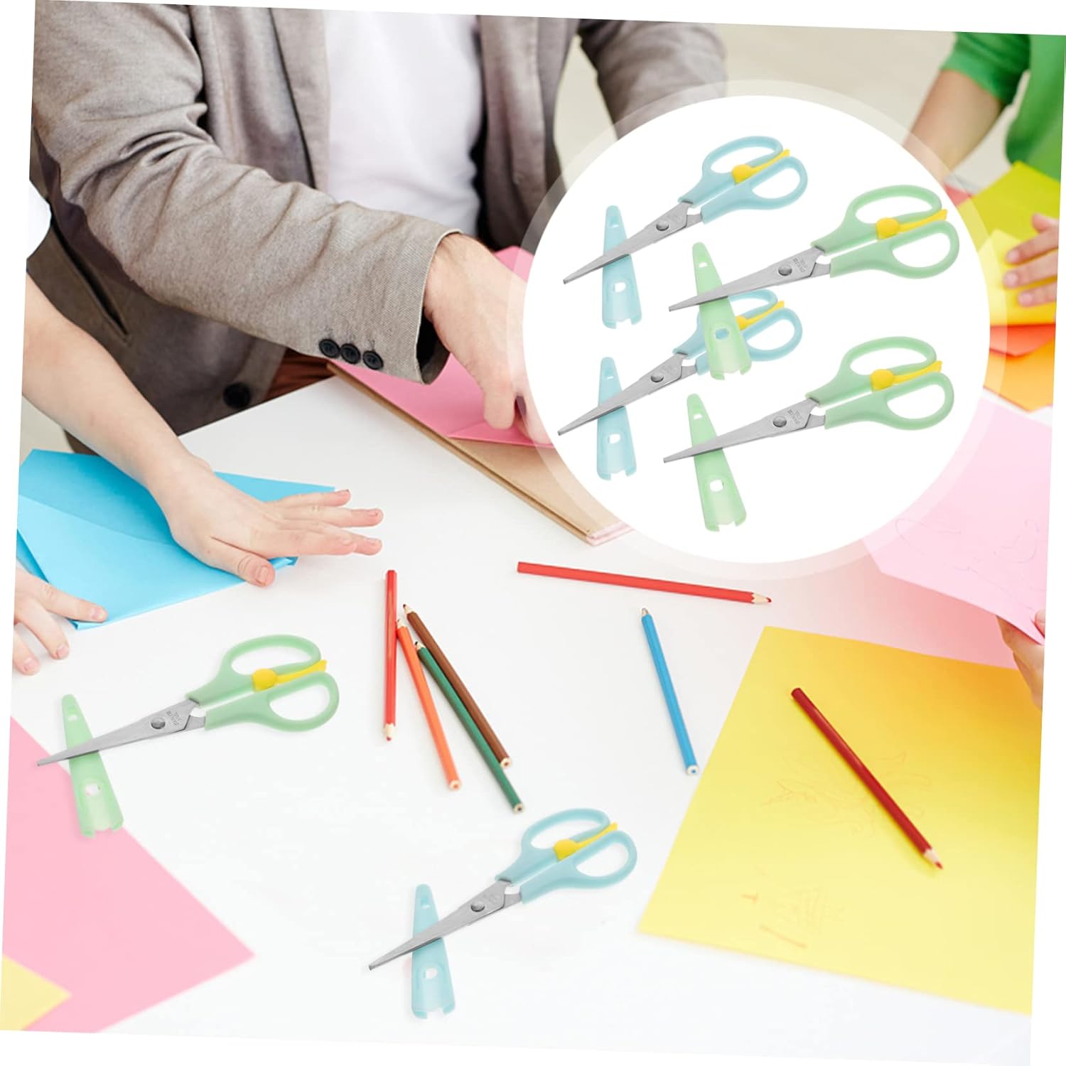 Forbici di sicurezza per bambini: la lavorazione delle forbici per bambini è, e avrai una buona esperienza nell'usarla, forbici di sicurezza per bambini di 2-4 anni Forbici sicure per i bambini: fantastiche e facili da usare per scrapbooking, creazione di cartoline, compleanni fai da te, creazione di cartoline di natale, forbici per bambini di 2 anni Articoli per la casa: molto adatti per l'uso in aule, scuole, uffici e case, lavori manuali facili da completare, foto fai da te, album fotografici e altre attività, forbici multiuso Forbici per carta: non causeranno molta fatica dopo un uso prolungato, adatte come accessori utili per gli amanti del fai da te, adatte per il materiale scolastico degli insegnanti delle scuole medie e superiori, forbici per studenti Forbici per bambini: ne garantisce la robustezza e la durata, che, forniture per ufficio