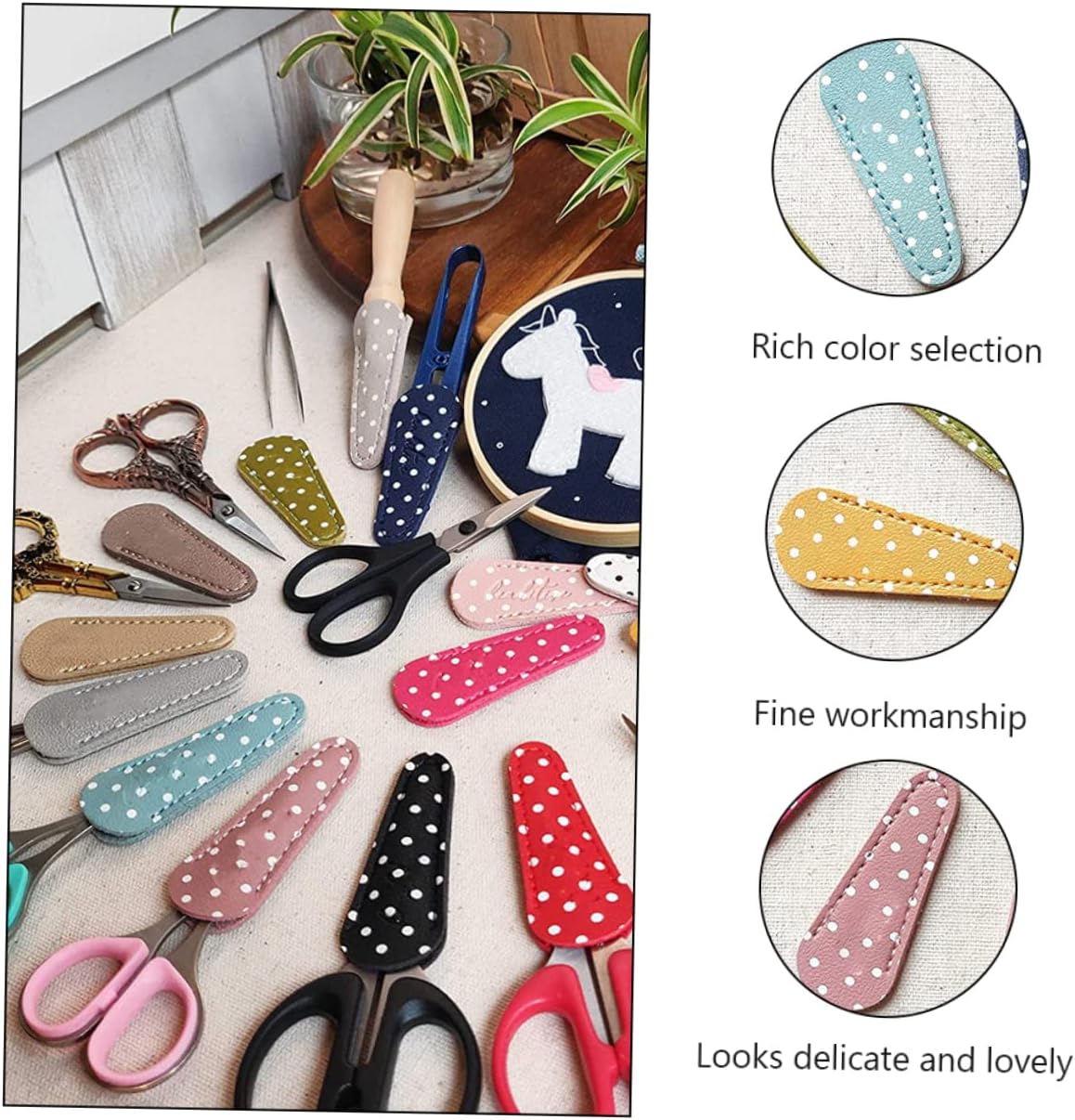 Fodero per forbici: design adorabile, sembra delicato e adorabile. Copertura protettiva per forbici: realizzata in materiale di alta qualità, è resistente e pratica da usare. Protezione creativa per la copertura delle forbici: può proteggere le forbici o gli strumenti di bellezza quando non sono in uso. Custodia per forbici in pelle sintetica: la quantità sufficiente ti consente di inviarne una o più ai tuoi amici o , mostrando loro la tua gentilezza Protezione per forbici: ricca selezione di colori e quantità sufficiente per soddisfare le vostre esigenze di utilizzo e sostituzione.