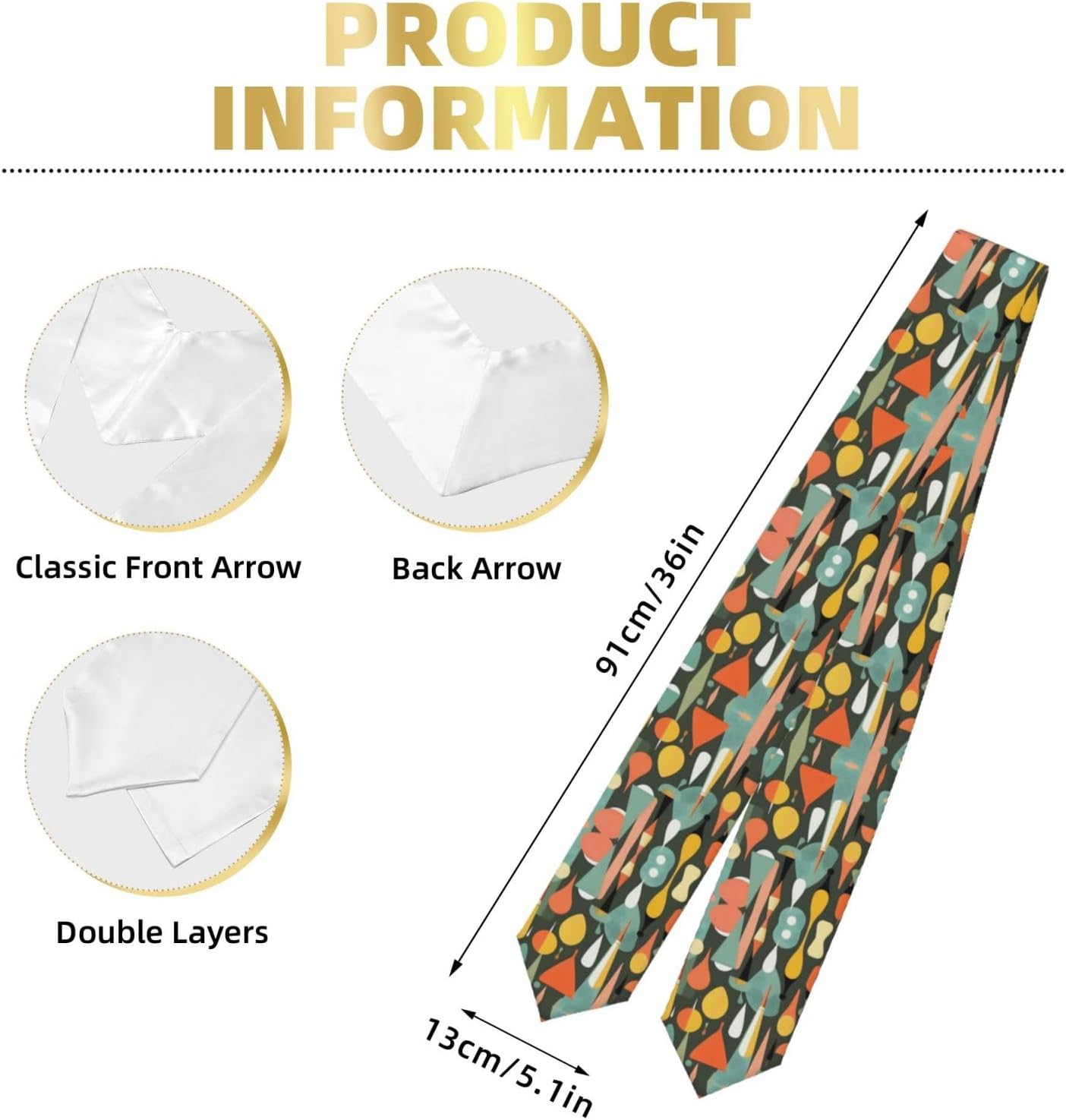 Stola retrò moderna di metà secolo con forme a goccia, unisex adulto 72 pollici, sciarpa da laurea per sciarpa unisex