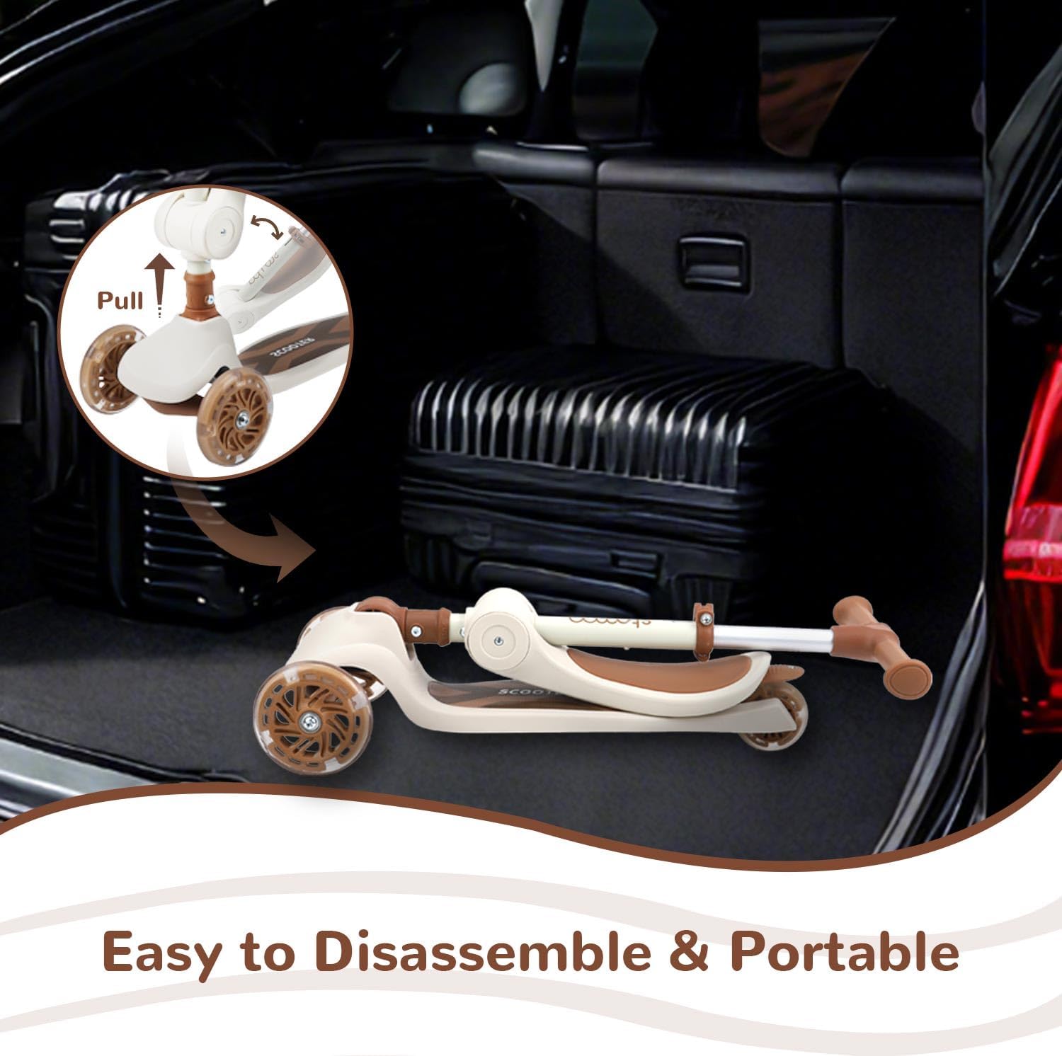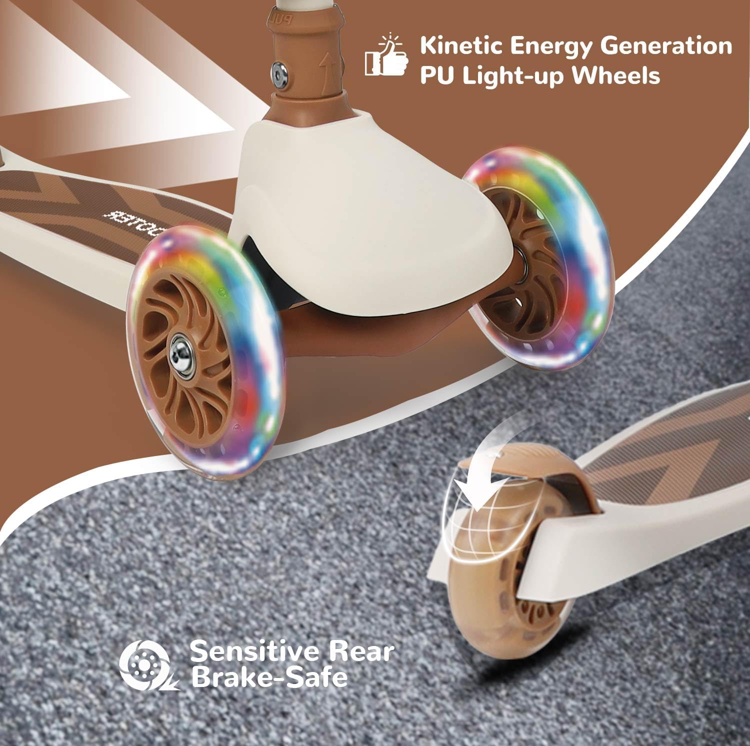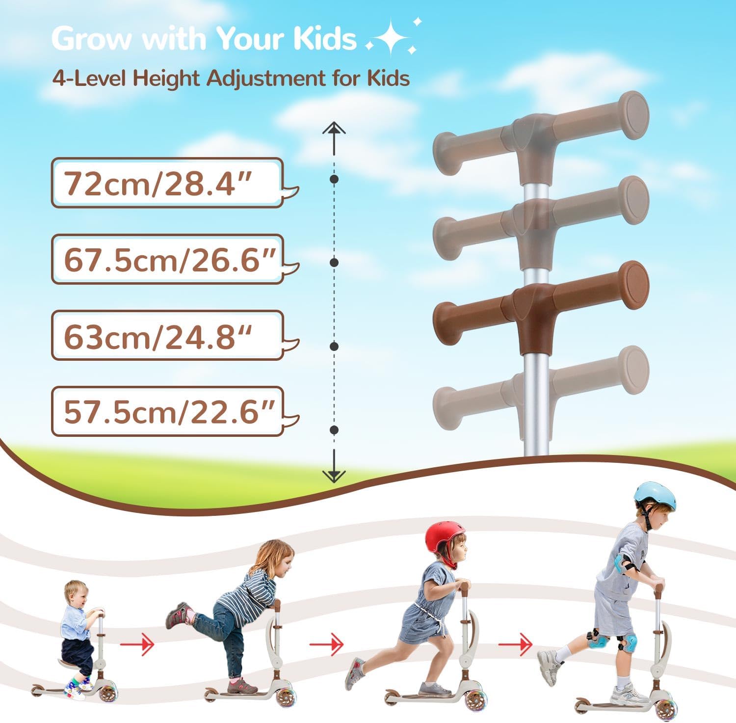 Design del sedile: progettato appositamente per i bambini, il monopattino soddisfa gli standard ergonomici di 2 anni. Carico massimo: 20kg/44lbs Il sedile può essere rimosso se il bambino è più grande. Regolabile in altezza: il monopattino per bambini dispone di un manubrio regolabile con 4 opzioni di altezza da 58,5 cm a 72 cm. Adatto per bambini da 2 a 6 anni. Ruote luminose a LED: il monopattino per bambini a partire dai 2 anni si illumina in diversi colori durante la guida. Design adatto ai bambini: leggero e compatto, perfetto per i bambini, con manici ergonomici per una presa confortevole. Monopattino per bambini con meccanismo pieghevole con un pulsante per un funzionamento semplicissimo. Facile da usare: il monopattino a tre ruote è un montaggio rapido e un design intuitivo per un divertimento spensierato subito dopo aver rimosso la confezione. Affidabilità dei genitori: lo scooter per bambini di 2 anni con 3 ruote con la nostra garanzia di 1 anno e l'affidabile assistenza clienti garantiamo la vostra fiducia e la gioia dei vostri bambini.