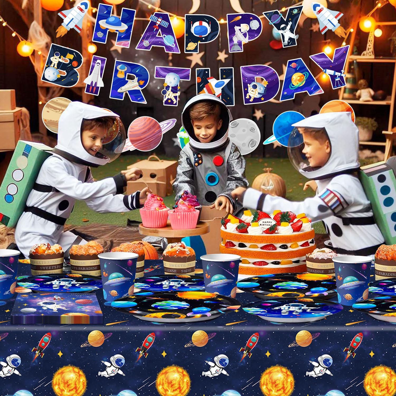 Bellissime forniture per feste spaziali: queste forniture per feste spaziali di compleanno includono 1 striscione spaziale di buon compleanno, 1 tovaglia spaziale per compleanno, 24 piatti spaziali per feste da 7 pollici, 24 tovaglioli spaziali per feste da 9 pollici, 24 tazze per feste spaziali ecc. Decorazioni spaziali per feste di compleanno. 【Design creativo】 Le nostre stoviglie a tema spaziale e gli striscioni per il compleanno spaziale sono progettati con elementi spaziali come razzi, pianeti, stelle, astronauti e meteore, pieni di un'atmosfera galattica da sogno, che può facilmente creare un senso di mistero spaziale per la tua festa di compleanno spaziale. 【Alta qualità】 Dagli striscioni di compleanno spaziali ai piatti spaziali, ogni fornitura per feste di compleanno spaziali è realizzata con materiali di alta qualità, durevoli e senza il rischio di crepe o strappi, così ogni ospite può godersi la festa di compleanno spaziale in tutta sicurezza. 【Pulizia facile】 A nessuno piace pulire dopo una festa spaziale, ecco perché abbiamo progettato questo set di stoviglie spaziali! Queste stoviglie spaziali ti risparmiano il fastidio di ripulire la festa a tema dopo lo spazio e ti danno più tempo per trascorrere momenti divertenti e felici con i tuoi amici e familiari. Ampia applicazione: che tu stia organizzando una festa di compleanno spaziale, una festa a tema spaziale, una festa spaziale, una festa di astronauti, un baby shower cosmico, una festa galattica o una festa per gli amanti della fantascienza, queste stoviglie per feste spaziali e decorazioni per feste spaziali possono gettare solide basi per la tua avventura interstellare.