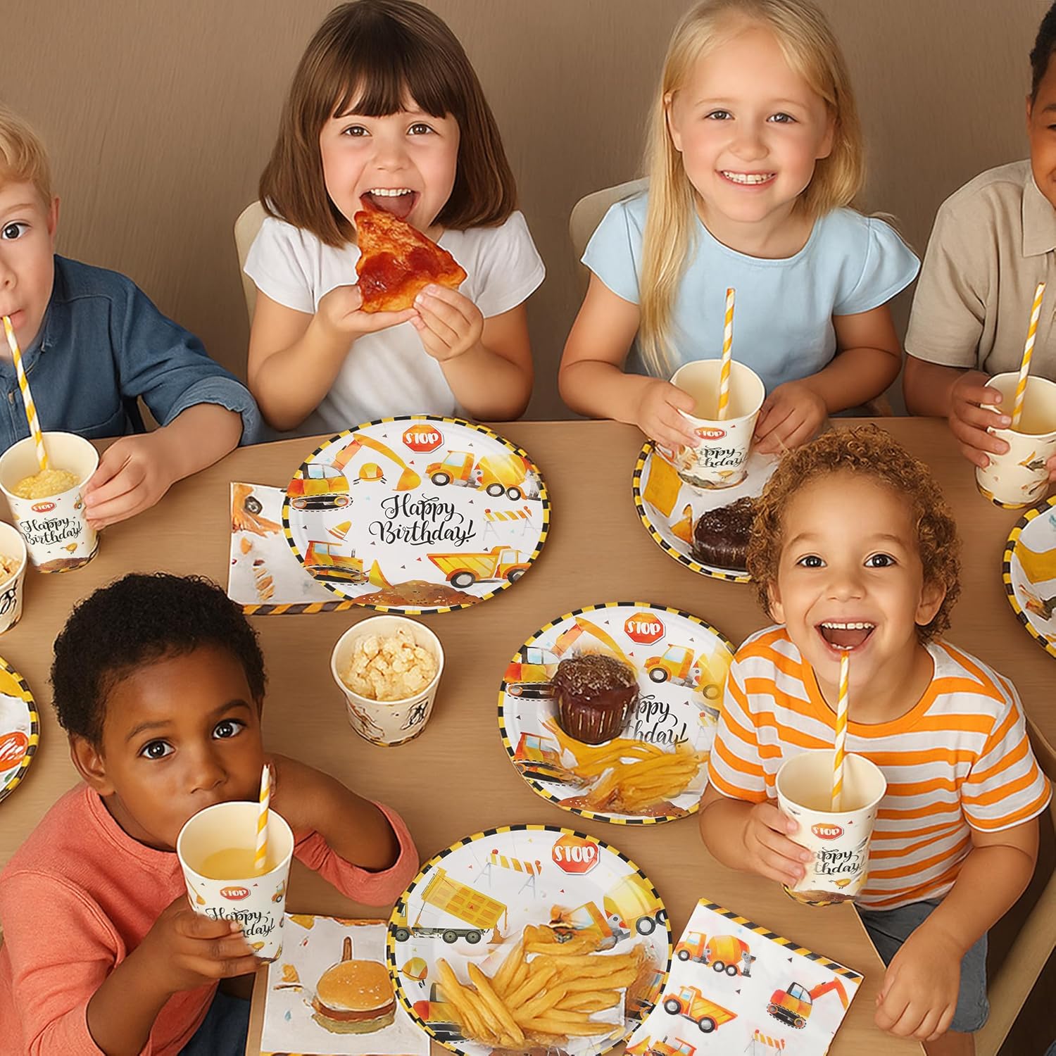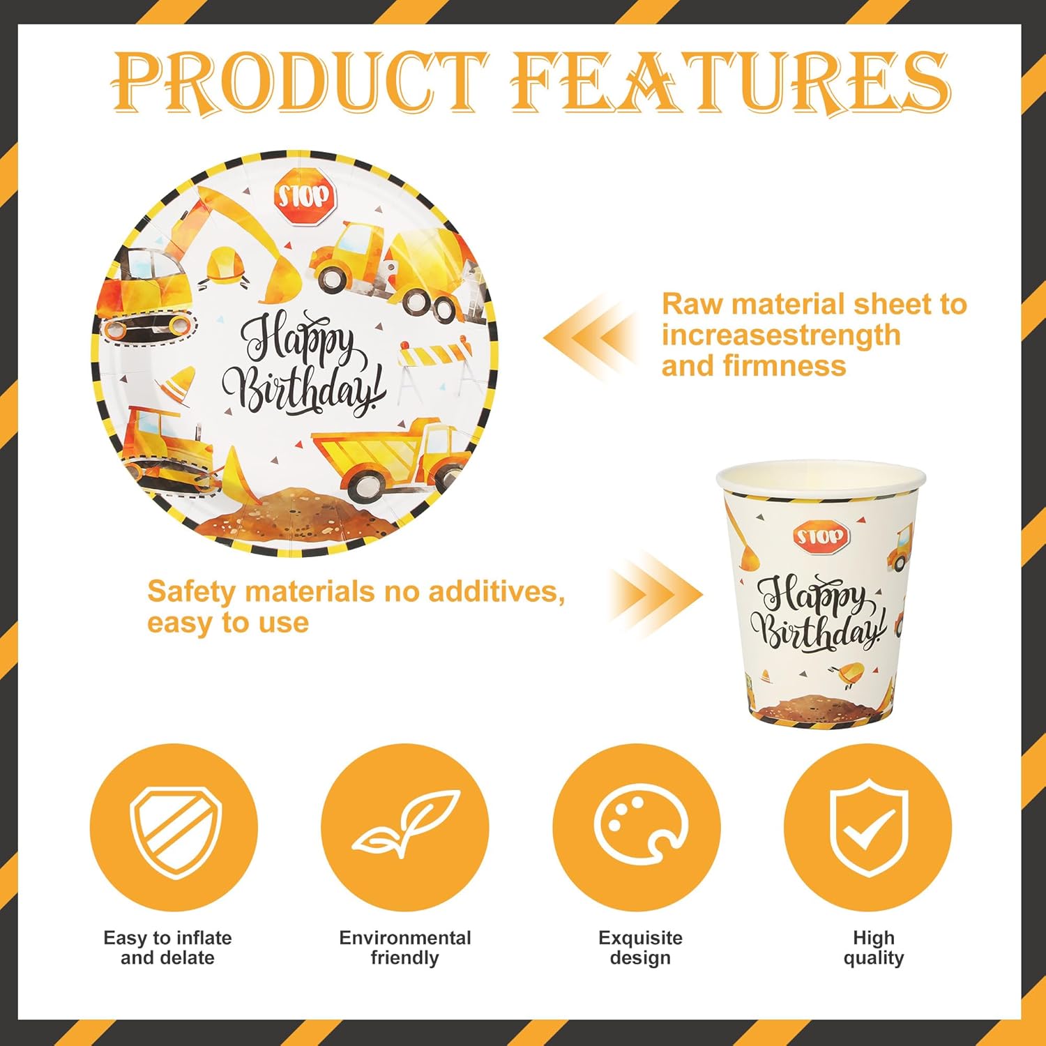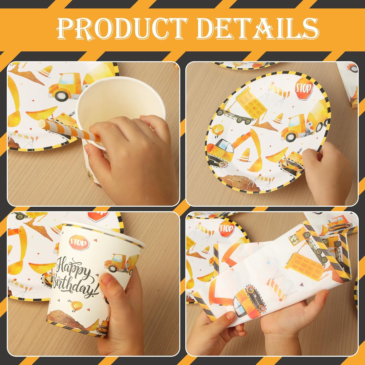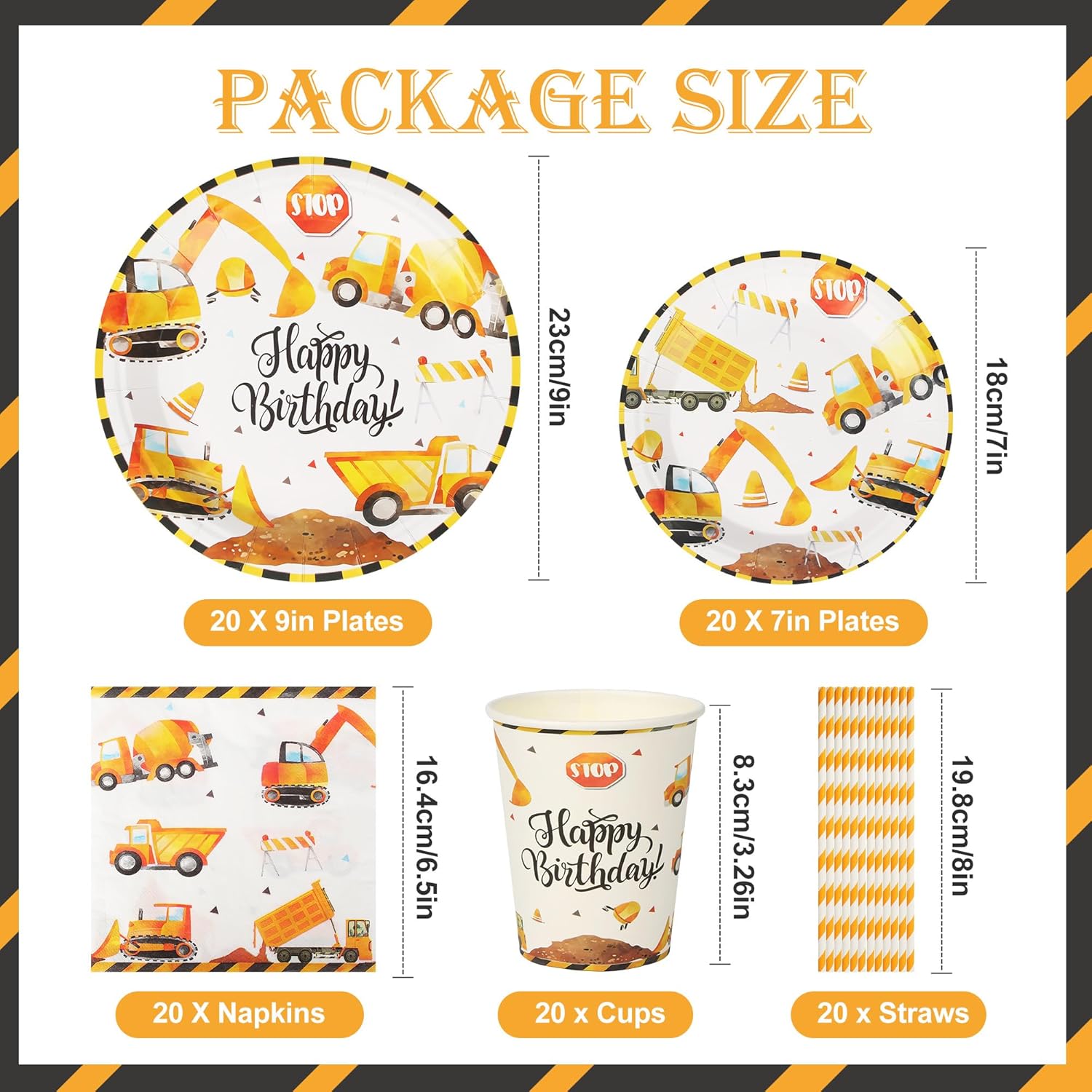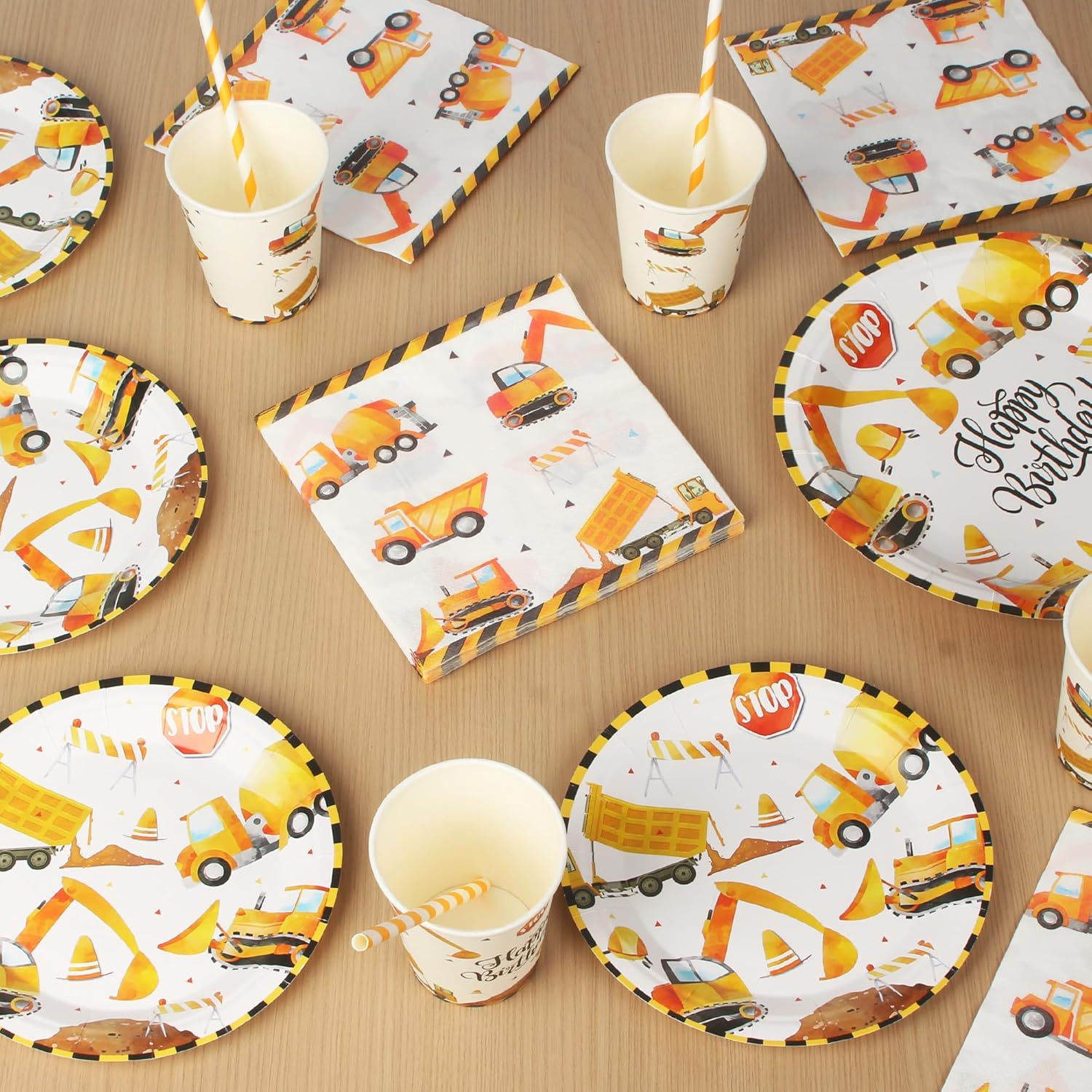 【Stoviglie da Escavatore per 20 Ospiti】Questo set di piatti festa compleanno include tutto il necessario per un massimo di 20 ospiti: 20 piatti piani da 9'', 20 piatti da dessert da 7'', 20 tazza, 20 cannucce, 20 tovaglioli. Caratterizzato da classici piatti di alta qualità a tema cantiere, perfetti per una festa a tema escavatore! 【Qualità Premium】Realizzato in carta resistente e adatta al contatto con gli alimenti, questo set per feste in cantiere è composto da piatti resistenti che possono contenere vari alimenti senza deformarsi. I nostri piatti sono riutilizzabili. 【Design Elegante】Questo set per feste presenta un motivo vintage “Happy Birthday” su sfondo giallo, con vari disegni di escavatori che adornano i piatti di carta, le tazze e i tovaglioli! Utilizza il nostro set di articoli per feste a tema escavatori per creare una festa retrò a tema cantiere edile! 【Risparmio di Tempo】I nostri articoli per feste sono l'alternativa ai tradizionali articoli usa e getta: facili da trasportare prima dell'evento, comodi da usare durante i festeggiamenti e facili da pulire dopo, liberando più tempo per il tuo tempo libero! 【Versatile】Il nostro set per feste a tema cantiere edile è perfetto per decorare le feste dei ragazzi, creando un'atmosfera festosa e divertente. Adatto per feste di compleanno, eventi a tema, feste scolastiche, picnic all'aperto e altre occasioni.