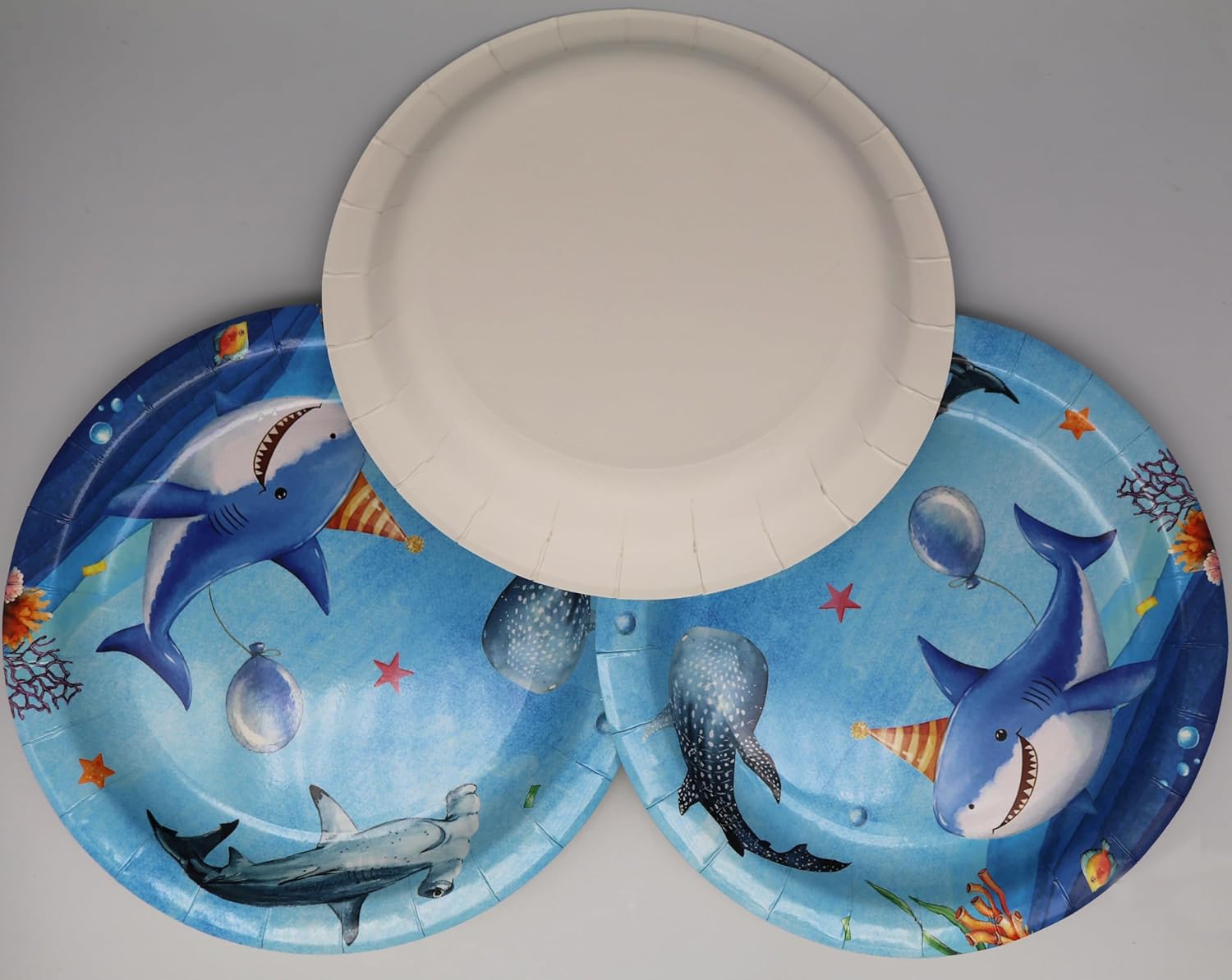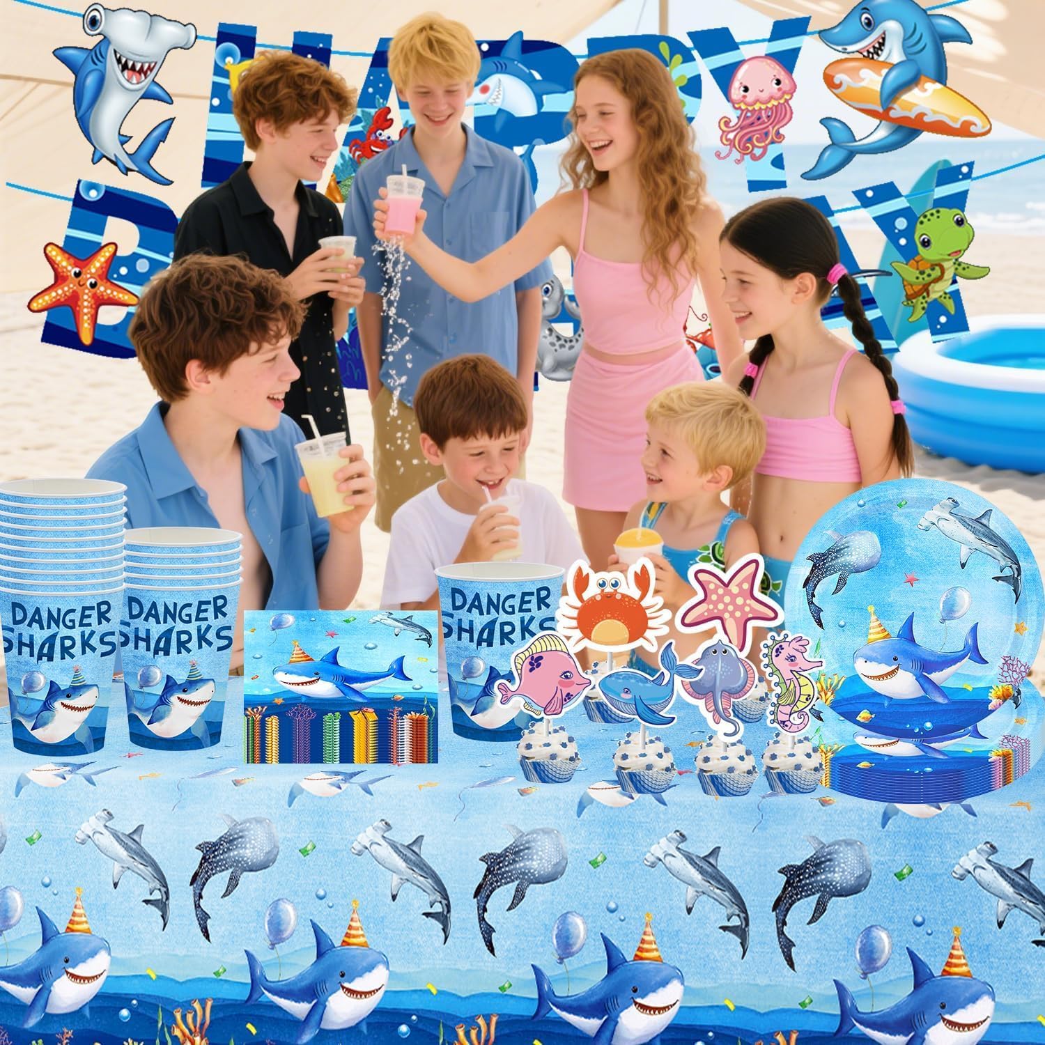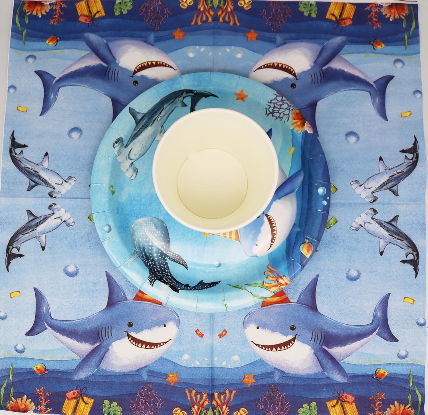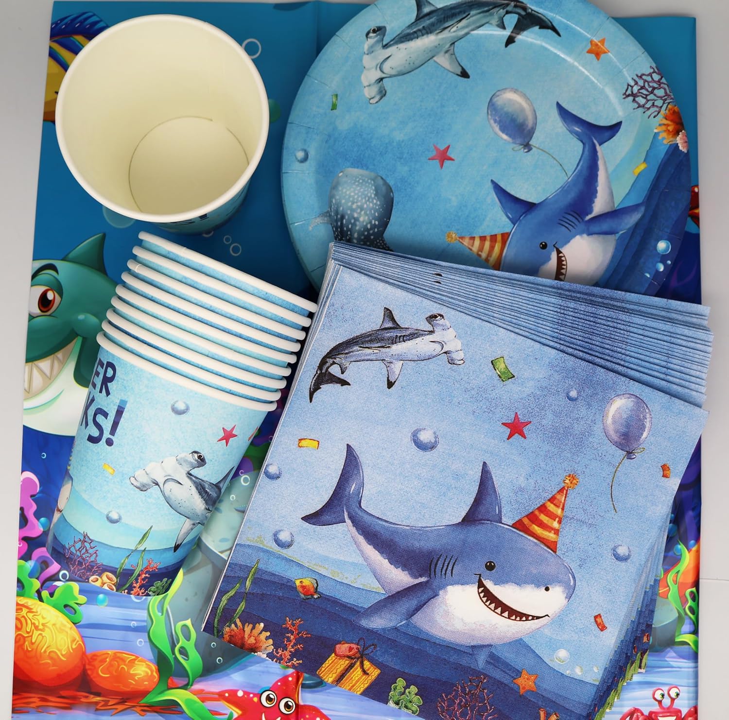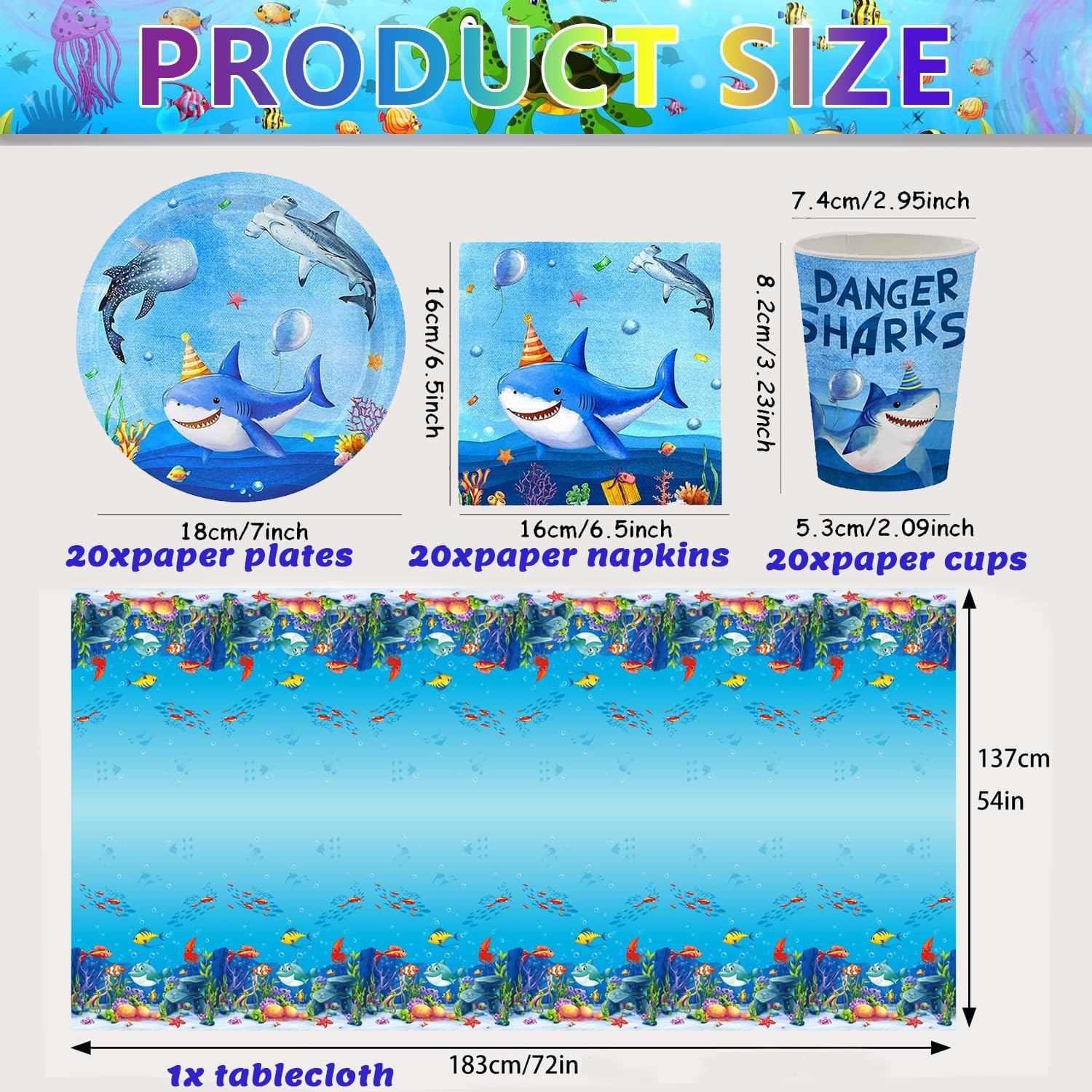 Set di accessori per feste di Shark: la confezione contiene 61 accessori per feste, tra cui 20 piatti Shark Party (7 pollici), 20 tazze, 20 tovaglioli, 1 tovaglia (137 x 183 cm). Materiali di alta qualità: tutti i prodotti sono al 100% per uso alimentare, non tossico e durevole. Questo set di stoviglie Shark Party è realizzato in carta solida e resistente. Design comodo: progettato per l'uso con lementi di compleanno per bambini Shark. Queste stoviglie per feste ti aiutano a risparmiare tempo ed energia. non ha bisogno di lavare i piatti, ideale per genitori impegnati. Ampiamente usato: può essere utilizzato per feste di compleanno, baby shower, picnic, cene di banchetti, anniversari, feste di gioco, feste per bambini e altre feste interessanti, per decorare qualsiasi tipo di festa. Tema squalo: crea un tema perfettamente coordinato per la festa di squalo con un design originale squisito. Se sei un fan degli amanti dello squalo, non ti mancheranno. Ottimo successo per qualsiasi festa a tema gioco.