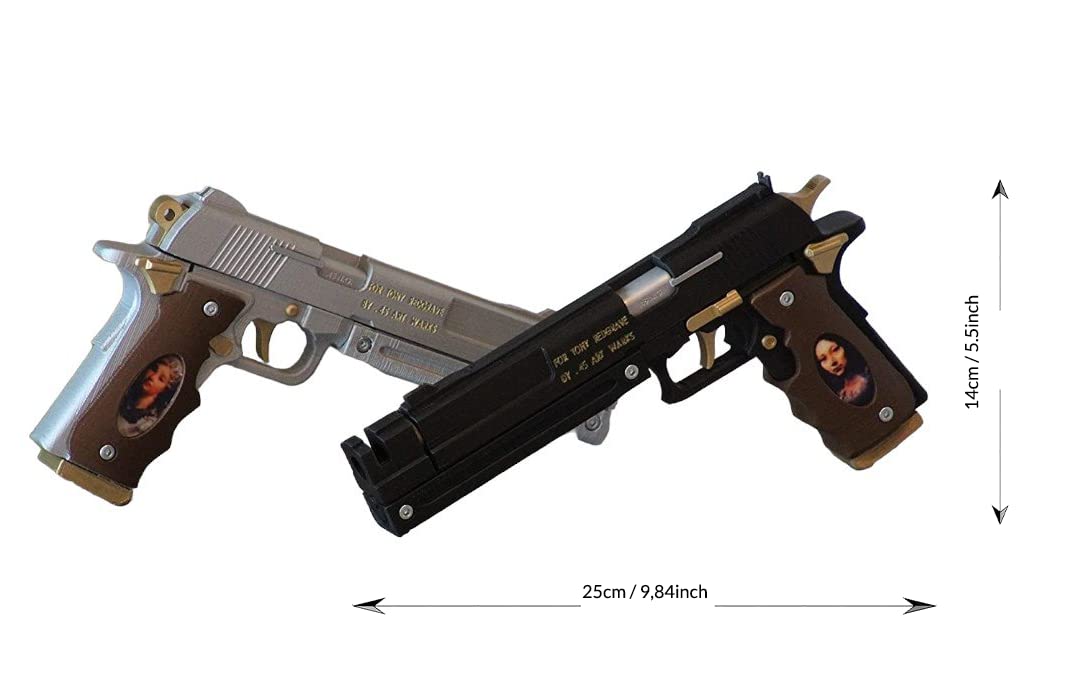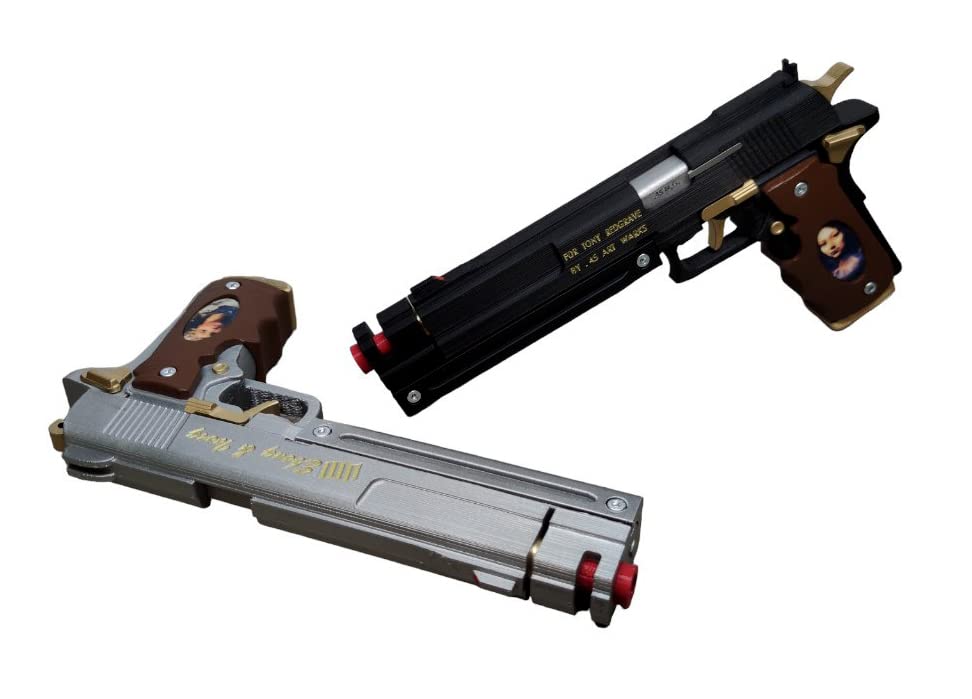 Pistole realizzate interamente in plastica - NON SPARANO Nessuna parte in movimento, non sparano Materiale: Plastica Scale: 1:1 Questo non è un prodotto con licenza ufficiale ed è considerato solo fan art.