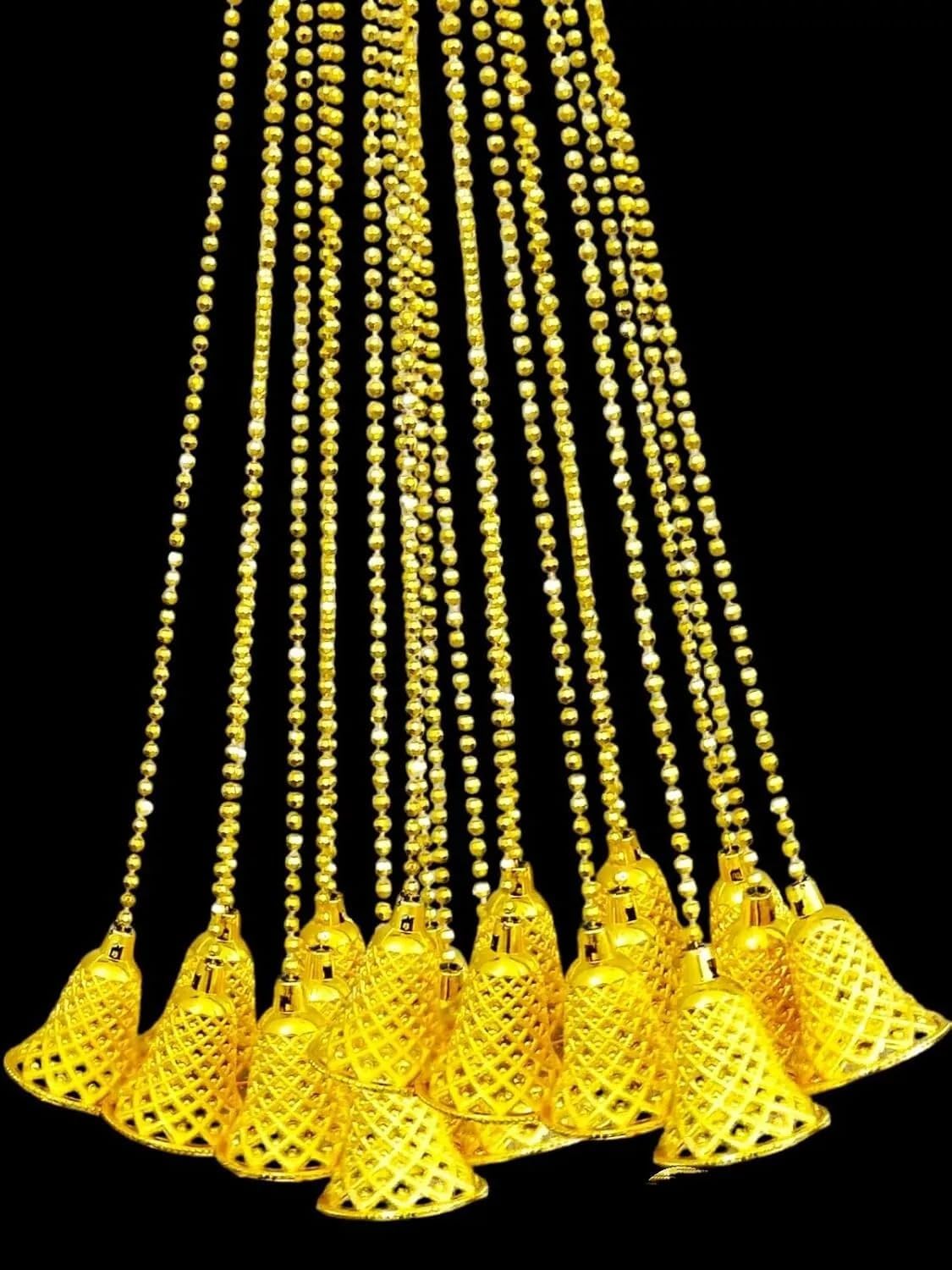Design tradizionale: splendidamente realizzato con campanelle dorate con campanelle decorative disposte in un elegante motivo per decorare la casa festiva Display versatile: lunghezza perfetta di 91,4 cm, adatta per porte, finestre o decorazione da parete per aggiungere un tocco di fascino culturale Finitura premium: le campane metalliche dorate con lucentezza brillante creano un display accattivante aggiungendo un elemento di buon auspicio al tuo spazio Facile installazione: viene fornito con un comodo meccanismo di sospensione che consente un montaggio rapido e semplice su qualsiasi porta o parete Design culturale: il design tradizionale toran porta prosperità ed energia positiva alla tua casa mentre funge da attraente elemento decorativo