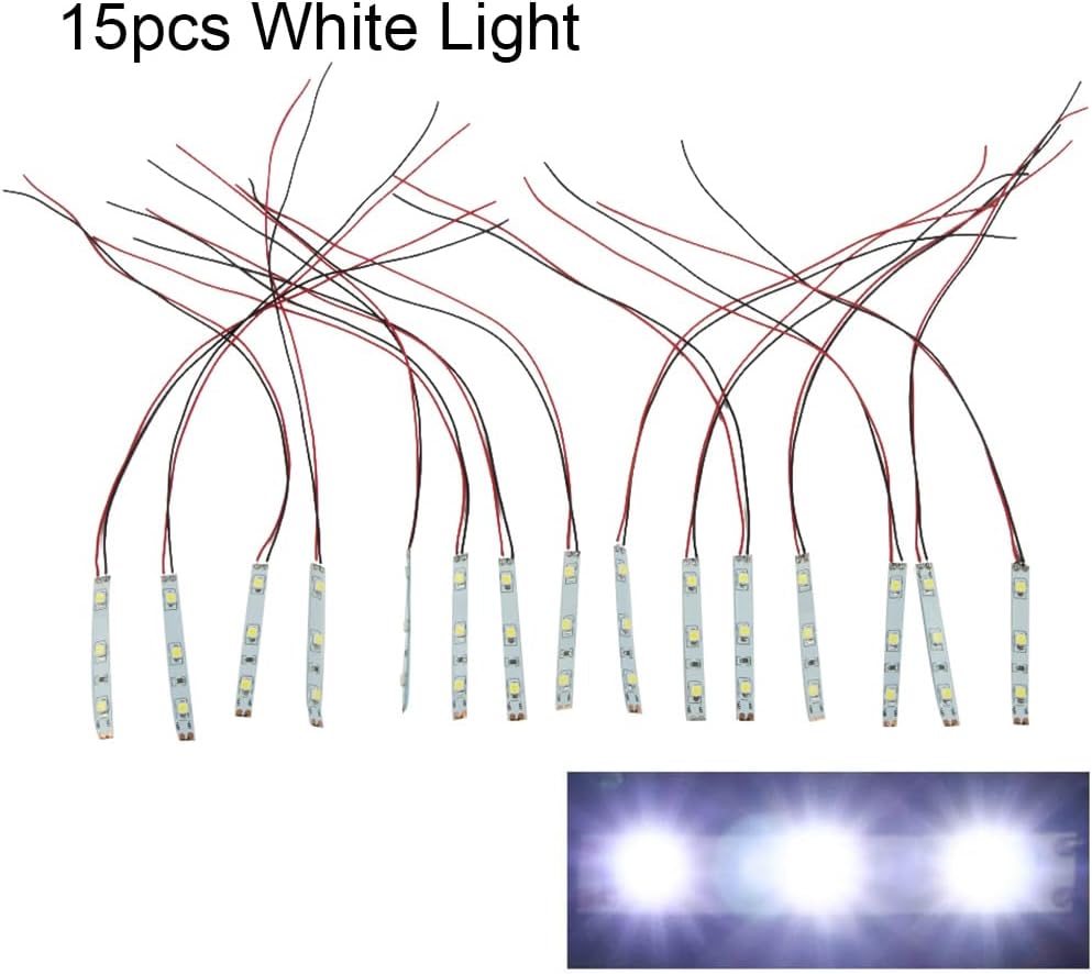 SOLUZIONE DI ILLUMINAZIONE VERSATILE: queste strisce luminose a LED bianche precablate sono perfette per illuminare case delle bambole, stanze in miniatura e accessori per modellini di treni. Con un angolo di visione di 120°, forniscono un'illuminazione uniforme per i tuoi progetti. Flessibile e facile da installare: ogni striscia misura 50 x 8 x 2,5 mm con un cavo da 20 cm, garantendo flessibilità nel posizionamento e nell'installazione. Ideale per migliorare i layout ferroviari ed edilizi con il minimo sforzo. [Prestazioni ad alta efficienza energetica]: queste strisce LED funzionano a 12 V ~ 18 V (compatibile CA o CC), consumando poca energia e fornendo un'illuminazione brillante. La corrente diretta tipica è 20 mA, con un massimo di 30 mA. [Quantità e qualità]: questo pacchetto contiene 15 strisce luminose LED di alta qualità, che offrono ampie opzioni di illuminazione per più progetti o layout estesi. Ogni striscia è nuova di zecca e costruita per durare. [Illuminazione regolabile]: scegli tra luce calda o luce bianca per creare l'atmosfera perfetta per le tue scene in miniatura. Con queste strisce LED puoi aggiungere un tocco realistico ai tuoi ambienti modello.